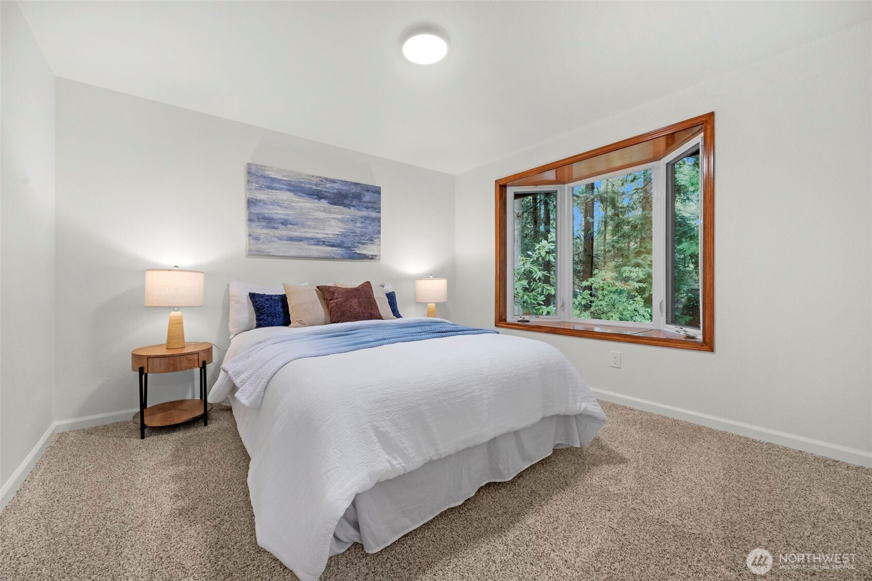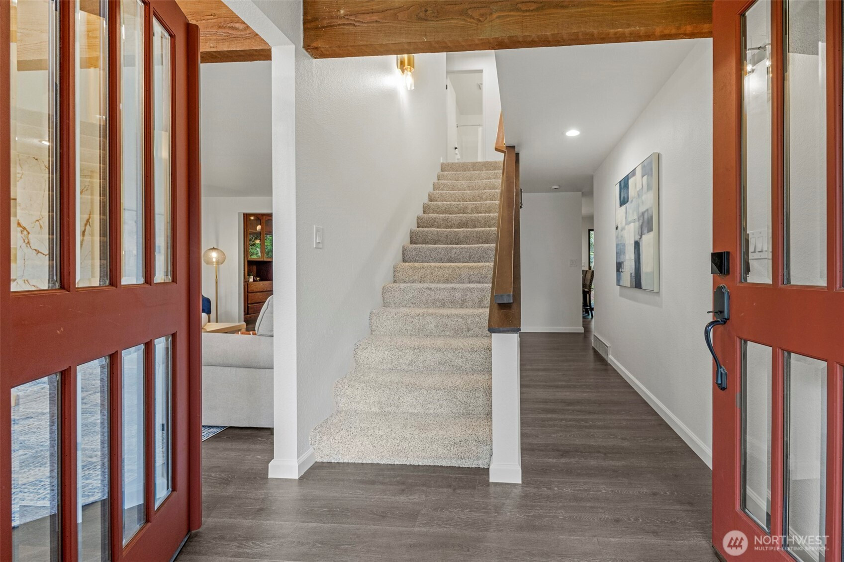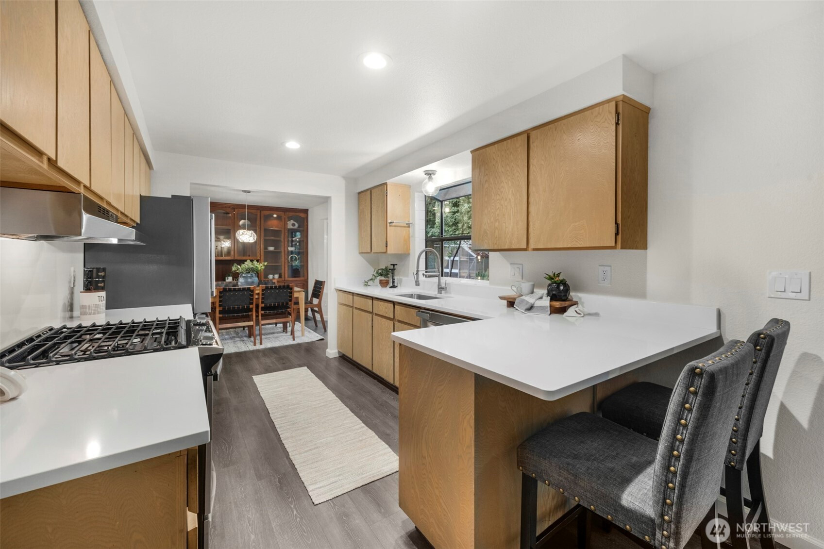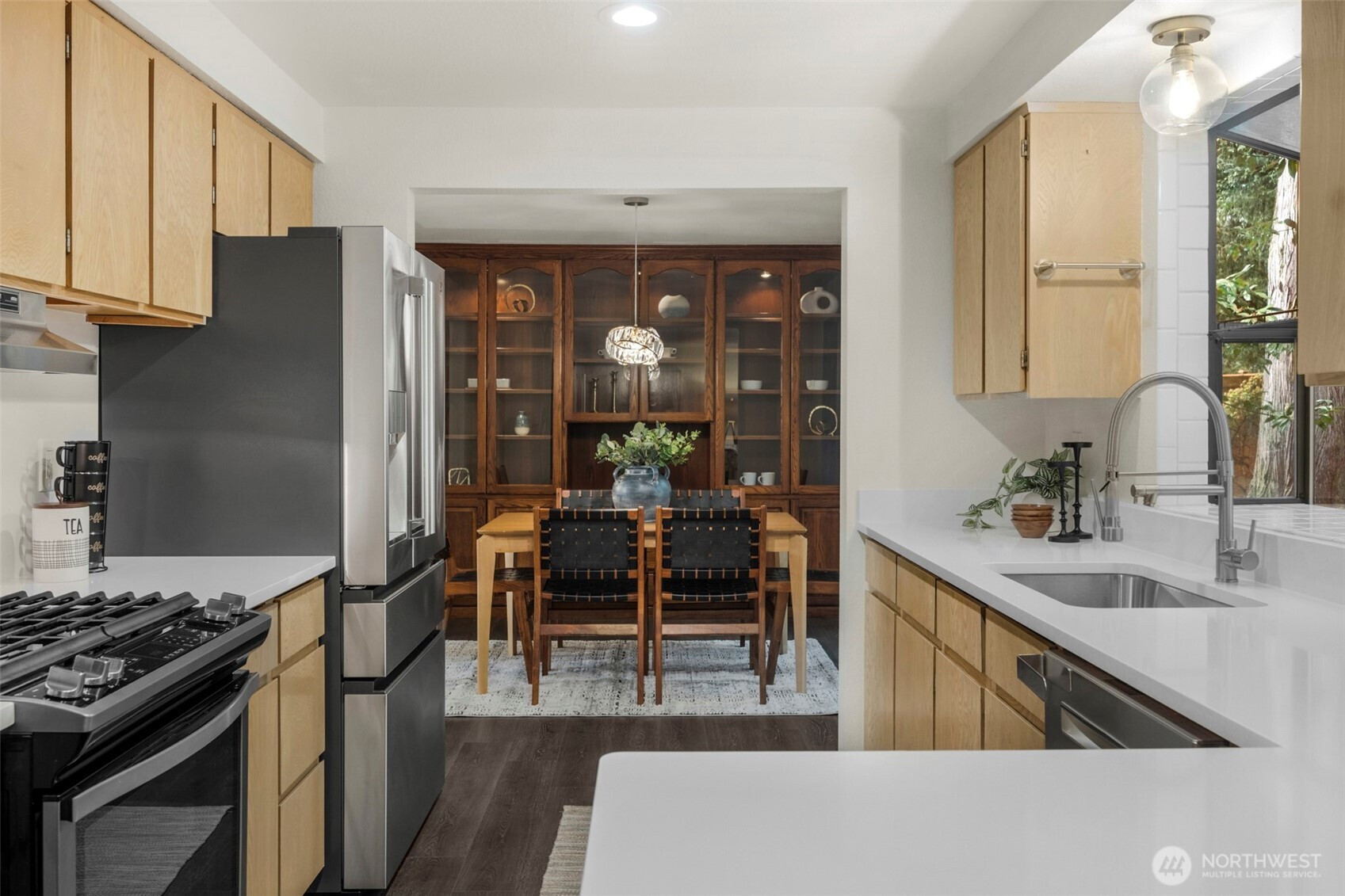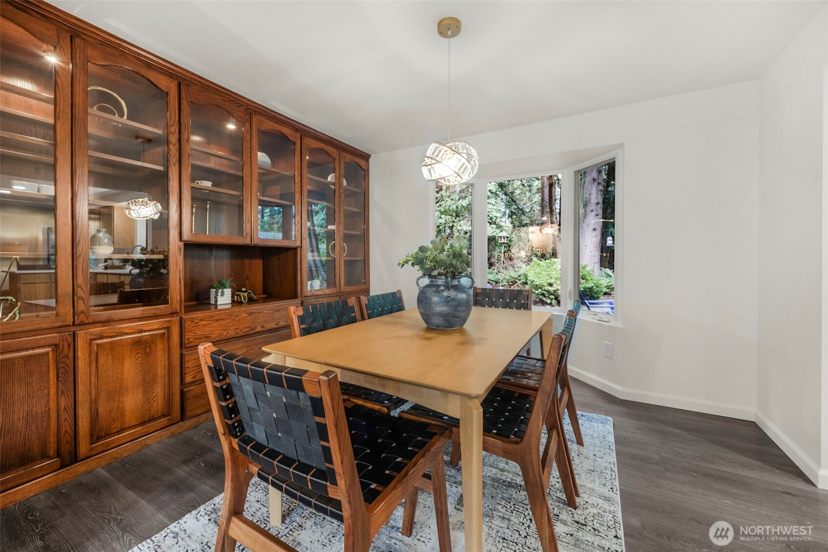Experience the ultimate Pacific Northwest sanctuary in this stunning Mid-Century Modern masterpiece, perfectly nestled within a private, old-growth forest. The main residence captures the essence of "treehouse living" with soaring vaulted ceilings, exposed architectural beams, and floor-to-ceiling "aquarium" windows that invite the tranquil beauty of the forest into every room. At the heart of the home, a chef-inspired kitchen shines with crisp quartz countertops, high-end stainless appliances, and warm oak cabinetry, flowing seamlessly into an expansive open-concept dining and living area.The crown jewel of this estate is the detached, 500+ square foot studio. Thoughtfully designed with a modern wet bar, half bathroom, skylights, and convenient ramp access, this versatile space is a premier destination for a high-end home gym, creative art gallery, or private guest retreat. Outside, the enchanting grounds are a nature lover’s dream, featuring a seasonal creek with a private wooden bridge, meandering garden trails, and a peaceful fire pit area designed for starlit entertaining.Practical elegance meets timeless character with a light-filled primary suite, updated bathrooms, and a dedicated laundry/mudroom. Located in the heart of Mukilteo, this estate offers rare seclusion without sacrificing convenience. Every detail from the vibrant camellias and lush ferns to the towering cedar canopy, has been curated to offer an unparalleled lifestyle of privacy, peace, and luxury.