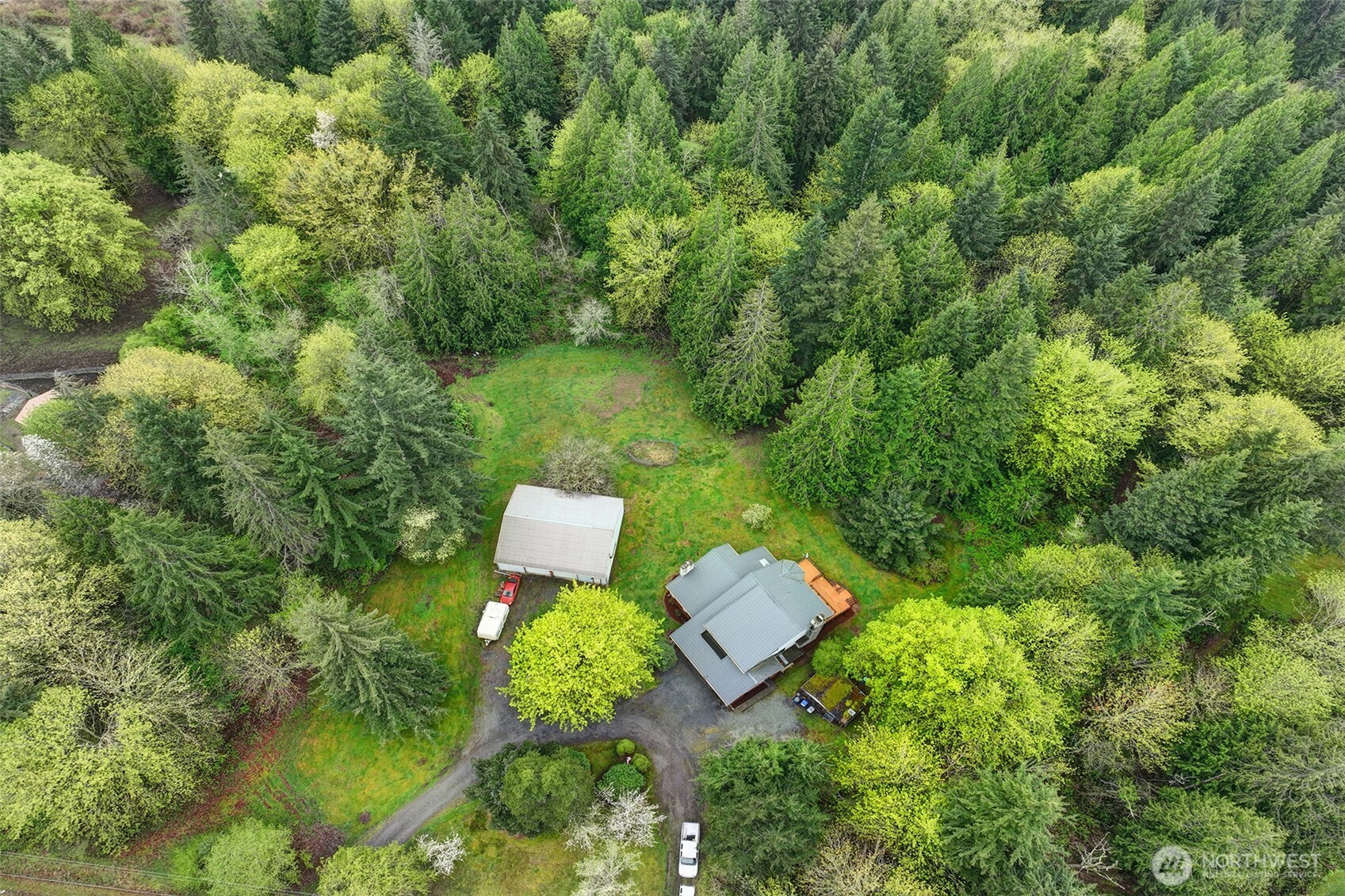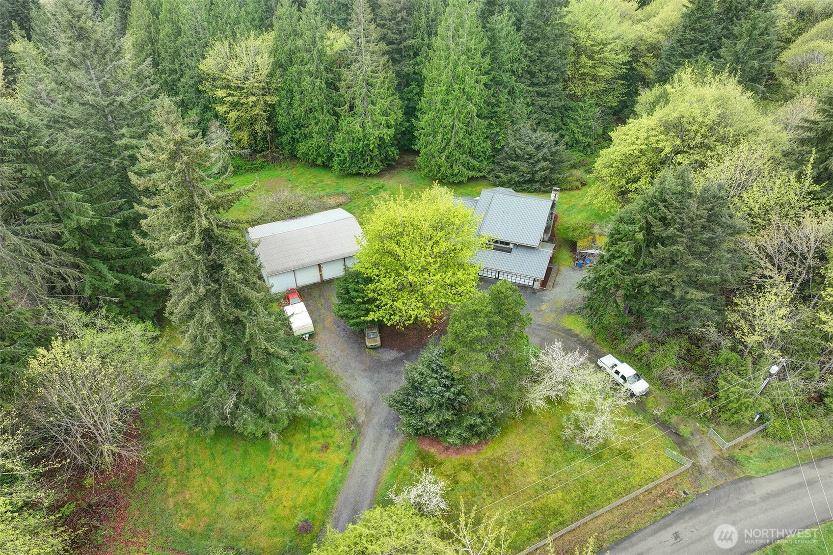 If you like country living this opportunity is for you, 5 acres of trees, open spaces and parking for RVs etc. 3 bedrooms/3-bathroom 2754 sq. ft. 2 story Cape Cod style home that includes a primary five-piece bedroom and 2 additional guest bedrooms upstairs, 3 full bathrooms (2 up/1 main). Large kitchen, dining room, breakfast eating nook, plus office, wet bar, family and living rooms on main floor. Home also features 2 fireplaces, one wood and on propane. There is a detached 48x45 shop with 12' ceilings. 3 car attached garage. The home requires lots of updating and is offer as-is but it is priced accordingly.