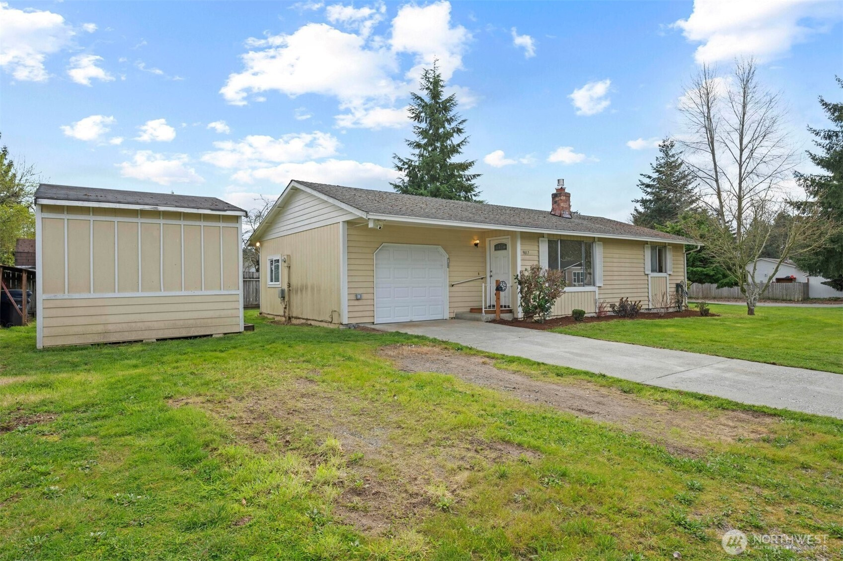 Adorable Marysville rambler with a covered front entry on a spacious corner lot is ready for its new owner. This cozy one-level home features a bright living room and dining area just off the kitchen. The kitchen offers plenty of cabinet and counter space for the chef of the home. Two generously sized bedrooms provide abundant natural light, with a full bathroom conveniently located in the hallway between them. The covered outdoor patio area is perfect for enjoying an evening fireside, BBQing, or relaxing under the stars. The large lot offers plenty of space for gardening and play. A spacious one-car garage and outdoor shed with electricity provide additional storage for all your toys. With ample driveway and street parking, there is plenty of room for an RV and/or boat. This affordable home sits on a great lot in a fantastic location close to Hwy 9, I-5, schools, parks, Cedarcrest Golf Course, shopping, and other amenities.
