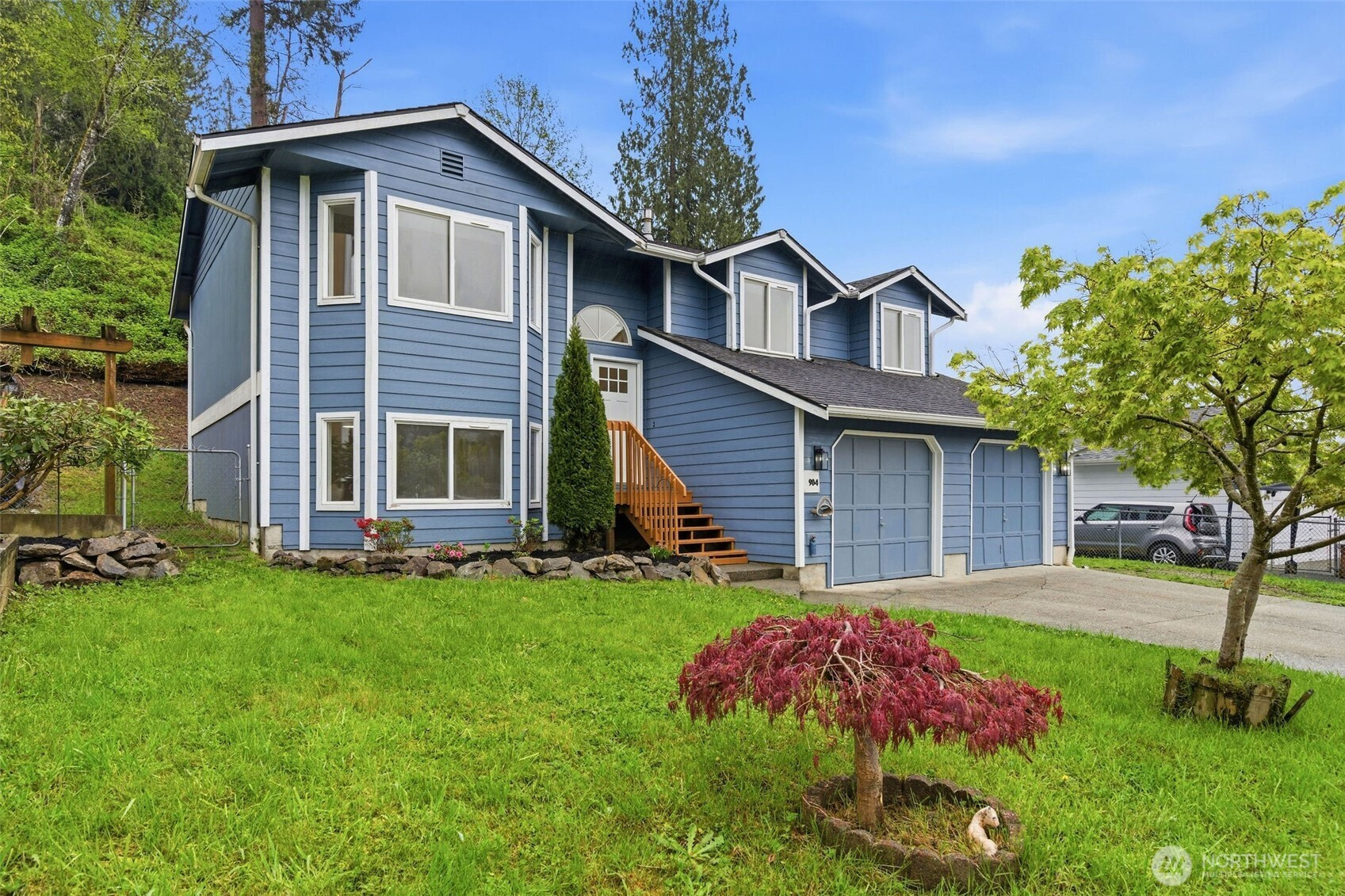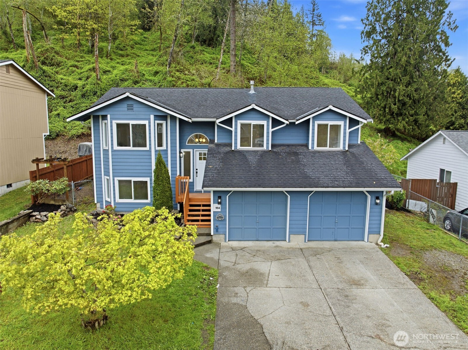 Warm & welcoming residence in Sultan nestled in a desirable neighborhood on a quiet street, showcasing views of the surrounding mountains. Recently refreshed and truly move-in ready! Step inside to a bright, open layout featuring new LVP flooring, fresh paint throughout, stylish hardware and light fixtures. The kitchen seamlessly blends with the dining area and overlooks the backyard, complete with newer SS appliances. Upstairs offers a spacious living room, a generous Primary Suite with its own en-suite, plus two additional bedrooms and a full bath. Downstairs features a large family room, an additional bedroom, and laundry with a half bath. Spacious 2-car garage and DP windows throughout. Enjoy a huge backyard with a LARGE DECK with views and an amazing fire pit area - perfect for late-night hangouts. Close to local shops, trails, schools, hikes, Stevens Pass and Hwy 2!