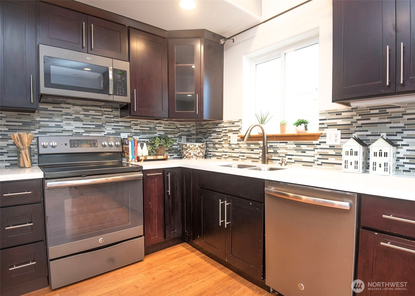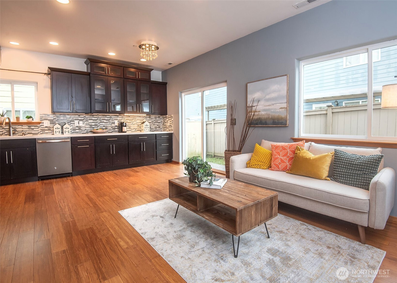 Welcome home to this tastefully remodeled three-bedroom residence featuring a spacious upstairs bonus room. The updated kitchen shines with new cabinetry, quartz countertops, and modern appliances. Fresh interior paint and newer bamboo flooring extend throughout the home, complemented by vinyl plank flooring in two bathrooms. All three bathrooms have been tastefully updated. Step outside to a fully fenced backyard with expanded yard space, a garden shed, and room to relax or entertain. Tucked away at the end of a cul-de-sac, the home also offers an extra parking space for added convenience. Enjoy the ease and comfort of living in the heart of Lake Stevens.