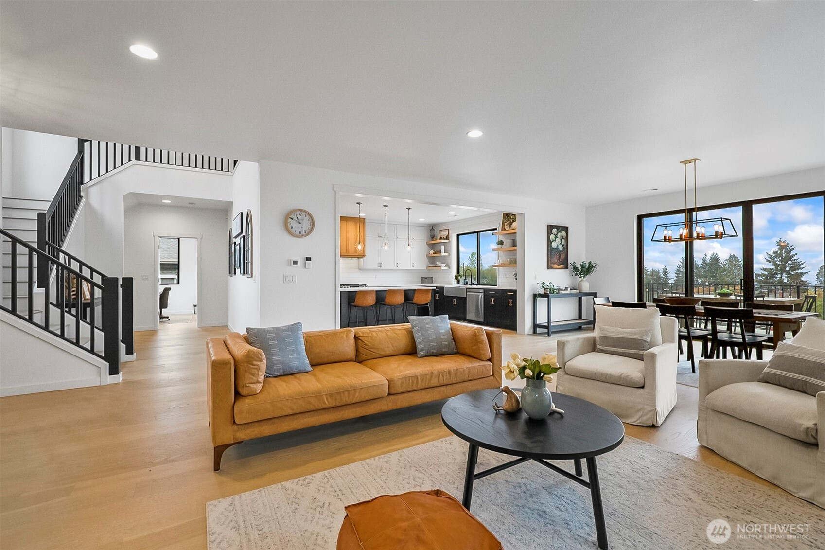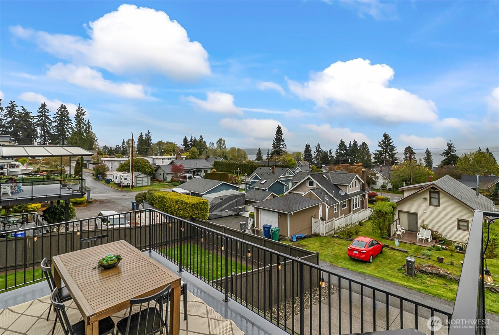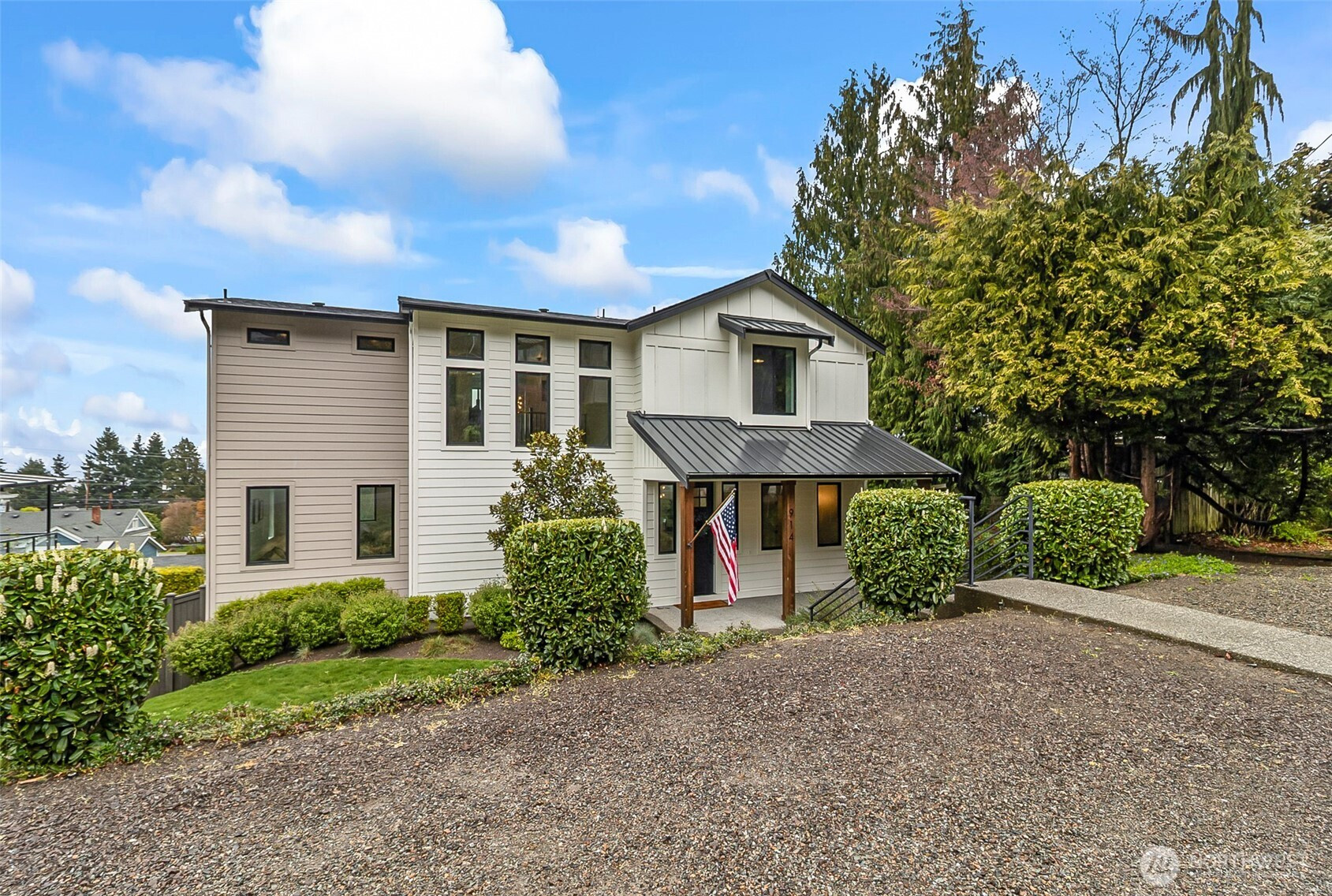 This stunning Sound and Mountain View Mukilteo custom built 5 year old home is a must see. Incredible Water and Sound Views. Watch the ferry from your living room or whale watching from your Sun Deck. This home offers 4-spacious bedrooms, 3.25 bathrooms, 3,904 living space, a gym with special rubber floorings, A versatile den/office ideal for remote work or quiet study. Elegant flooring flows seamlessly throughout, while an abundance of windows fills the home with natural light, creating a bright and inviting atmosphere. The open-concept great room and kitchen are designed for both everyday living and entertaining, showcasing custom cabinetry, sleek stainless steel appliances, a large center island, floating shelves, and beautiful quartz countertops. A cozy gas fireplace with a custom surround and classic wood mantel anchors the great room, complemented by modern black railings that add a sophisticated touch. The luxurious primary suite provides a relaxing retreat with a spa-inspired bathroom featuring a soaking tub, a tile shower with dual showerheads, and a spacious walk-in closet. Downstairs, enjoy a fully finished lower level complete with a bedroom, rec-room, and full bath—perfect for guests or multi-generational living. A bonus room includes a projector & screen, creating the ultimate home theater experience. The 3-car garage offers ample storage and parking. Step outside to a large deck designed for outdoor entertaining, gatherings, or simply unwind in comfort.
