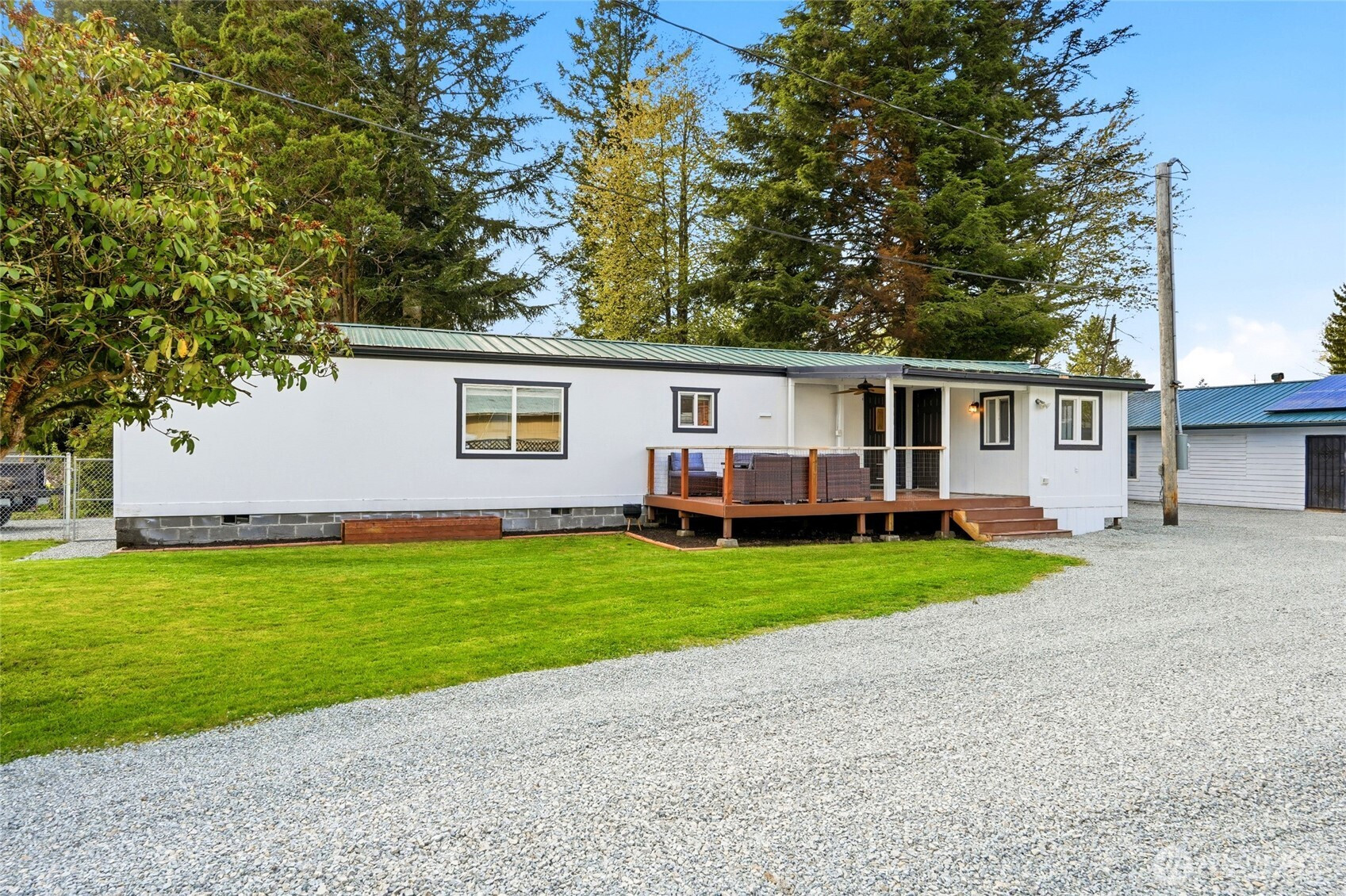 Welcome to this beautifully updated river community home on a large, level lot with fresh gravel, tons of parking for your vehicles and toys, a detached shop, and access to a private community beach. Featuring a fully remodeled kitchen, updated bathrooms with new flooring, fresh interior and exterior paint, and meticulously maintained landscaping, this home is move-in ready. The recently remodeled front porch adds great curb appeal, while the smart 2 bed, 2 bath layout offers privacy with bedrooms on opposite sides. Enjoy an open living space with a breakfast bar, plus a primary suite with full bath and walk-in closet. Additional highlights include a newer metal roof, solar panels, Trex deck, ductless heat pump with A/C, and a 1,000+ sqft heated shop. Just 10 minutes to Monroe with no HOA, this is one of the best-priced homes in the area—complete with everything you need and river access just across the street for fishing, floating, and more.