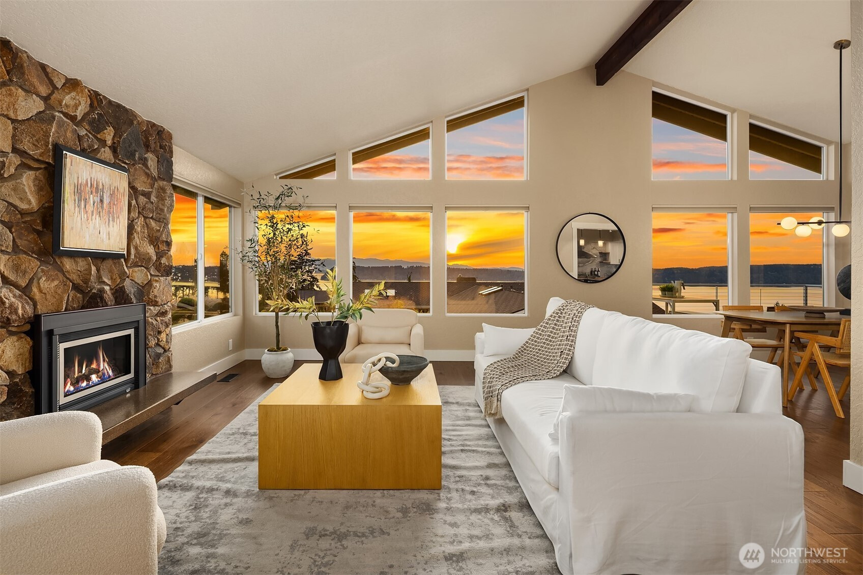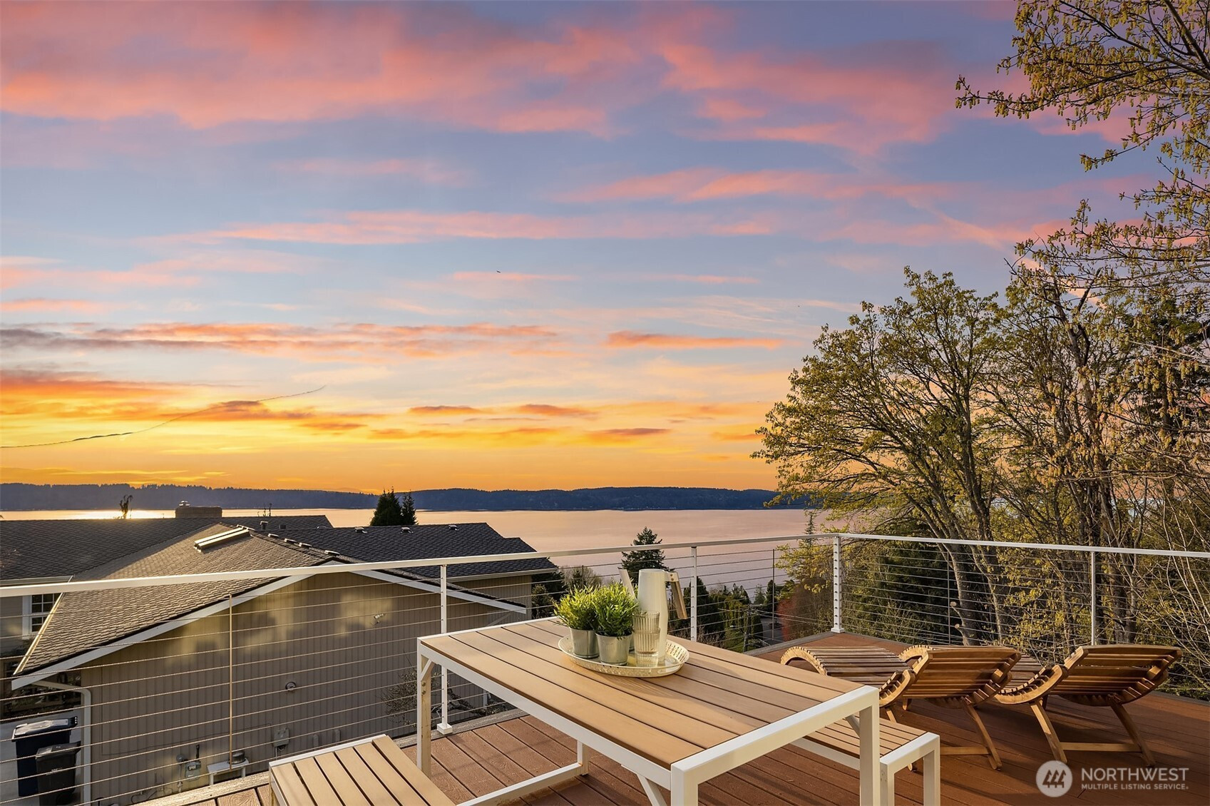 Rare remodeled 5-bedroom, 3-bath home in Olympus Terrace, perched above the Puget Sound with sweeping views of Whidbey Island and the snow-capped Olympic Mountains. Every inch of this home has been updated — arrive and settle in without a project in sight. The 3,000 sq ft layout spans a bright main level and fully finished 1,363 sq ft basement, offering flexible space for every stage of life: home office, media room, guest suite, or all three. Outdoor living is where this property truly shines. An 831 sq ft deck captures the views while a large patio extends your entertaining space at ground level. The yard features a gated garden area with mature fruit trees, manicured grounds, and a dedicated dog run — over half an acre designed for people and pets alike. A separate lower access road reveals even more potential: a natural ADU site already supported by dual 200-amp electrical service, ready for rental income, a guest house, or multigenerational living. Attached two-car garage, forced air heat, and a generous lot with open topography round out a property that balances privacy with convenience. Minutes from Mukilteo's waterfront, lighthouse, ferry terminal, and Paine Field, with access to the highly regarded Mukilteo School District. A fully remodeled view home with ADU potential in one of Mukilteo's most sought-after neighborhoods — this one covers all the bases.