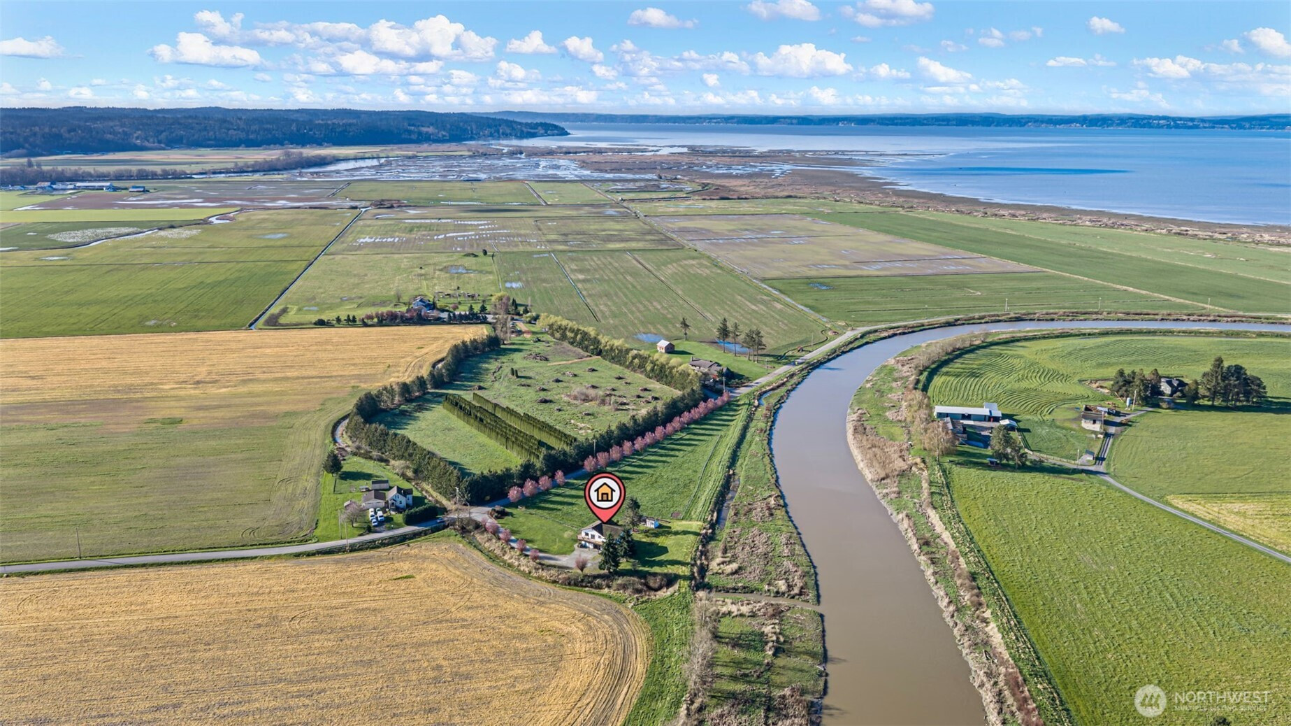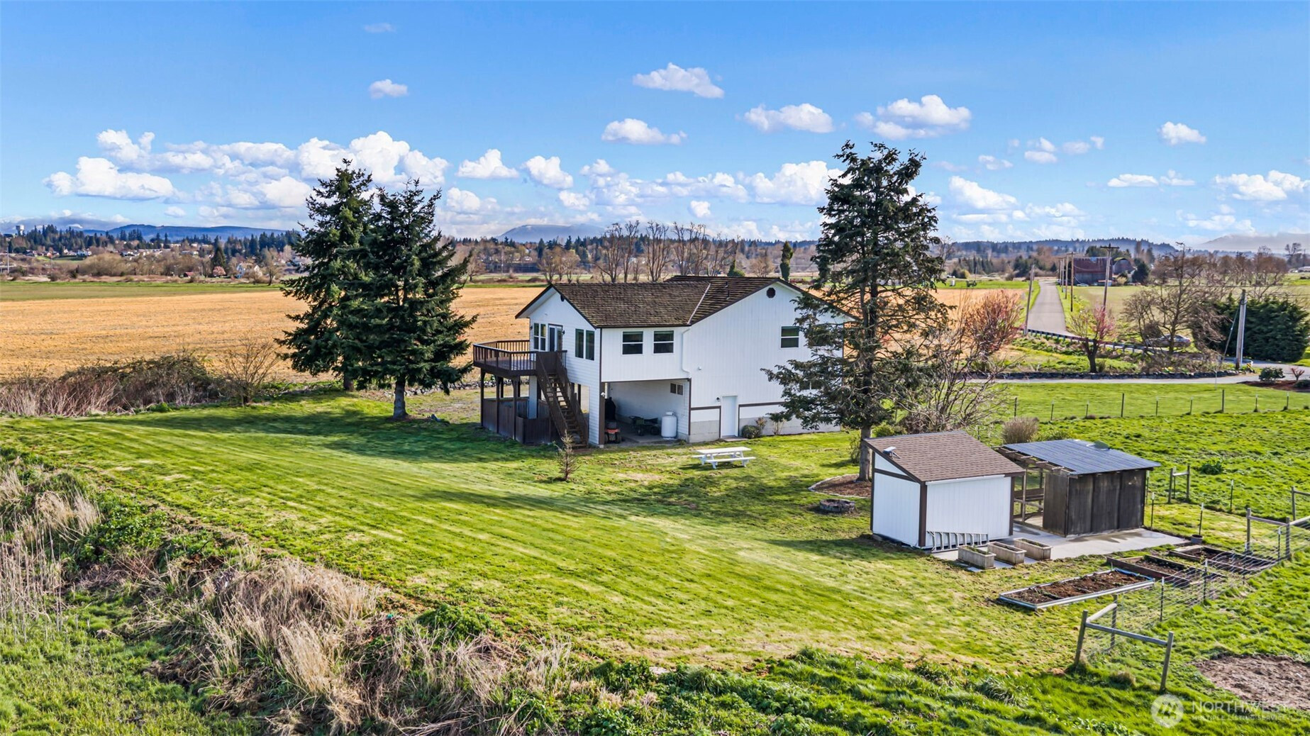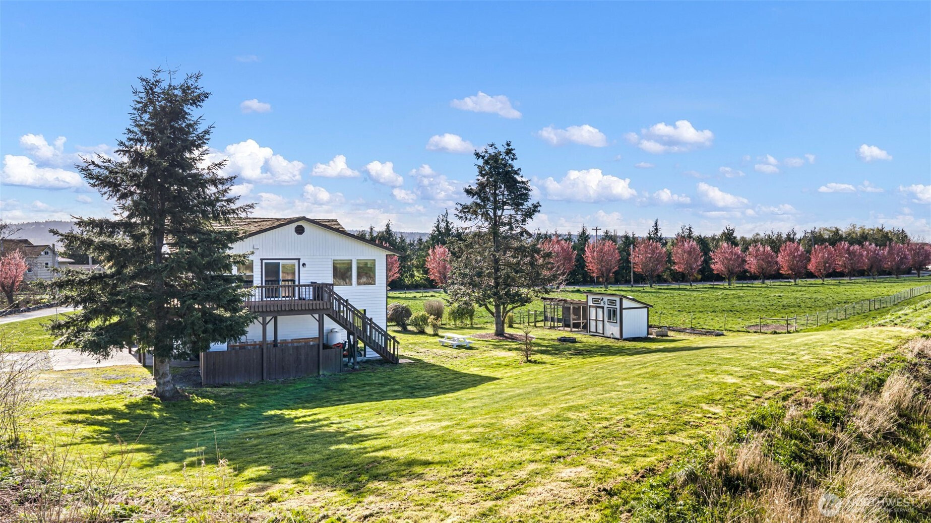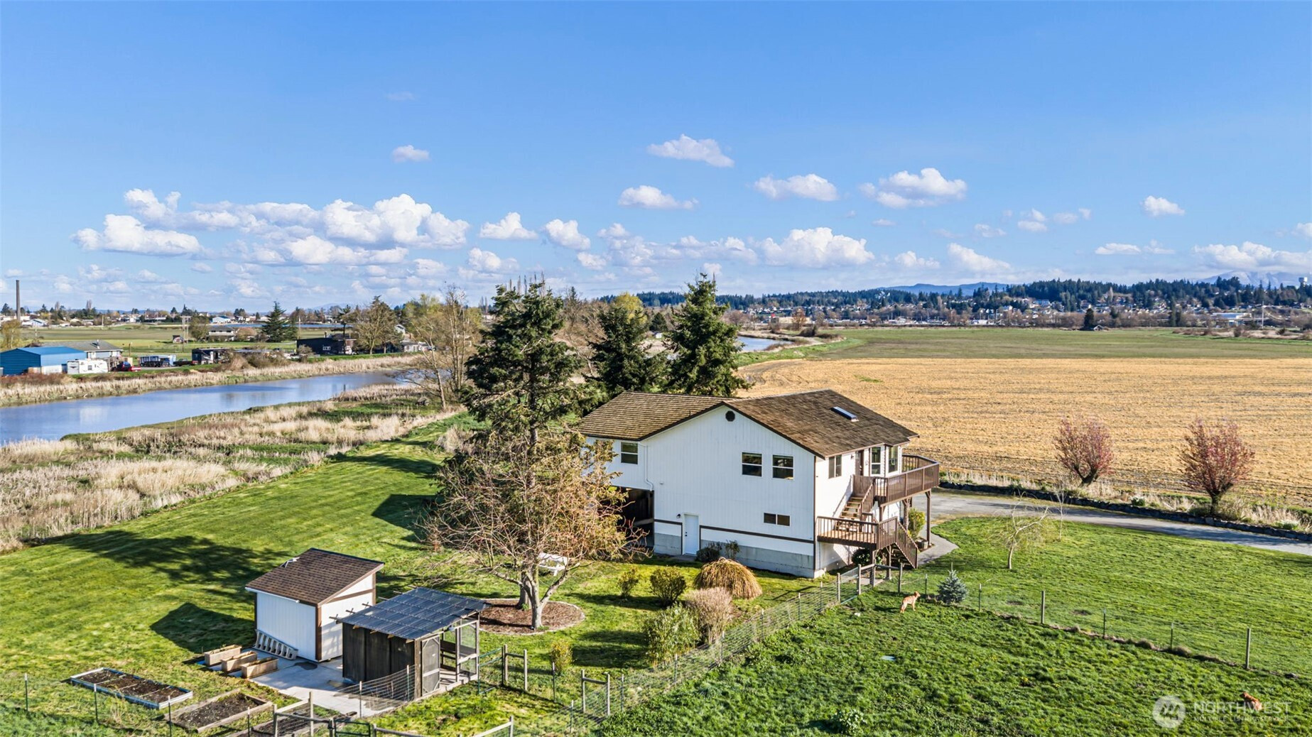 Enjoy breathtaking 360-degree views of the Olympic & Cascade Mountains, along with Livingston Bay and the Stillaguamish waterfront, all set on a shy 2.8-acre property. A stunning Mt. Baker backdrop completes the scene, while this 2-bedroom, 1-bath home offers spacious living and dining areas and a wraparound deck perfectly positioned to take it all in. The property is rich with opportunity and ready for your vision, featuring an existing detached DADU/studio, oversized multi-car garage, carport for RV or boat, chicken coop, fenced fields, and raised garden beds. A charming drive lined with mature cherry trees welcomes you in, creating a peaceful and private setting. Enjoy the feel of country living while being just minutes from local restaurants, specialty shopping, and everyday essentials + amenities. Whether you're seeking a serene retreat, hobby farm, or ample space, this property offers a rare combination of views, usable land, and waterfront living.