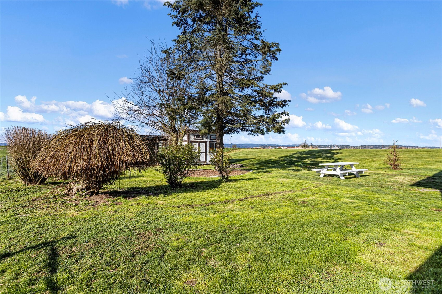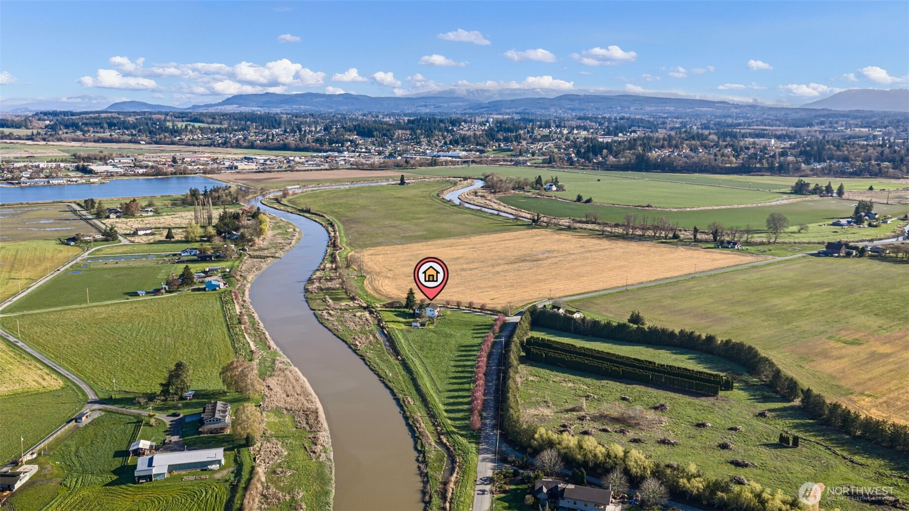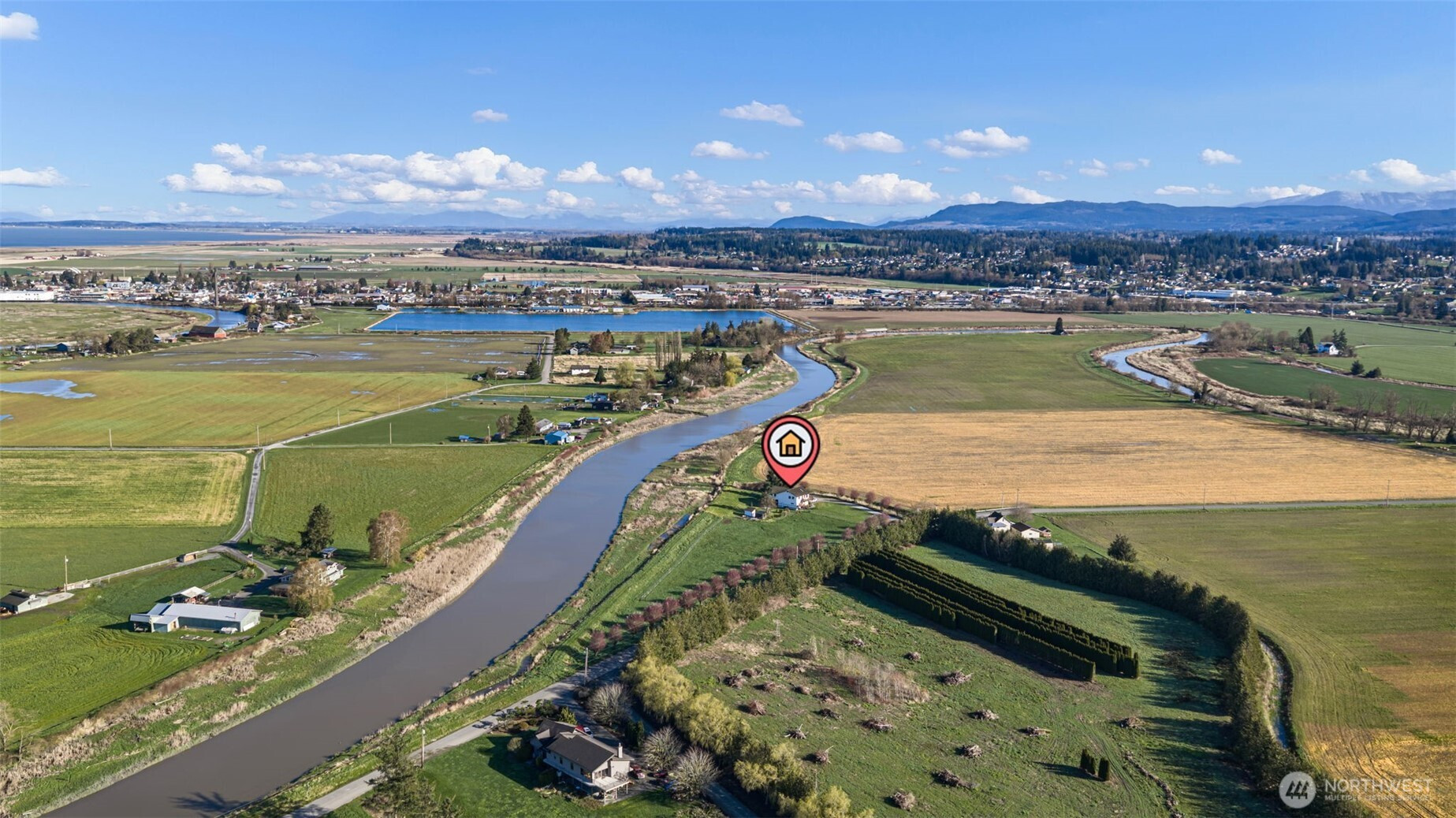 Enjoy breathtaking 360-degree views of the Olympic & Cascade Mountains, along with Livingston Bay and the Stillaguamish waterfront, all set on a shy 2.8-acre property. A stunning Mt. Baker backdrop completes the scene, while this 2-bedroom, 1-bath home offers spacious living and dining areas and a wraparound deck perfectly positioned to take it all in. The property is rich with opportunity and ready for your vision, featuring an existing detached DADU/studio, oversized multi-car garage, carport for RV or boat, chicken coop, fenced fields, and raised garden beds. A charming drive lined with mature cherry trees welcomes you in, creating a peaceful and private setting. Enjoy the feel of country living while being just minutes from local restaurants, specialty shopping, and everyday essentials + amenities. Whether you're seeking a serene retreat, hobby farm, or ample space, this property offers a rare combination of views, usable land, and waterfront living.