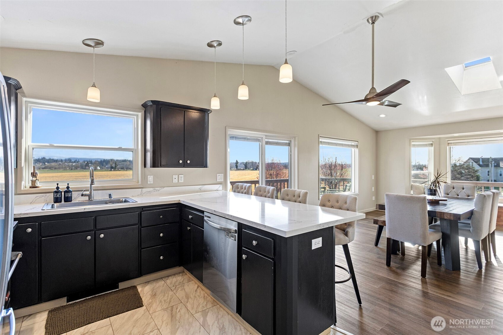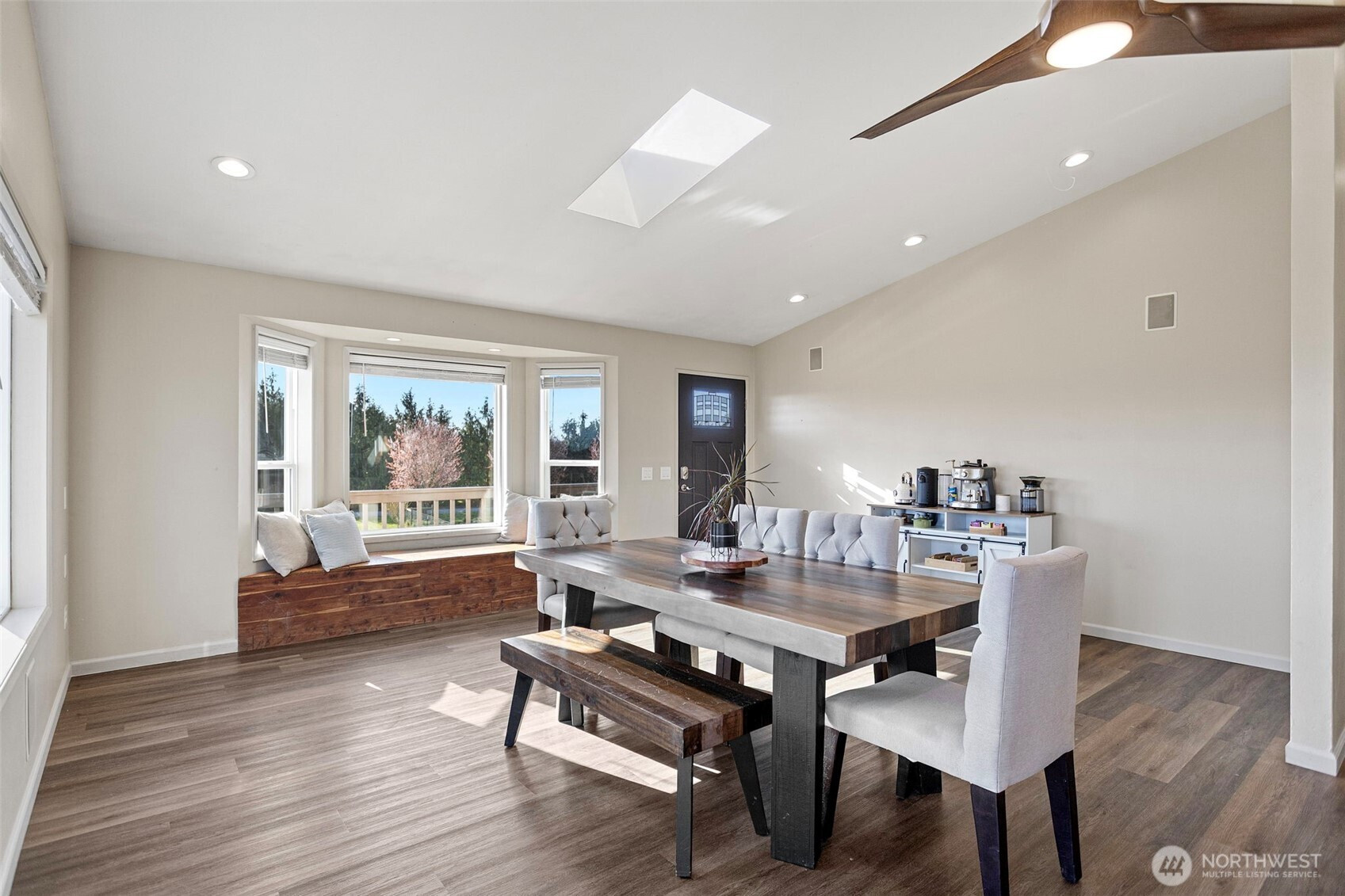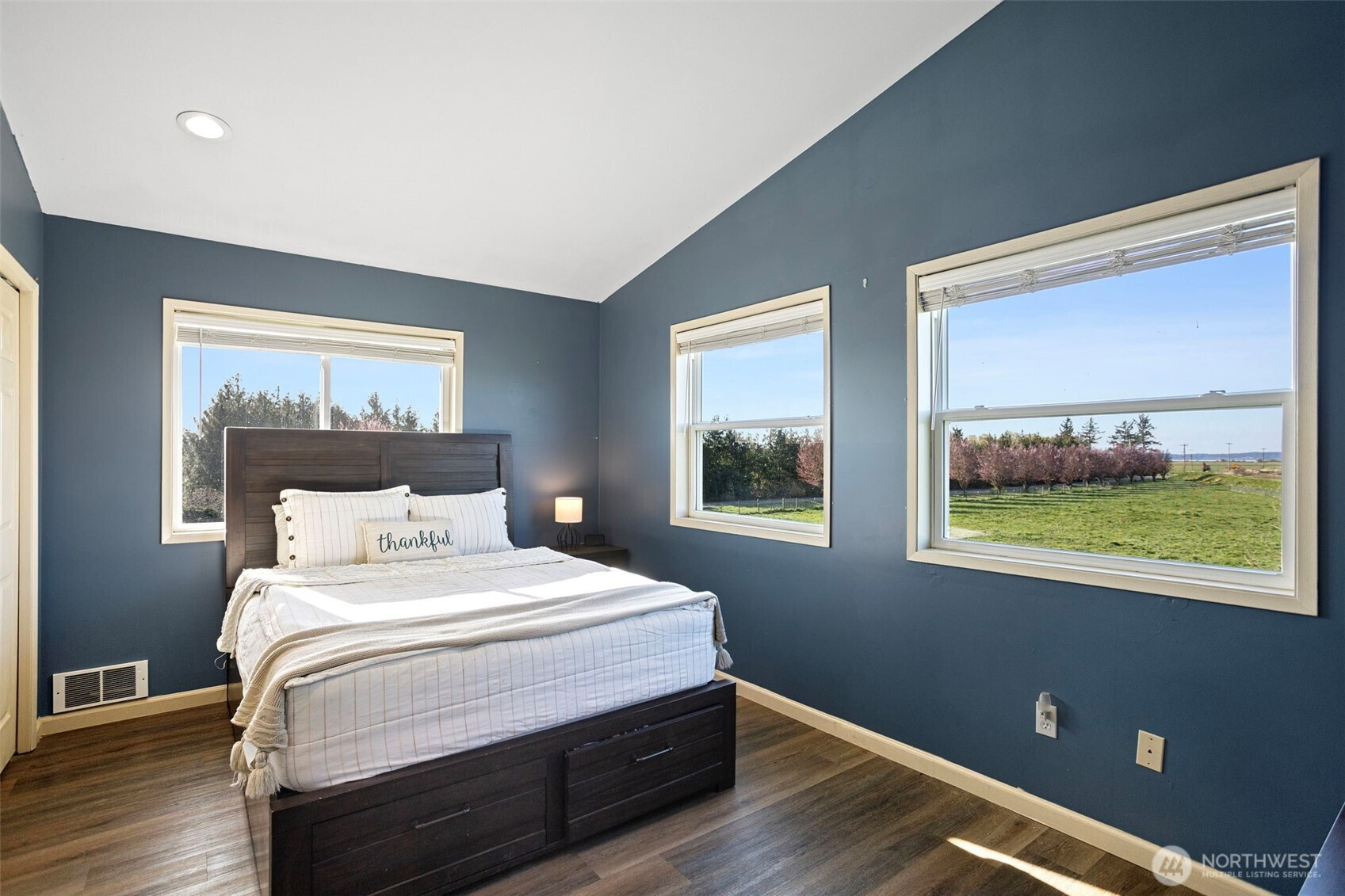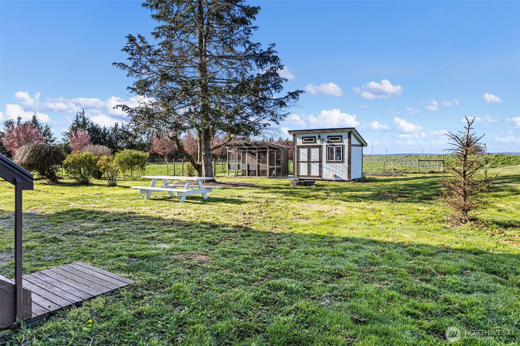 Enjoy breathtaking 360-degree views of the Olympic & Cascade Mountains, along with Livingston Bay and the Stillaguamish waterfront, all set on a shy 2.8-acre property. A stunning Mt. Baker backdrop completes the scene, while this 2-bedroom, 1-bath home offers spacious living and dining areas and a wraparound deck perfectly positioned to take it all in. The property is rich with opportunity and ready for your vision, featuring an existing detached DADU/studio, oversized multi-car garage, carport for RV or boat, chicken coop, fenced fields, and raised garden beds. A charming drive lined with mature cherry trees welcomes you in, creating a peaceful and private setting. Enjoy the feel of country living while being just minutes from local restaurants, specialty shopping, and everyday essentials + amenities. Whether you're seeking a serene retreat, hobby farm, or ample space, this property offers a rare combination of views, usable land, and waterfront living.