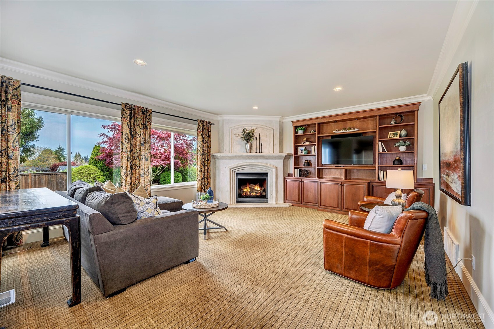 Built by Classico Homes, this Tuscan-inspired residence blends timeless elegance with Pacific Northwest character, ideally situated on a quiet dead-end street on the rim of the bowl. Thoughtfully designed, the home offers a seamless balance of refined style and everyday comfort, with rich architectural details and warm finishes. Large windows fill the home with natural light, and exotic pear wood floors and natural stone elements add warmth and character throughout. The cast limestone fireplace anchors the main living spaces. Ideal for entertaining and daily living, the well-appointed kitchen features slab granite and a butler’s pantry and adjoins the family room. The spacious primary ensuite provides a private retreat with its own fireplace and serene sound and mountain views. A dedicated home office with stately built-ins supports today’s work-from-home needs. Recent updates include interior and exterior paint, carpeting, and air conditioning for year-round comfort. A generous bonus room with a wet bar and mini refrigerator provides flexibility for guests or hobbies. Outdoor features are equally impressive, with a wood-fired pizza oven, gas-plumbed BBQ, hot and cold exterior spigots, and wiring for a future hot tub. Located just moments from nearby parks and offering exceptional walkability to downtown Edmonds, this home places you close to charming shops, restaurants, waterfront activities, and beaches—delivering the very best of Edmonds living!