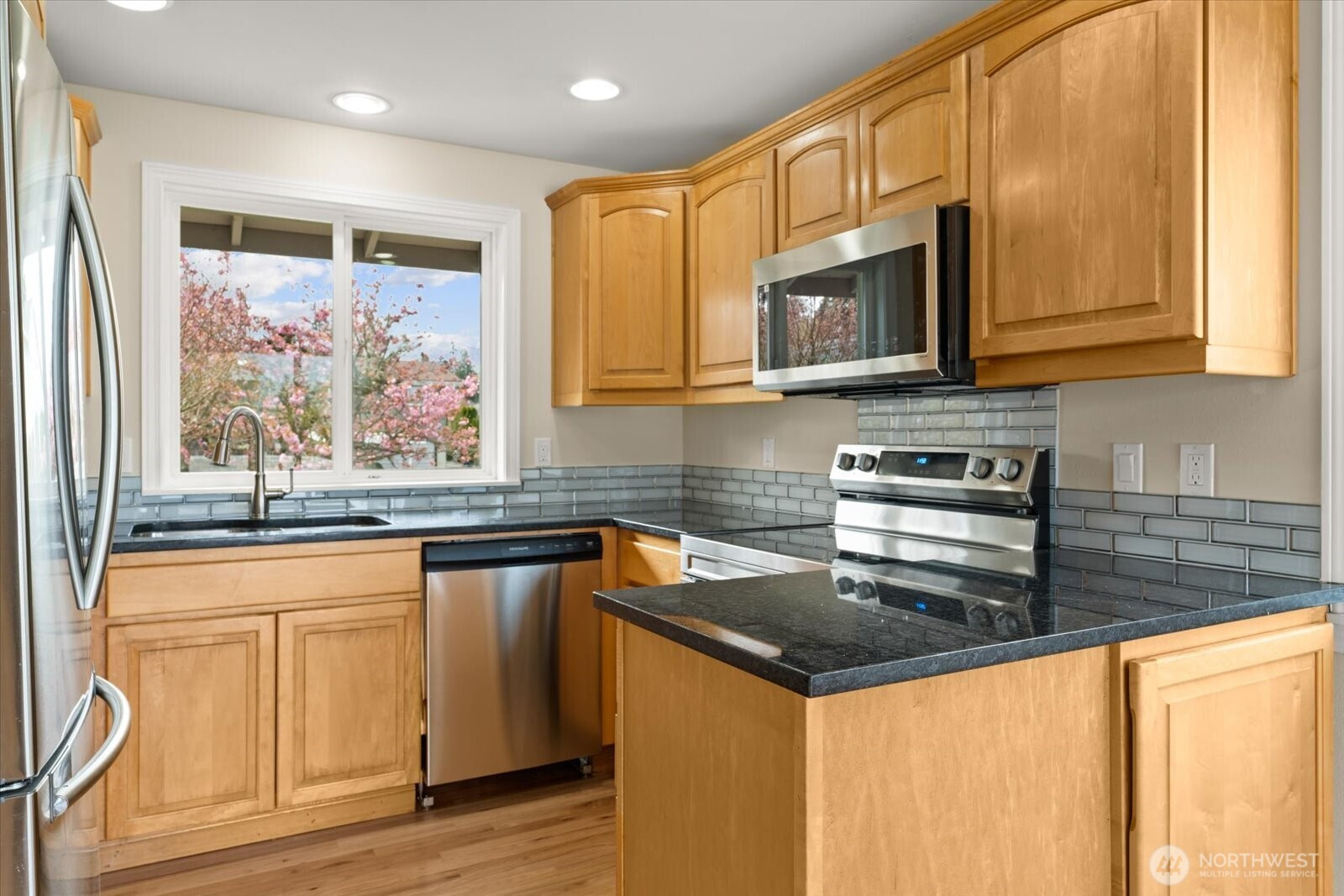 Amazing views of the mountains, sound & sunsets. Catch your breath as you enter this split-level home overlooking the Edmonds Bowl. This beautiful home boasts gleaming hardwood floors, fresh interior paint & trim, new carpets and appliances. Amazing views from Primary, living room with gas fireplace provides year-round enjoyment. Three upstairs bedrooms including a Primary bed & bath. A well-appointed eat in kitchen with easy access to the sprawling sun-drenched open-air deck. Great for morning coffee, afternoon breaks and overall entertaining. The daylight basement offers a studio 1x1 with its own entry and kitchen. Well maintained grounds with private alley access to the home as well as access off Maple St. Two car garage with laundry and workspace rounds out this amazing home. Blocks from downtown Edmonds, stores, shops and ferry terminal. A host of local parks and amenities await you close by. You won't want to miss this one!