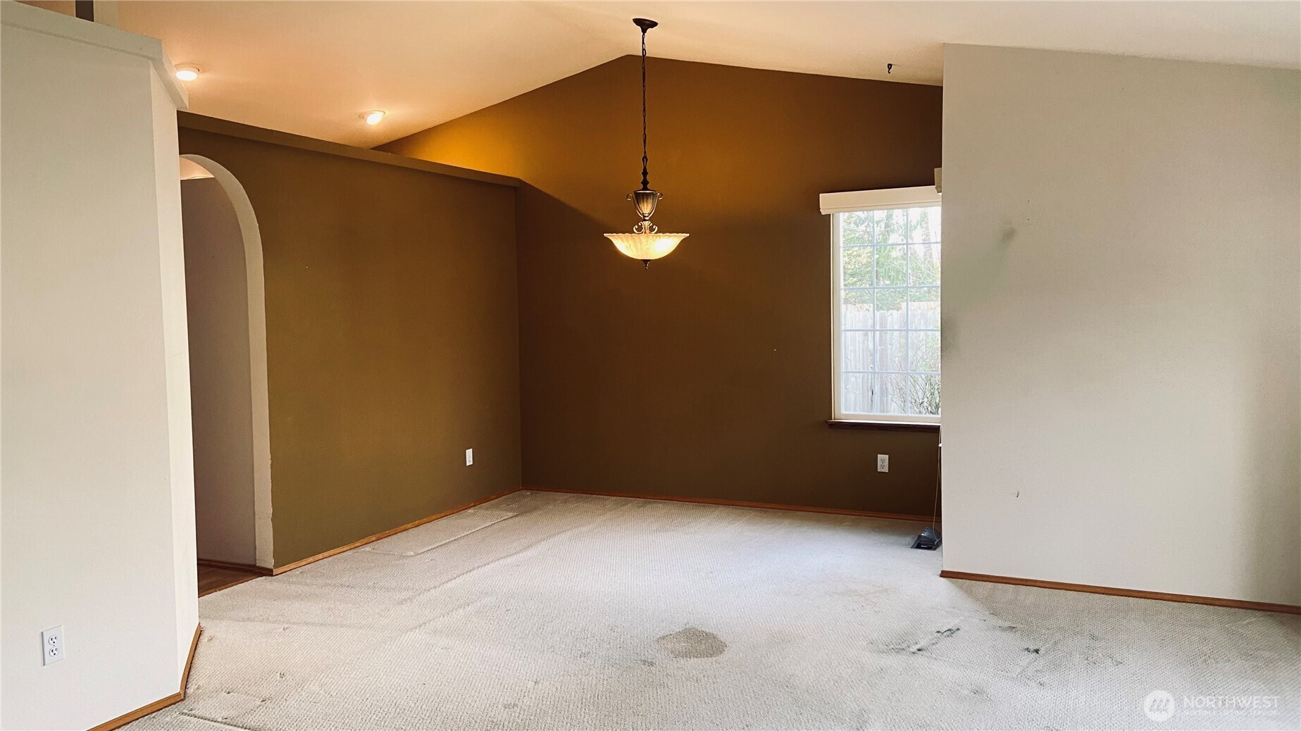 Charming Marysville rambler on a quiet cul-de-sac! Vaulted ceilings, skylights, and natural light create open ambiance throughout. The inviting great room with gas fireplace flows seamlessly from the kitchen, ideal for both everyday living and entertaining. Enjoy a generously sized primary bedroom and step outside to a covered back deck overlooking a tranquil greenbelt—offering privacy and serenity in the fully fenced backyard. Forced-air heating and cooling with a heat pump provide year-round comfort. New roof in 2023. All appliances stay. A wonderful opportunity to build instant equity in a desirable location near shopping, dining, parks & major commute routes. No HOA. Virtually staged to help you imagine the possibilities.