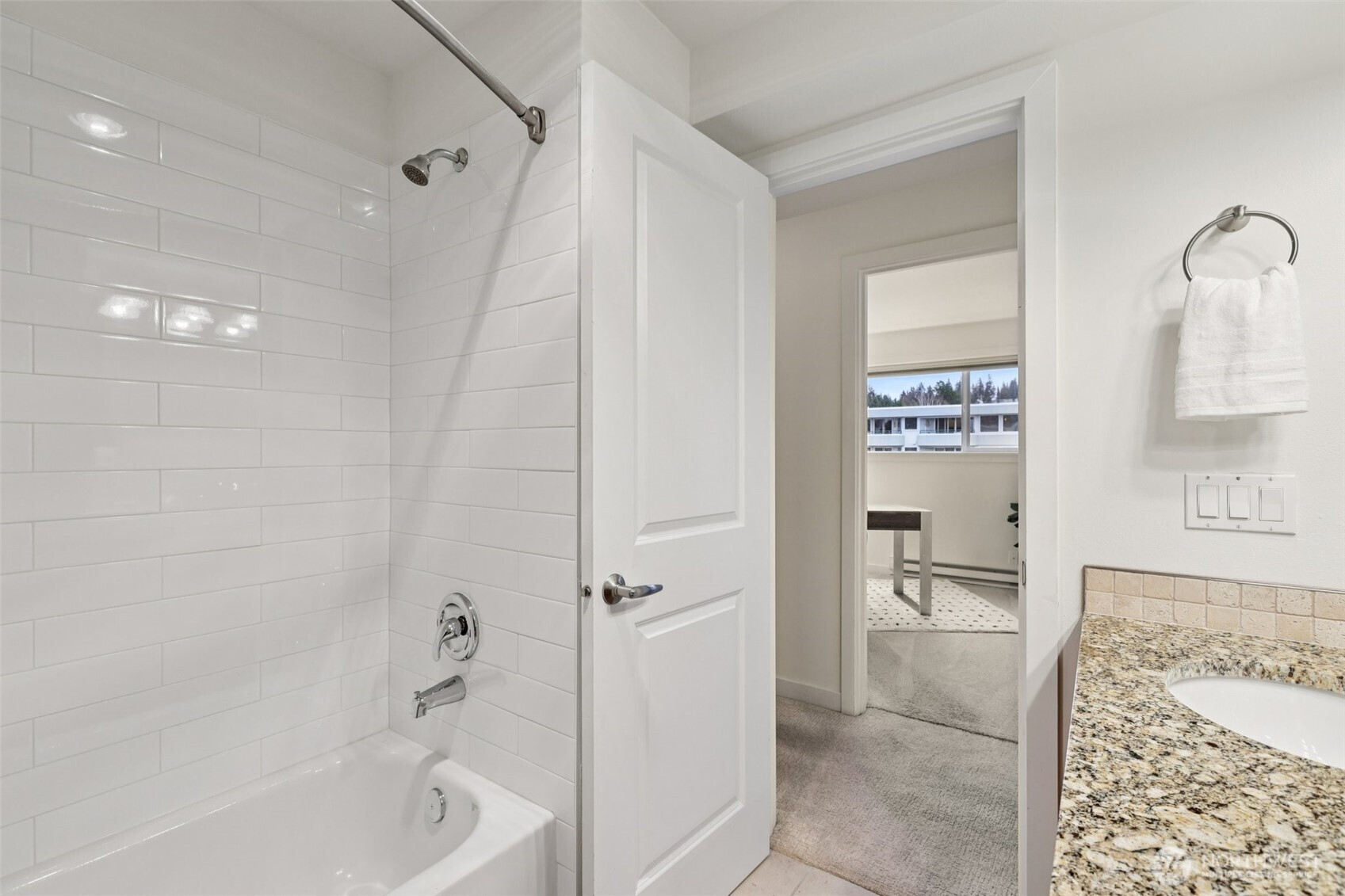 Super location for this Edmonds turnkey condo with 2 Bedrooms and 2 FULL Baths. Brief stroll to downtown Edmonds amenities: award winning restaurants, Edmonds Center for the Arts, Kingston Ferry, waterfront/beach and eclectic boutiques. ONE LEVEL condo with many upgrades; quality wood doors/cabinetry, granite counters, fresh paint, quality blinds, tiled tub surrounds, 1 year old LG washer/dryer and hardwood floors. Exterior deck to relax and watch the annual Edmonds Car Show. Convenient assigned parking stall and storage room. Entire complex will have fresh interior paint/new carpet throughout by next February. Building has an elevator too. If you're looking for easy living at an affordable price, don't pass this sweet condo up!