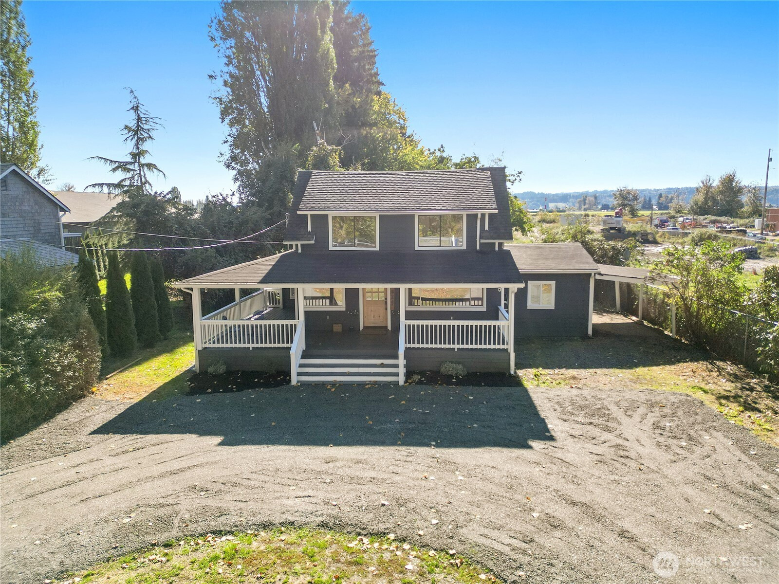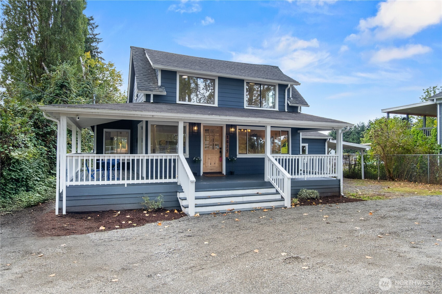 Picturesque historic farmhouse on one acre lot. Heartstrings tugged w/a wrap-around covered front porch & charming craftsman design. Enter spacious living spaces w/built in entry bench and dining area open to living room. Cozy kitchen w/brand new quartz counters & backyard access. Main floor primary suite w/huge soaking tub, separate entrance & large laundry w/pet washing spa. Upper floor features Junior suite w/3/4 bath & balcony w/serene views. 2 guest bedrooms. New carpet, fresh paint, new cabinets & more! Entertain on the back deck overlooking the huge yard. Endless possibilities w/LI zoning: property could have shop, RV parking & work spaces. Ample parking on u-shaped driveway. 5 minute stroll to D/T Snohomish boutiques & dining.