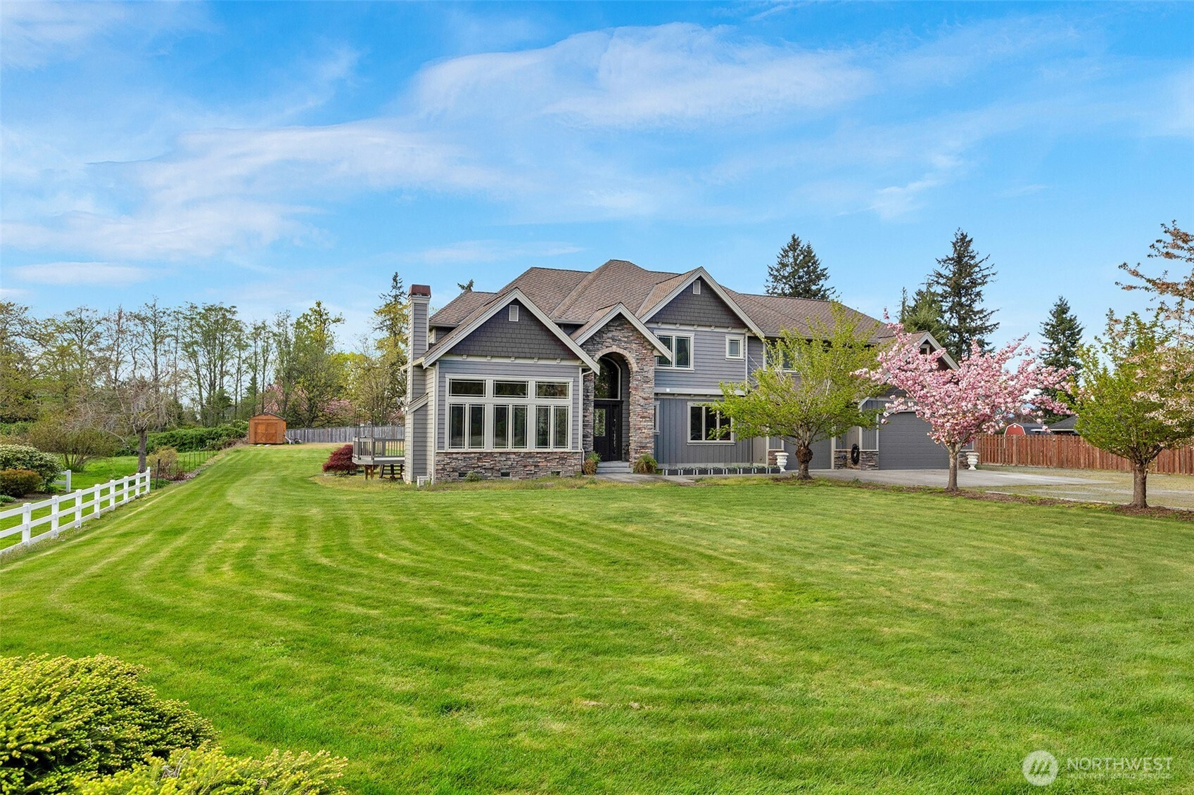 Meticulously crafted custom luxury home set on 1.03 acres with partial mountain views in highly sought-after Snohomish. This architecturally refined residence offers 4 bedrooms, 3.5 baths, and over 4,300 sq ft of thoughtfully designed living space, where quality craftsmanship and premium materials are showcased throughout. Rich cherry hardwood floors, matching custom cabinetry, detailed millwork, and crown molding create a timeless aesthetic. The gourmet kitchen features slab granite countertops, a butler’s pantry, and a spacious walk-in pantry, seamlessly opening to expansive living and dining areas with soaring ceilings and natural light through double-pane Pella Windows. Designed for everyday living and entertaining, the home includes a large rec room, bonus/playroom, and a dedicated home office. The primary suite offers a private retreat with marble finishes and spa-inspired baths. Exceptional construction includes full interior and exterior insulation—including between floors and staircases—for enhanced quiet and comfort. Modern conveniences include dual A/C units, generator wiring, security system, and water softener. Outdoor spaces are prepped for a future kitchen with gas and water connections. The property also features a garden shed and includes plans for a proposed 40x60 shop. An oversized insulated 3-car garage, no HOA, and ample parking complete this rare offering, just minutes from downtown Snohomish, local wineries, and commuter routes.