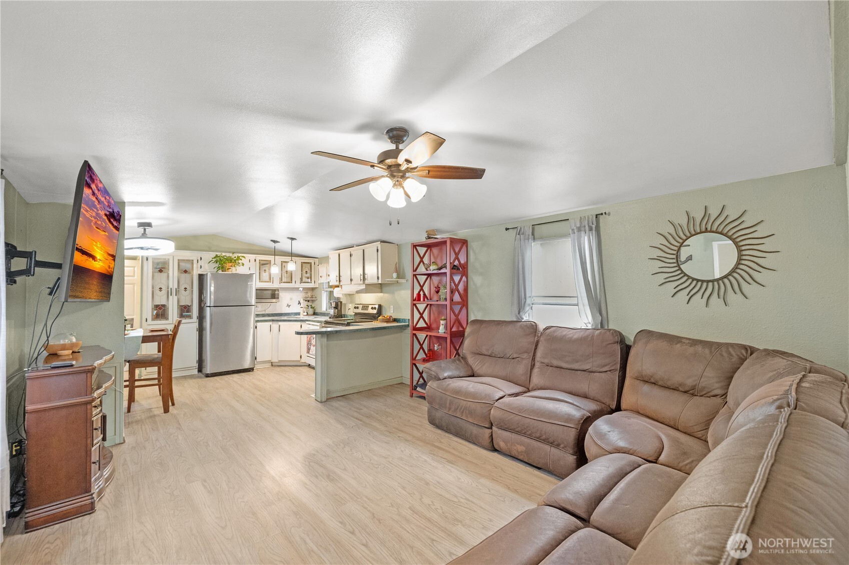 Enjoy comfortable, affordable living in this well-kept 1998 manufactured home featuring a spacious layout and a generous yard in a park with no age restrictions. The home offers two large bedrooms, a bright kitchen with a breakfast bar and dedicated eating space, and great natural flow throughout. A storage shed in the backyard provides extra room for tools, hobbies, or seasonal items. Space rent includes water, sewer, and garbage, adding convenience and value. Park approval required.