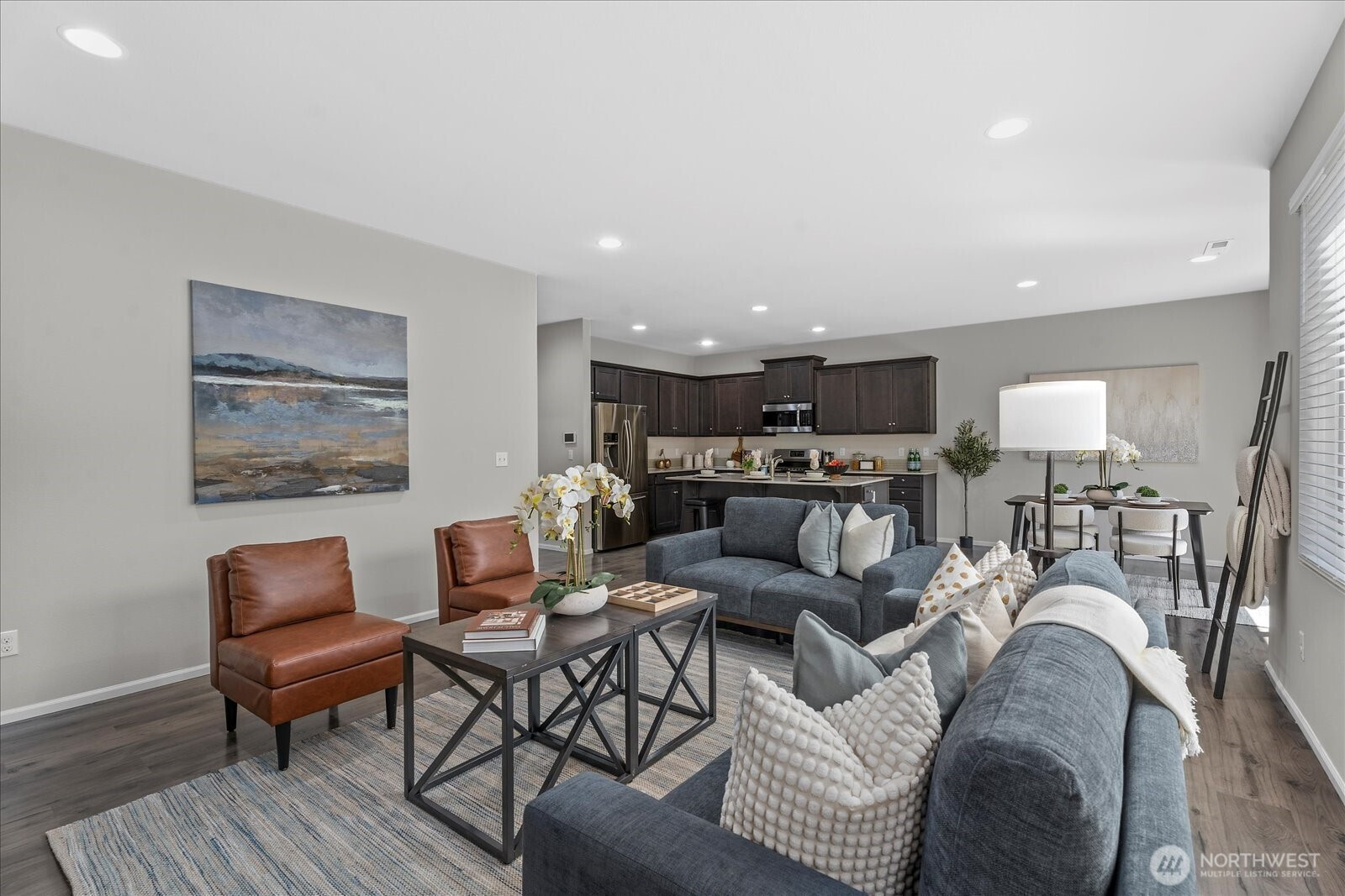 Discover a home where modern design meets everyday comfort. This 5-bedroom, 2.75-bath home blends comfort, style, & thoughtful finishes. The open layout features a great room with gas fireplace and chef’s kitchen with quartz counters, stainless appliances, gas range, oversized island, pantry, & dining area. A main-floor bedroom with ¾ bath, perfect for guests or office. Upstairs, 4 bedrooms include a serene primary suite with French doors, dual walk-in closets, double sinks, tile shower, & soaking tub, plus a large bonus room & convenient laundry room. Not to be missed is a fully fenced yard, fresh paint, newer upstairs laminate flooring, 220V EV outlet, & 2-car garage. Prime Lake Stevens location near highways, shopping, parks, & dining.