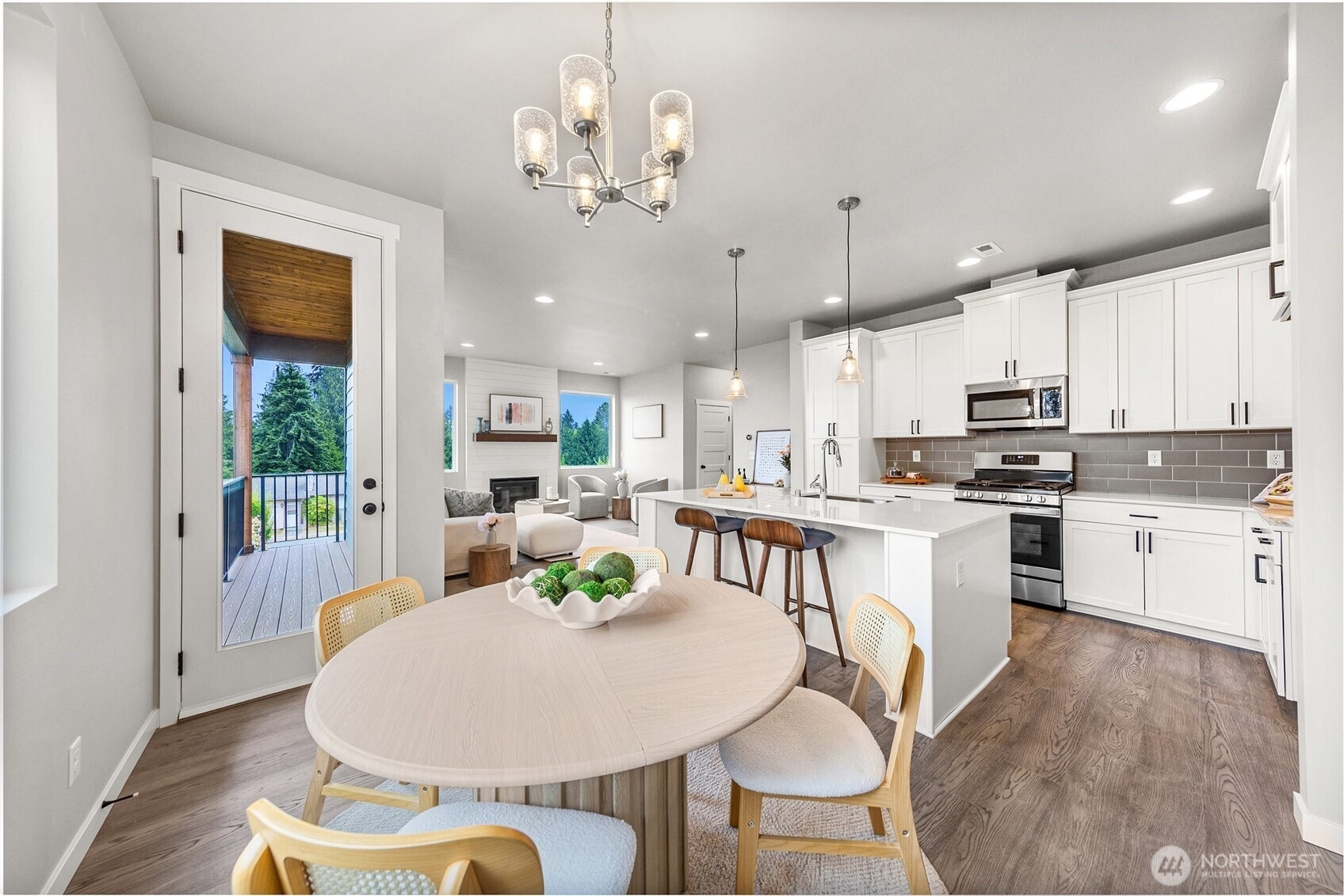 Stunning Lake Stevens home with breathtaking views of Mt. Baker, the Cascades, and the lake! Perfectly situated on a spacious fully fenced corner lot in a peaceful cul-de-sac, this 2021 Cornerstone build offers privacy, modern design, and the best of convenience. Just minutes to Costco, Target, dining, and I-5, yet tucked in a quiet neighborhood with highly rated schools. Open main level features a chef’s kitchen with quartz counters, great room, dining area, and powder bath. Upstairs offers 4 bedrooms, laundry, and a spacious master suite with gorgeous views. Finished daylight basement adds a rec room, full bath, and bedroom—ideal for guests or multi-gen living. Covered deck, landscaped yard, and neighborhood park complete this rare find!