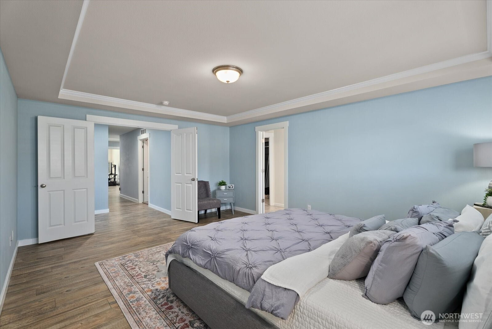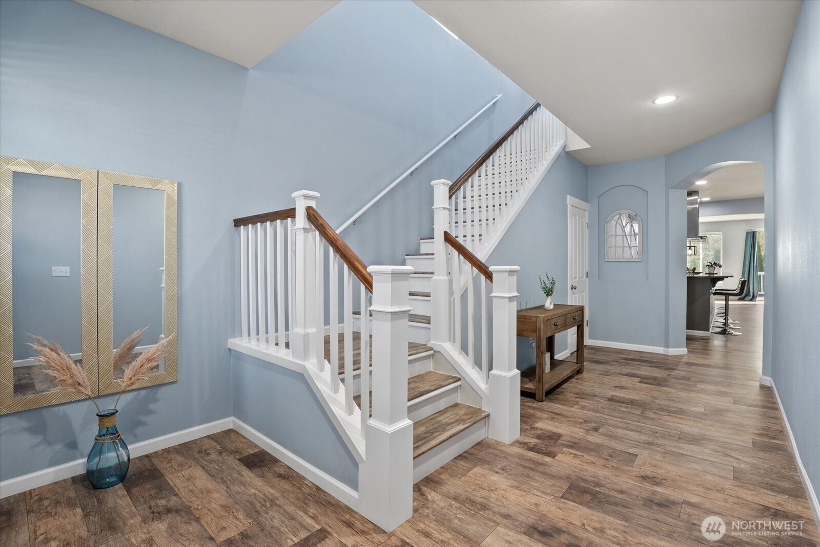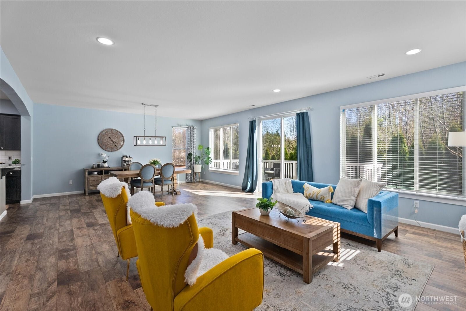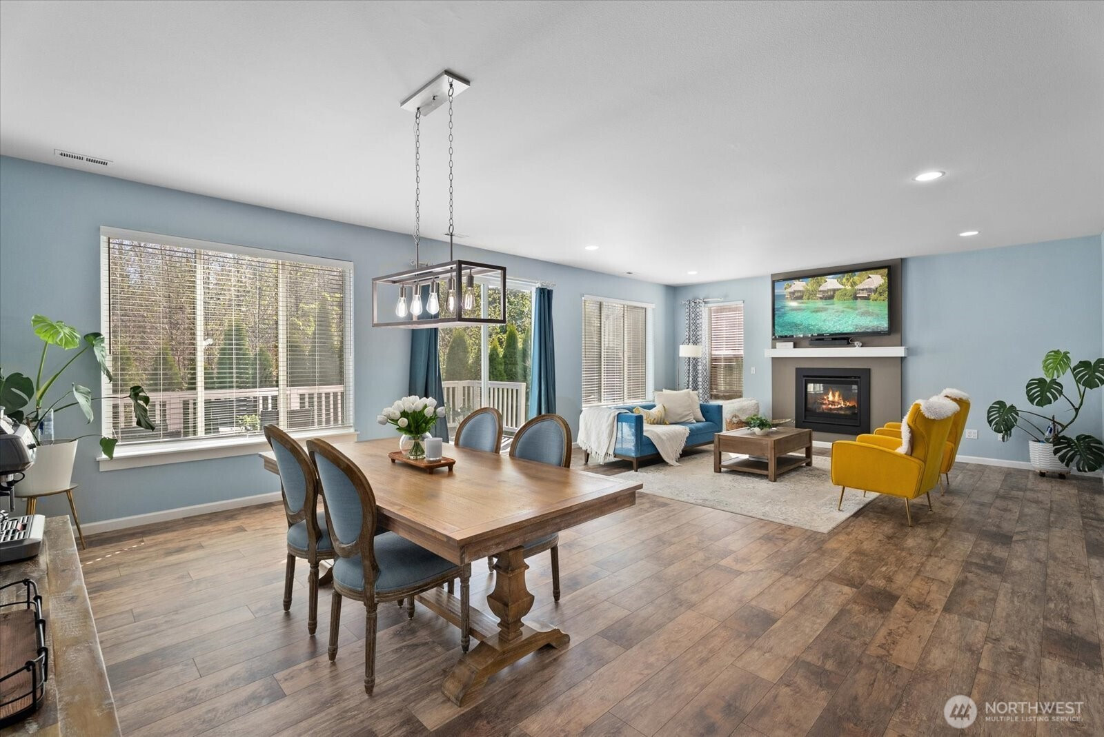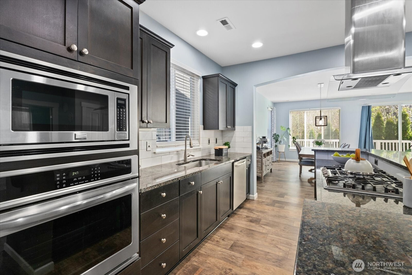Welcome to this beautifully appointed 5-bedroom home in the sought-after Westlake Crossing community of Lake Stevens, where thoughtful design and modern comfort come together effortlessly. Built in 2019 and offering 3,087 sqft, this move-in ready home features a bright, open layout with soaring ceilings, abundant natural light, and luxury vinyl plank flooring throughout. The kitchen is both functional and refined, featuring an oversized granite island, gas range with vent hood, stainless steel appliances, pantry, and abundant storage, ideal for everyday living and entertaining. The great room with a cozy gas fireplace flows into the dining area and out to a custom deck overlooking a private greenbelt, creating a peaceful indoor-outdoor connection. A main-level bedroom and ¾ bath provide flexibility for guests, multi-generational living, or a home office. Upstairs, the spacious primary suite features French doors, a 5-piece bath with soaking tub and tile shower, and dual walk-in closets, including a custom closet system. Three additional bedrooms, a ¾ bath, upstairs laundry, and a large bonus room offer flexible living space. Additional highlights include fresh interior paint, EV charging, solar panels, tankless water heater, low-maintenance landscaping, sprinkler system, and ample storage. Conveniently located in Lake Stevens near parks, shopping, dining, and major commuting routes including Hwy 9, Hwy 2, and I-5, within the highly regarded Lake Stevens School District.