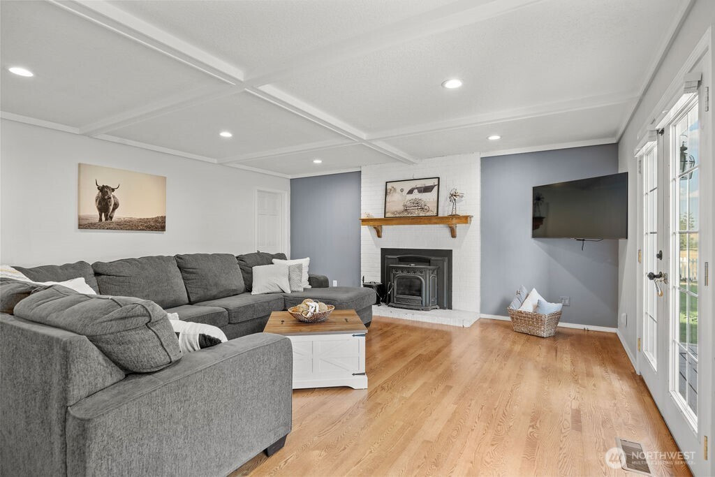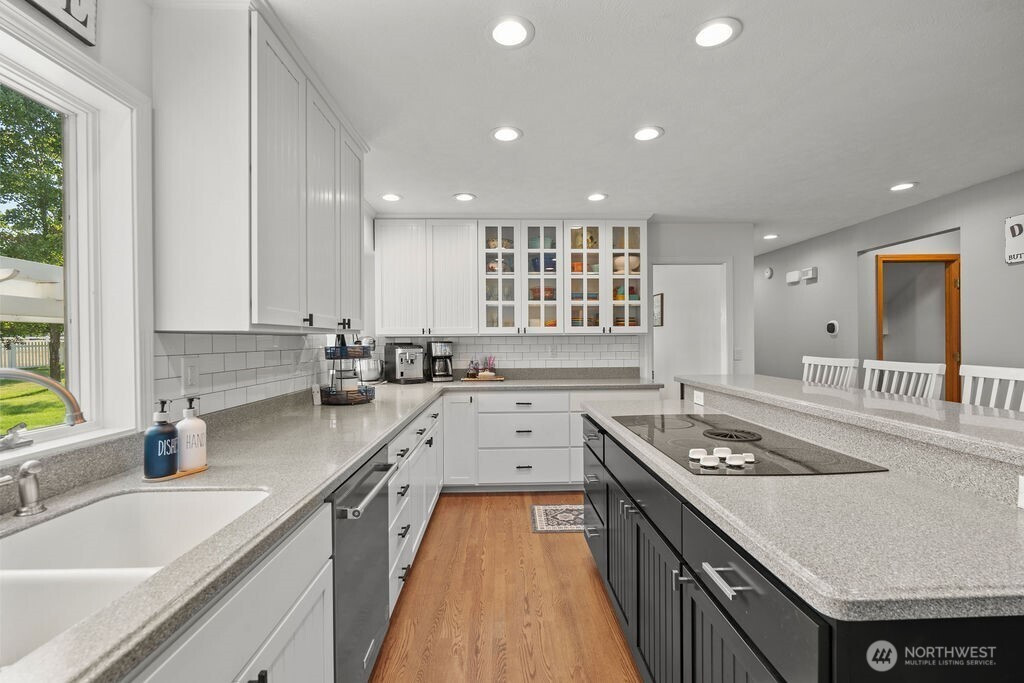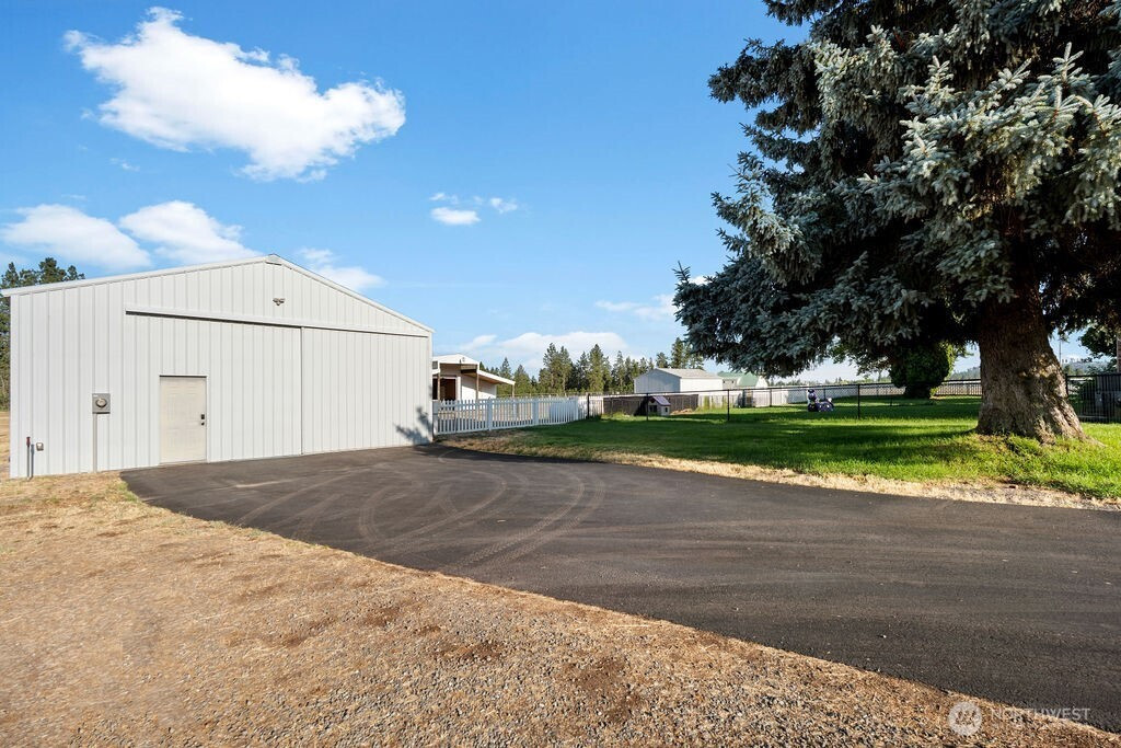 Country Farmhouse, South of Spokane – Best Location! This amazing home is ideal for horses, animals, or hobby farming. Enjoy the peaceful, country setting. Inside, you’ll find 4 spacious bedrooms, including a luxurious primary suite w/ a spa inspired bathroom featuring double sinks, a walk-in shower, garden tub & French doors that open to the spacious decking. The laundry room is on the main floor. Beautiful hardwood flooring throughout. The updated kitchen boasts stainless steel appliances, double ovens, Corian countertops, a reverse osmosis water system, pantry, roll-out drawers, French doors leading out to deck—perfect for both everyday living & entertaining. A formal dining room w/ French doors, & 2 family rooms. Basement offers rec room, stove & exercise area. 30x40 Shop has stove, barn has /3 stalls, water, electric & 3 runs. Views surrounding entire property. Ask to see amenity list for all updates! Fenced & crossed fenced. Fruit Trees and so much to love!