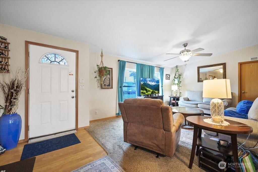 Check out this conveniently located home in Spokane Valley with a larger lot and detached shop/garage. Potential VA loan assumption with low interest rate! This home features a 4th bedroom which is uncommon for homes of this type. Two living rooms compliment over 1,800 SqFt of living space. Complete primary suite with double sinks and walk-in closet. Central AC and forced air heat. Improvements within the last 5 years include some window replacements, flooring, and newer appliances. All kitchen appliances stay with the home. Parking includes RV and garage parking complemented by a circle driveway. The backyard offers ample garden space and plenty of room to play. Don’t miss this opportunity to live close to town with easy commuting options!