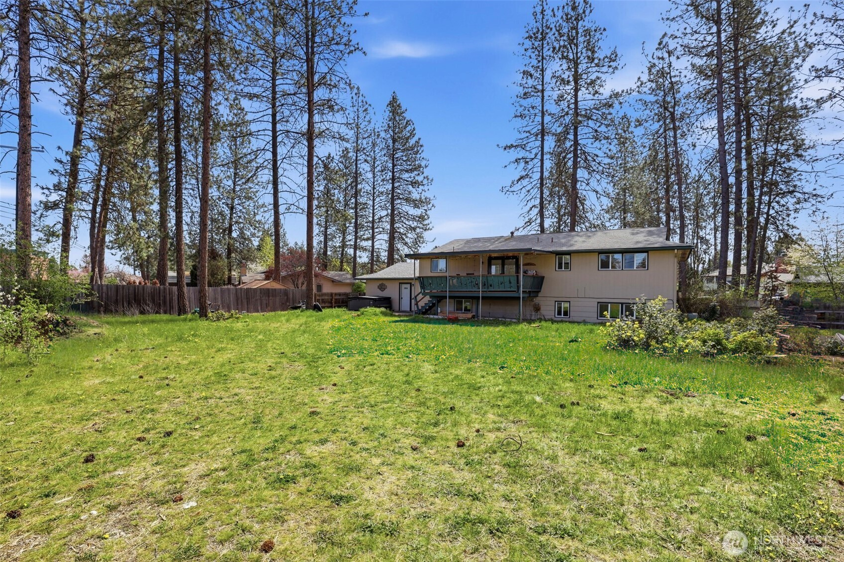 Large Mead district home available. This 5 bedroom, 3 bathroom home features fireplaces on both levels, new windows throughout, and a hot tub. The second level offers a dinning area, kitchen leading to a large outdoor deck overlooking the oversized fenced in yard, 3 bedrooms, including the master bedroom with en suite. The lower level offers 2 bedrooms, 1 bathroom, a family room, storage room and large laundry area with utility closet and access to attached garage. Laundry area is stubbed for a sink. This home is on an oversized lot located in a cul-de-sac, perfect for low traffic. With schools, shopping, dinning and parks all within walking distance, you can not beat this location!