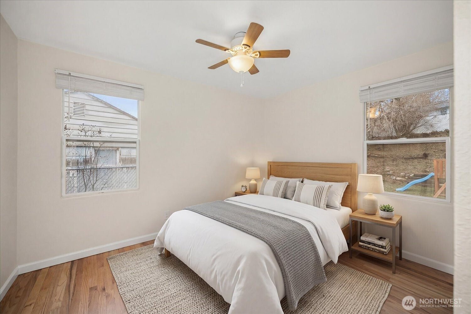 Charming 3-bedroom, 2-bathroom rancher with a 2-car garage and shop area in Spokane’s Shadle Park neighborhood! This updated home features fresh paint, refinished hardwood floors, and a spacious main floor with two bedrooms, one bathroom, and an updated kitchen with stainless steel appliances and an adjoining dining area. The basement offers a family room wired for surround sound, along with a large primary bedroom and oversized bathroom with a jetted tub. Step outside to enjoy the fully fenced backyard, perfect for relaxing or entertaining. Additional highlights include a newer roof and vinyl windows. Conveniently located within walking distance of parks, schools, shopping centers and the public pool.