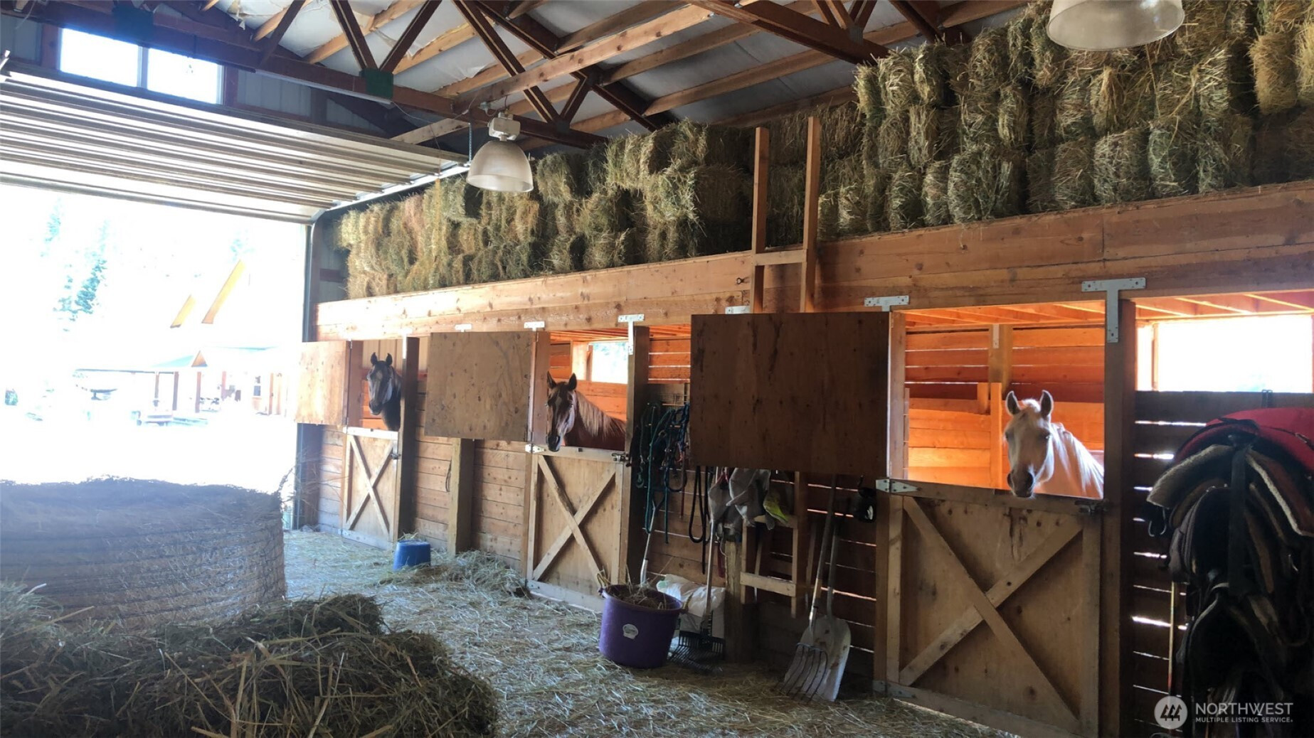 Stunning creekfront equestrian estate with private FAA-certified airstrip and two residences on 46.69 fully fenced acres in Northeast Washington. Crown Creek Ranch blends luxury living, aviation access, income potential, and turnkey horse facilities—ideal for equestrians, private pilots, outdoor enthusiasts, or those seeking a secluded retreat. A year-round creek flows through wooded riding trails, open hay fields, and abundant wildlife, secured behind a gated keypad entry. The 3,400-square-foot custom main home offers open-concept living centered around a chef’s kitchen, dual primary suites including a main-level suite with radiant heated floors, three travertine baths, private office, gym/flex room, and spacious laundry. An expansive wraparound Trex deck and screened porch create seamless indoor-outdoor living. Multiple heating and cooling systems, whole-home generator, private well with 3-stage filtration and UV, and a breezeway to an extra-tall 3-car garage. The 1,200-square-foot bunkhouse sleeps 10+, features 3 baths, full kitchen, separate septic, leased propane tank, and has operated as a successful Airbnb. Equestrian amenities include a 120x60 lighted indoor arena, outdoor arena, round pen, five-stall barn with heated tack room and wash station, cross-fenced pastures, loafing shed, hay field, and equipment shed. The ½-mile gravel airstrip leads to a 40x50 hangar with Schweiss bifold door. Near Red Mountain, Northport, and state land, this is a rare NE Wa. offering.