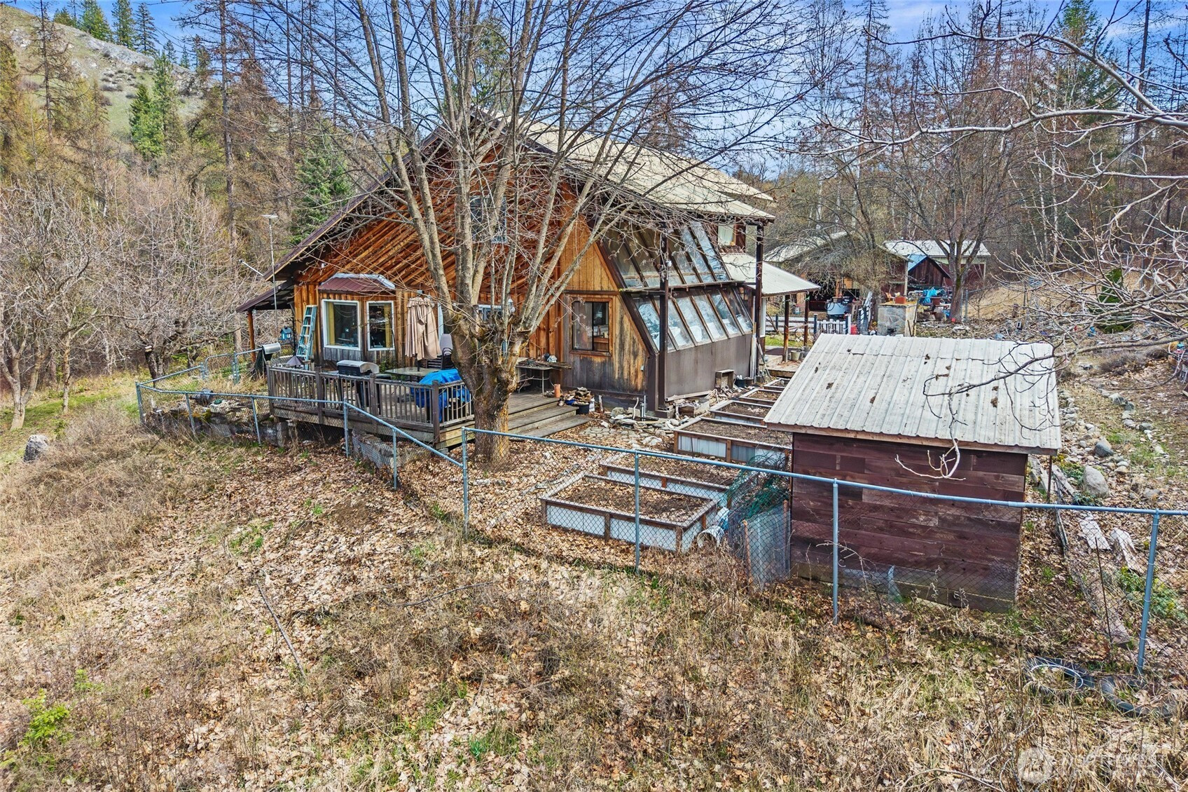 Rural living at its finest! Experience peace & privacy, on this 20-acre property nestled in the scenic Upper Columbia River region. Ideal for a hobby farm or self-sufficient lifestyle, the land features a fenced garden w/ raised beds, a drilled well, an attached greenhouse, mature fruit trees, & beautiful stands of tamarack. The home offers a warm & inviting layout w/4 bedrooms, 2 bathrooms, a den, cedar floors upstairs & even a sauna for ultimate relaxation. The spacious kitchen is designed for both comfort and function, featuring a double sink, island cooktop, and a cozy dining area. Step outside to enjoy a large, covered porch or head to the back deck to take in sweeping countryside views. Additional highlights include ample storage and workspace with a 21' x 54' shop and a 12' x 30' garage—perfect for projects, equipment, or recreational vehicles. Whether you're looking to homestead, garden, or simply unwind in nature, this property offers the perfect blend of comfort, utility, and rural charm.