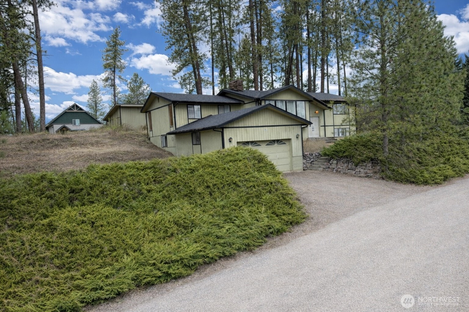 Versatile 4-bedroom, 3-bath home on a generous larg lot offering exceptional multi-generational living potential! With 2,922 sq ft, this home features two full kitchens—upstairs and downstairs—ideal for an ADU or separate living space. The lower level includes a spacious bedroom, large living area, abundant storage, and a bathroom with sauna. Upstairs boasts a bright kitchen with breakfast bar, open living room with stunning rock fireplace, 3 bedrooms, and 2 baths. Enjoy beautiful mountain views surrounding the property. Recent updates include a new roof. A huge 4-car garage plus a large outbuilding provide ample space for vehicles, hobbies, or storage. Endless possibilities!