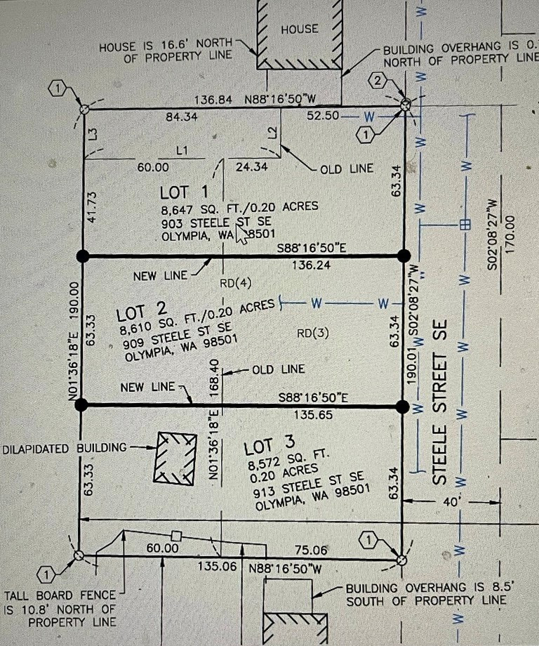 Prime Olympia infill development opportunity featuring three legal, buildable RM-18 zoned lots. Duplexes are allowed by right for up to six total units; single-family residences are also permitted. An approved and recorded Boundary Line Adjustment establishes all three parcels as legal buildable lots. A public sewer main extension is approved with individual services planned to each lot. Water service is on-site and runs along the frontage of all three lots, and electrical service is available at the corner of Lot 1. Surrounded by established residential development, including a nearby duplex. Lots available individually or as a package. Ideal for builders or investors seeking a clear path to development.