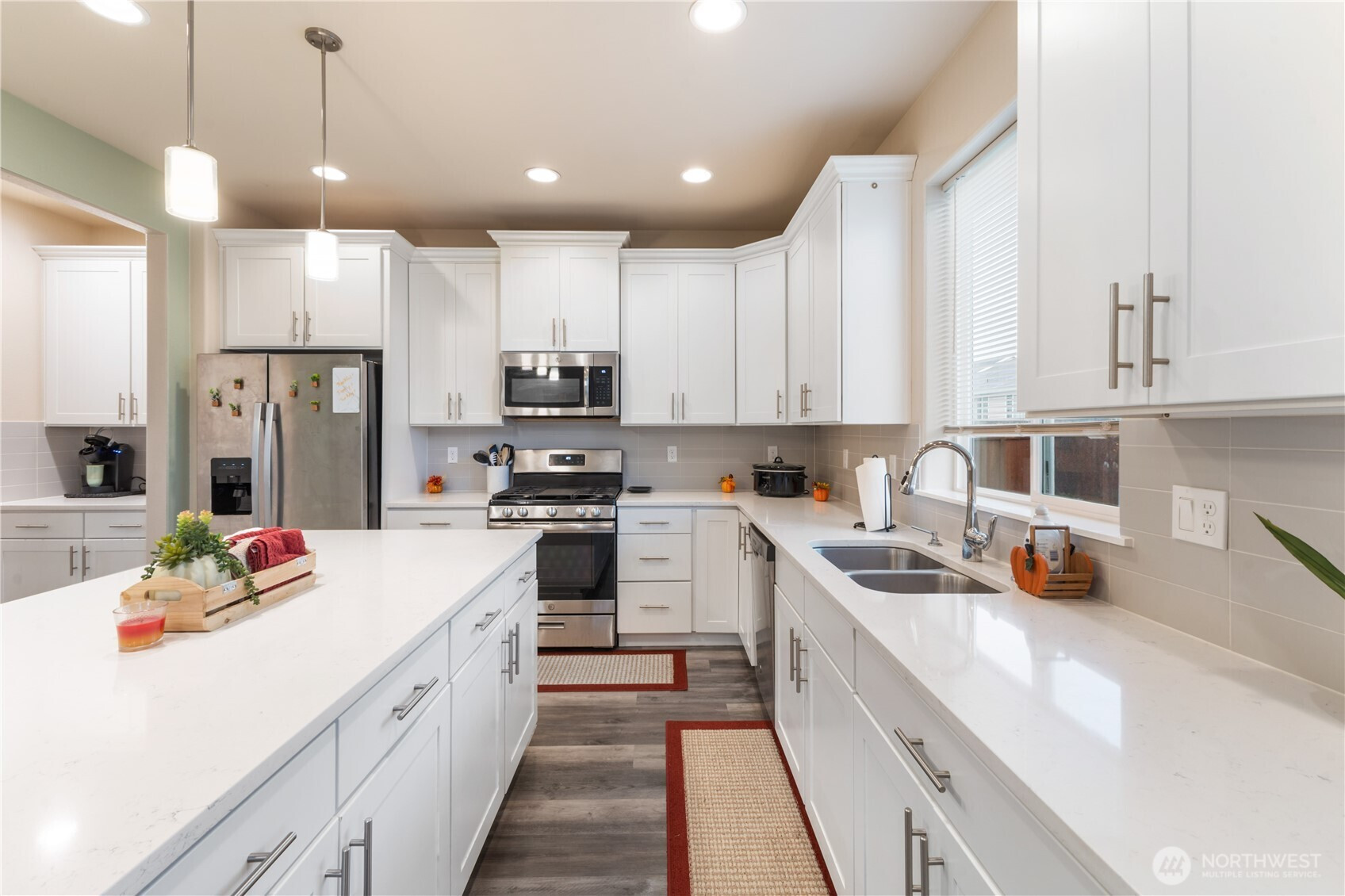 NO HOA!!Comfortable living with thoughtful upgrades throughout. The main floor features an open-concept kitchen and living room with a dine-in island, walk-in pantry, formal dining room, and convenient butler’s pantry perfect for entertaining. Upstairs includes loft space and a dedicated utility room. The exquisite primary suite boasts a private bath, double vanity, and an expansive walk-in closet. Laminate plank flooring, quartz kitchen countertops and recent updates including new heat pump, tankless water heater, fresh interior paint, new LED light fixtures in all bedrooms, dual thermostats for customized upstairs/downstairs comfort, filtered shower heads, new low-maintenance front-yard turf.