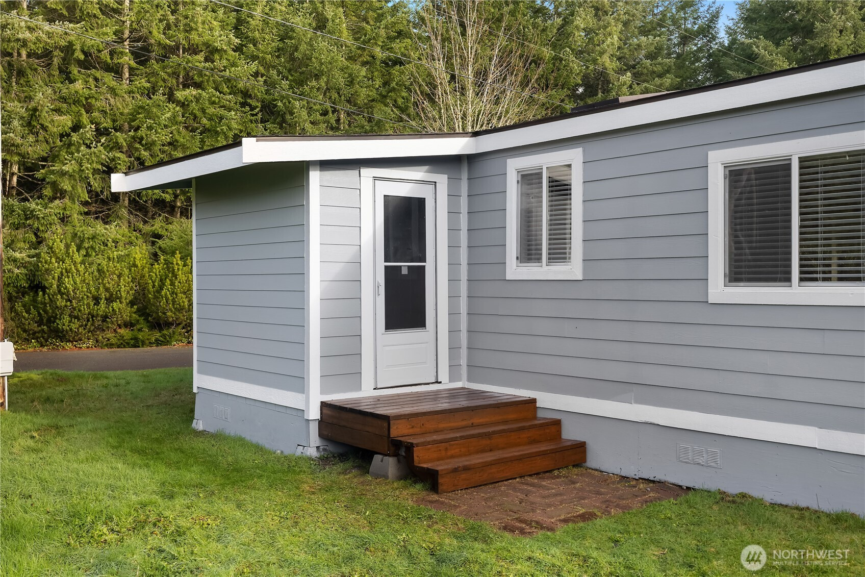 Experience modern comfort in this fully renovated 3-bedroom, 2-bath double-wide home nestled in the peaceful Delphi Mobile Home Park. The spacious backyard is perfect for entertaining, play, or relaxing outdoors. Recent updates include new flooring, fresh paint, stylish blinds, a new water heater, updated toilets and light fixtures, and a standout kitchen featuring stainless steel appliances, plus much more. Both bathrooms offer elegant quartz showers, creating a spa-like feel. Conveniently located just 15 minutes from Olympia and within the desirable Tumwater School District. Lot rent is $730/month. Move-in ready and thoughtfully updated—this home truly checks all the boxes.