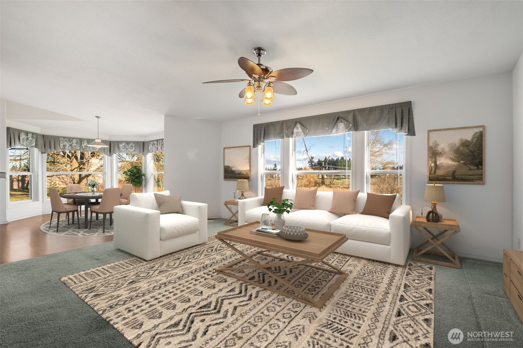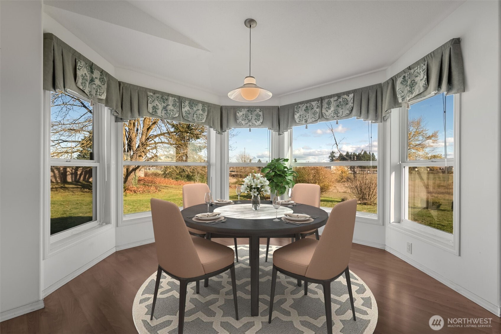 Beautifully set on 2.39 acres in the heart of Yelm. Bright & open 2,496 sqft home offers a perfect blend of peaceful country living & in-town convenience. Enjoy view of Mount Rainier from the living room & create your own small farm! From maintained exteriors to sun filled interiors & an airy design for comfortable one-level living. Inside appreciate a kitchen w/walk-in pantry & breakfast bar, separate office/den, gas FP & heat pump for year-round comfort. Play outside in raised garden beds & a massive 1,024 sqft garage/shop complete w/ 1/2 bath, wood stove, attic storage, garden/craft space & covered area for toys/tools. Wheelchair accessible w/potential for ADU/Adult family home. Close to restaurants, shopping & easy commute to JBLM. WOW!