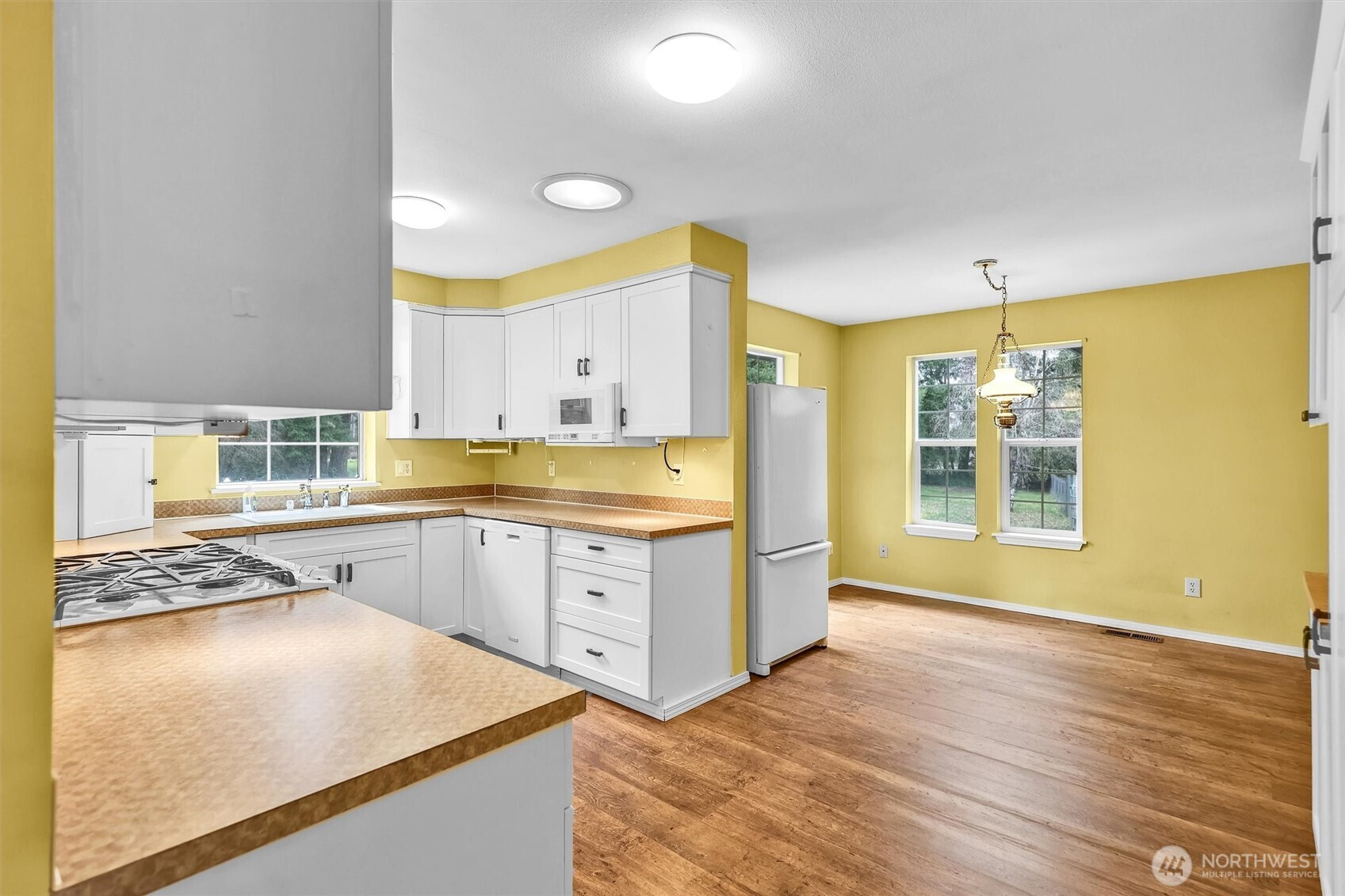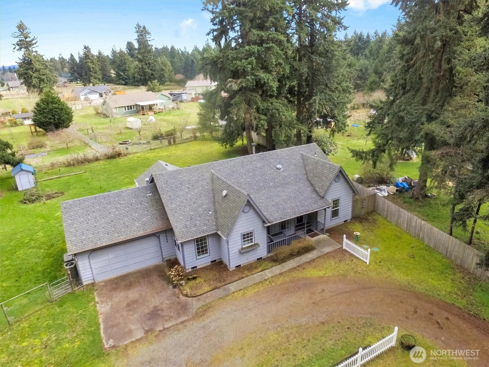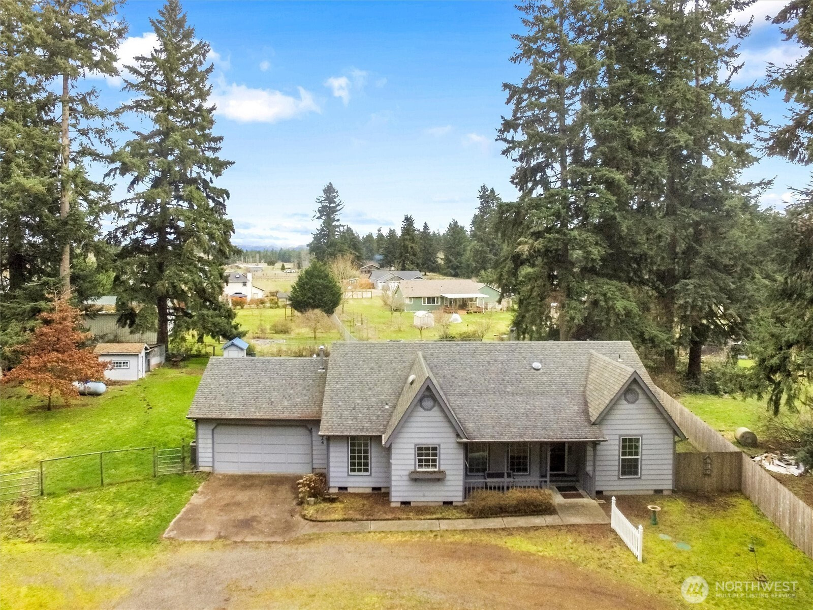 Charming Victorian-style rambler situated on just under 2 acres in a convenient in-town location! Enjoy a private setting at the end of a quiet road with room to spread out while still being close to amenities. This 3-bedroom, 2-bath home offers spacious living and functional comfort throughout.The kitchen comes fully equipped with all appliances included and instant hot water. A cozy wood stove and efficient heat pump provide year-round comfort, and an automatic generator offers added peace of mind. All bedrooms feature walk-in closets, providing abundant storage.The property is partially fenced and ideal for animals, hobbies, and outdoor living. A 2-car garage, individual well, and a large 18’ x 12’ basement storage area add excellent utility. Plenty of space for RV parking, equipment, and recreational toys. Enjoy country-style living with in-town convenience!