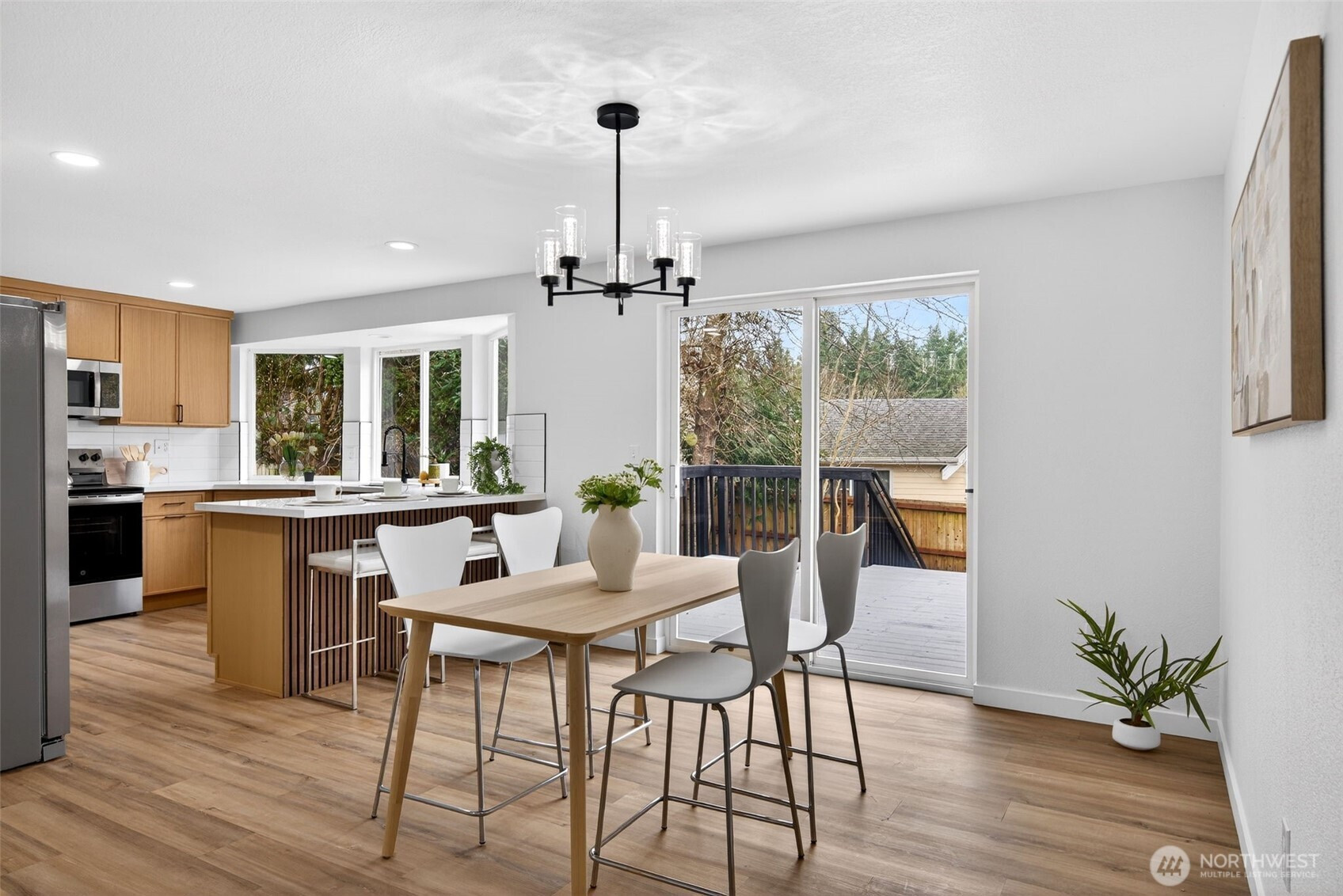 Fully remodeled home in the highly desirable Scott Lake community! Filled with natural sunlight, this bright and airy home features vaulted ceilings, bay windows, and an open-concept kitchen designed for easy living and entertaining. The cozy fireplace creates a welcoming focal point in the living room, perfect for relaxing evenings at home. Step outside to a spacious deck overlooking the backyard, ideal for gatherings, BBQs, or simply unwinding. The property also includes a storage shed and an unfinished basement offering abundant space for storage, hobbies or future possibilities. Enjoy being within walking distance to the golf course, lake amenities, community center and more. Bring your boat and your clubs and take full advantage of everything this vibrant neighborhood has to offer. Conveniently located near the freeway and shopping for an easy commute and everyday convenience.