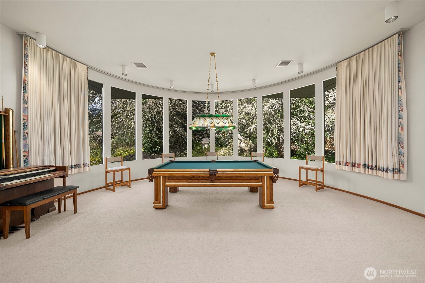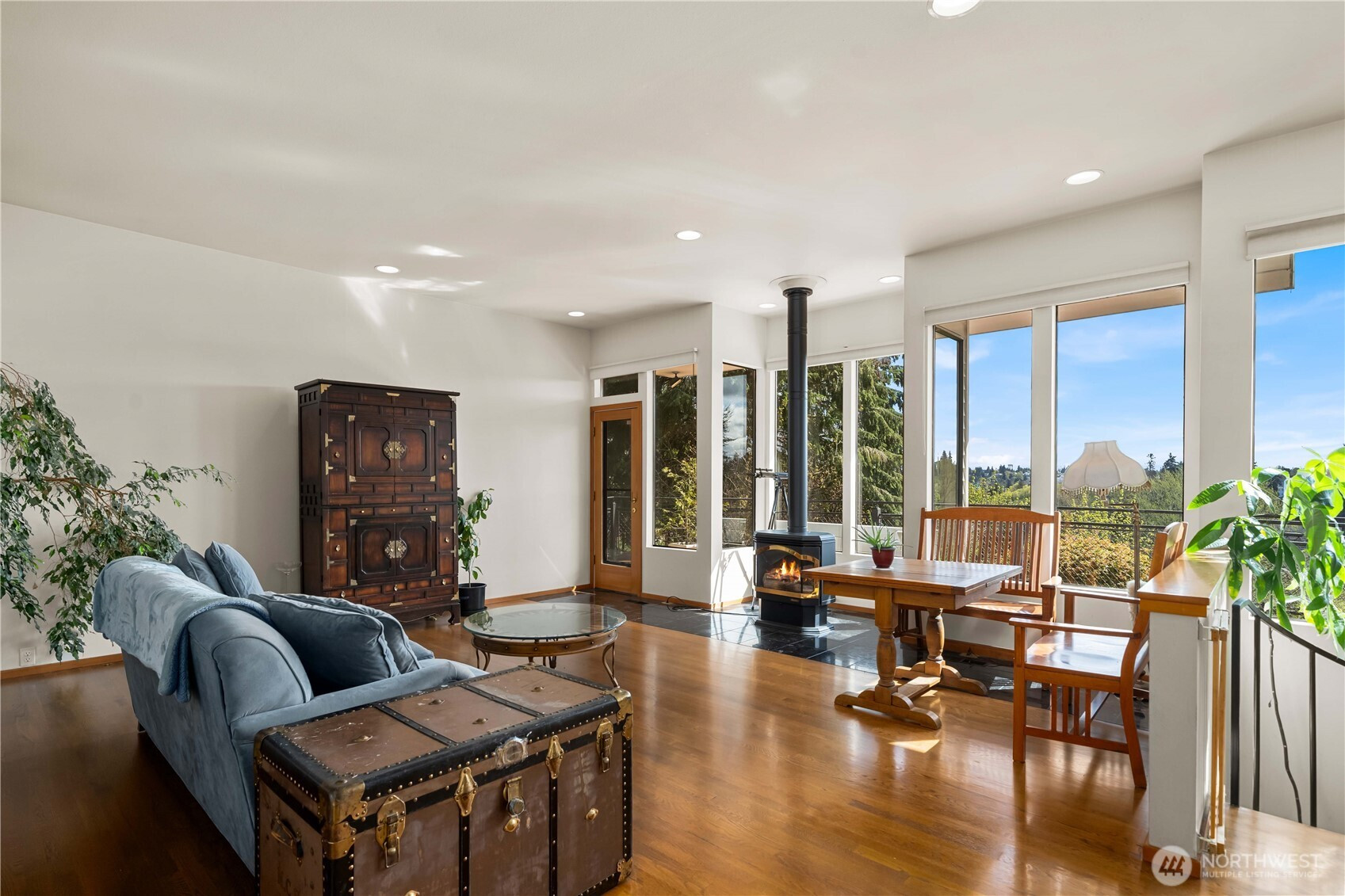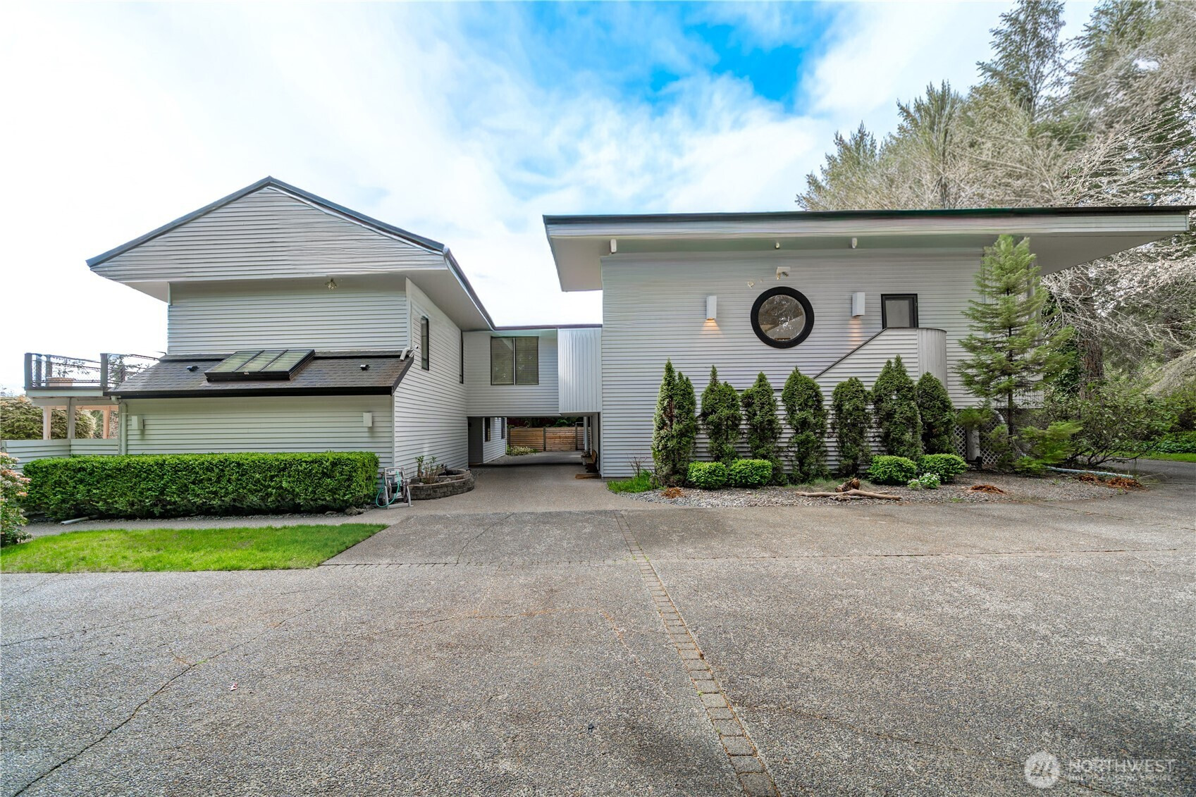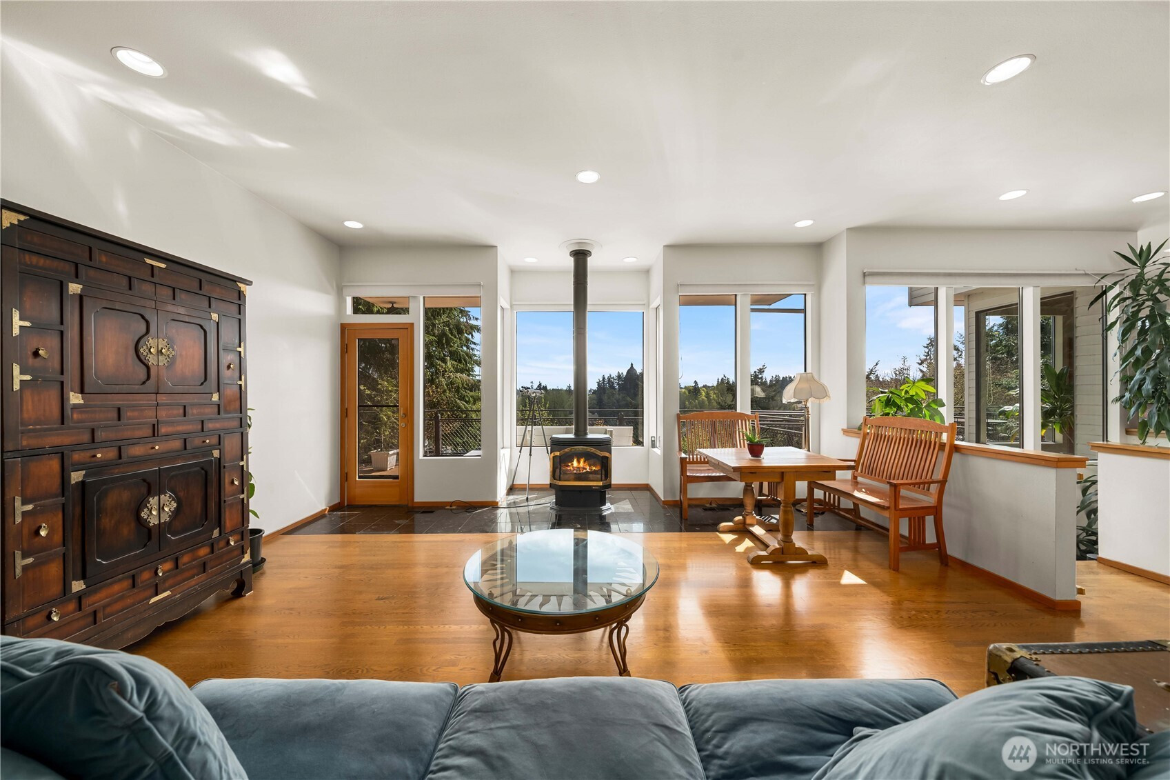 Set high above Capitol Lake with sweeping views that stretch to the Capitol, this West Olympia home offers a rare blend of unforgettable entertaining spaces and private retreat living. From the first impression to the last glass poured on the deck, every space is designed to bring people together—while still feeling tucked away, secluded, and intentionally private. Light-filled living areas feature soaring ceilings, rich hardwood floors, and walls of glass that frame the lake and skyline beyond. The architecture is bold yet timeless, with expansive spaces that feel dramatic without sacrificing warmth or comfort. A show-stopping entertainment room stands out with striking curved windows, space for a pool table, and a loft above—ideal for a cocktail lounge, media retreat, creative studio, or flexible space. Outdoor living extends the experience in a way that feels both social and serene. An expansive deck overlooks Capitol Lake and opens to a private, resort-style retreat with a pool & hot tub—perfect for large gatherings (60+ people), quiet mornings, or evenings spent under the stars. Mature, thoughtfully designed landscaping creates a sense of separation and escape while preserving the open, view. A separate ADU/apartment adds exceptional flexibility, whether for extended guests, multigenerational living, or generating income through a long-term rental or Airbnb. Iconic views, and a setting that balances connection and privacy make this a rare opportunity in West Olympia.