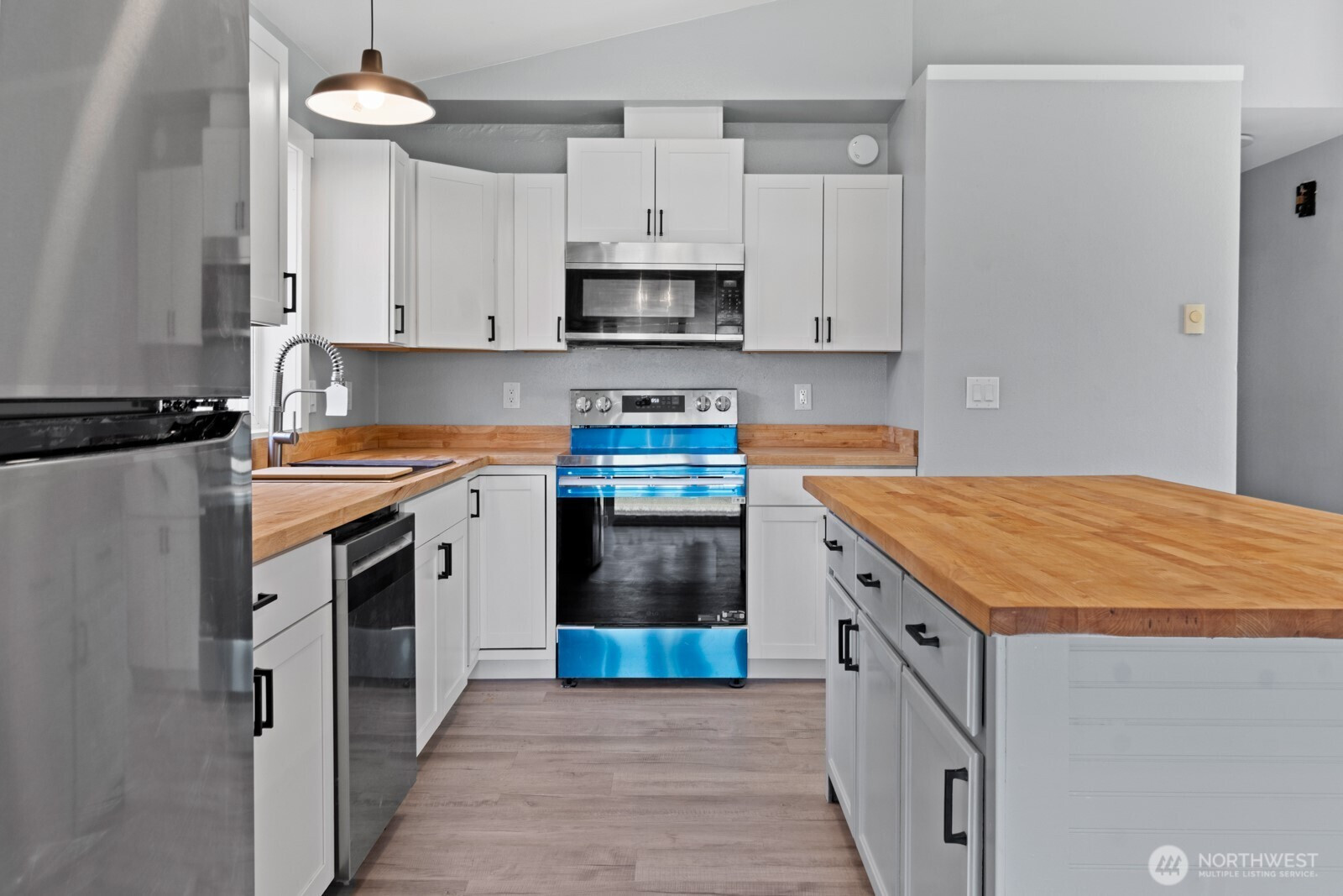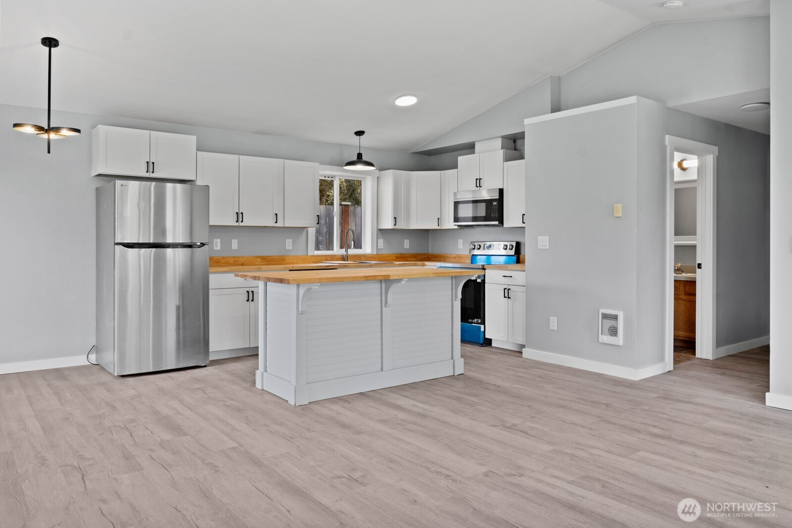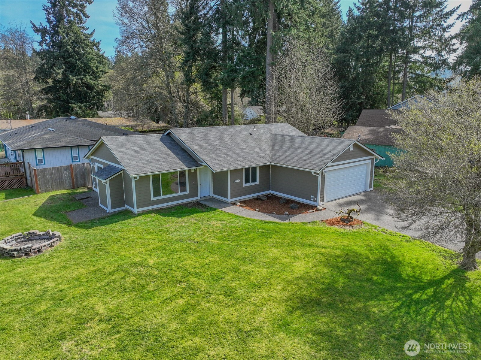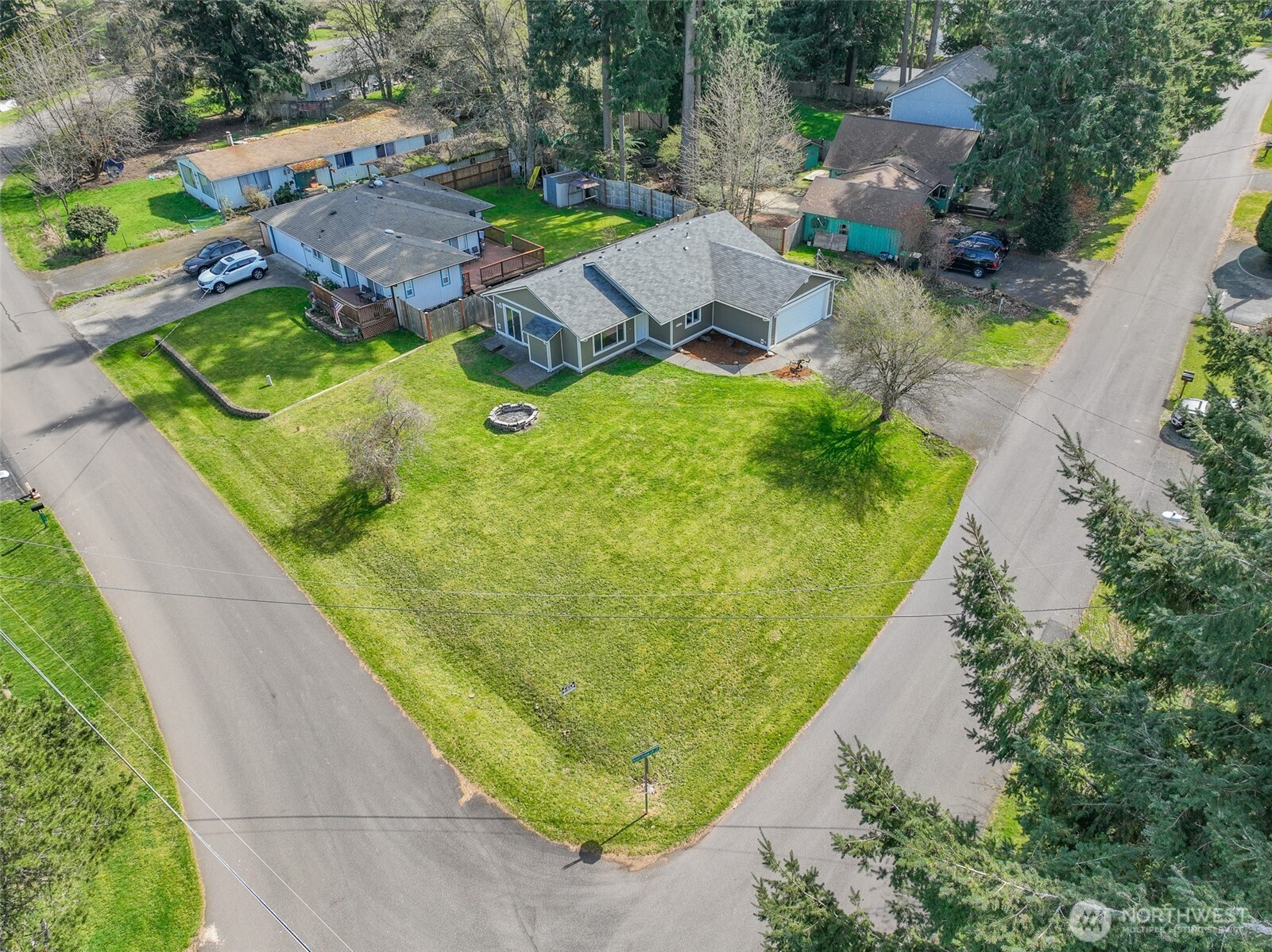 This beautifully updated rambler sits on a large corner lot with views of the lake. Located in the sought out Scott Lake Community, this home is close distance to both the golf course and lake. Seller left no stone unturned when it came to improving the interior and exterior of this home. Features open concept living with many updates that include: Interior- new kitchen (cabinets, countertops, all appliances and island). New LVP flooring and carpet in bedrooms. Fresh paint, new trim, doors and lighting. Exterior-New hardie siding, gutters and fascia boards. Roof only 4 years old! The Scott Lake Community features: golf course, club house, ball field, lake front park complete with play ground, athletic field, kayaking, fishing, swimming area and boat launch. Just minutes away from amenities such as Walmart, Fred Meyer and Costco. Located less than 10 min to I-5.