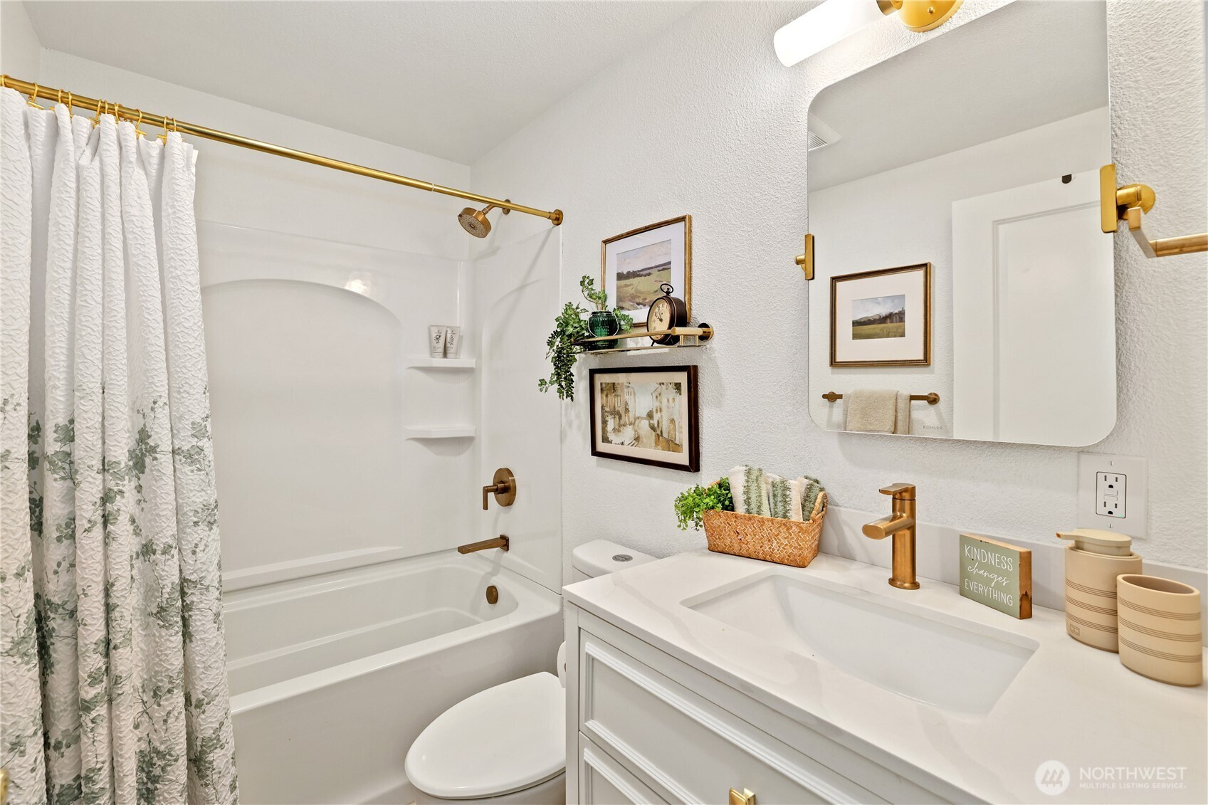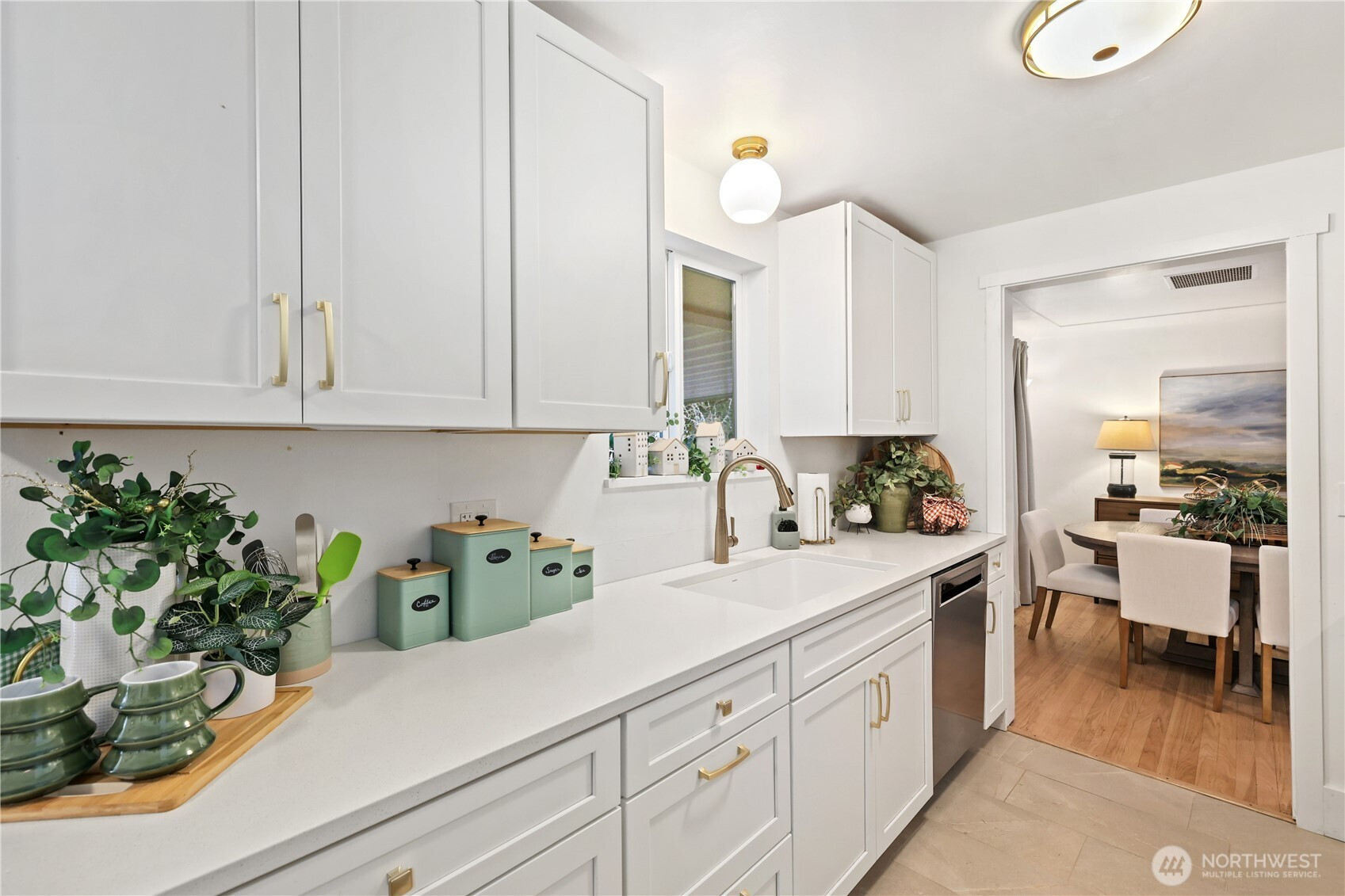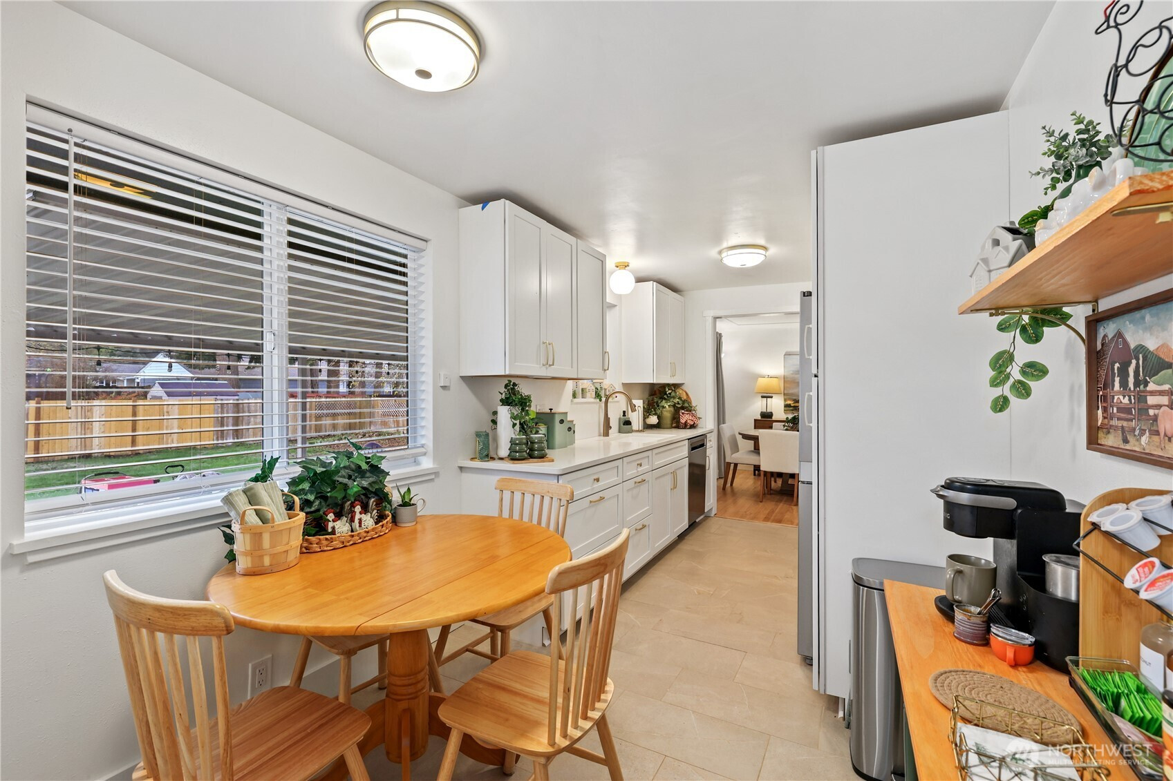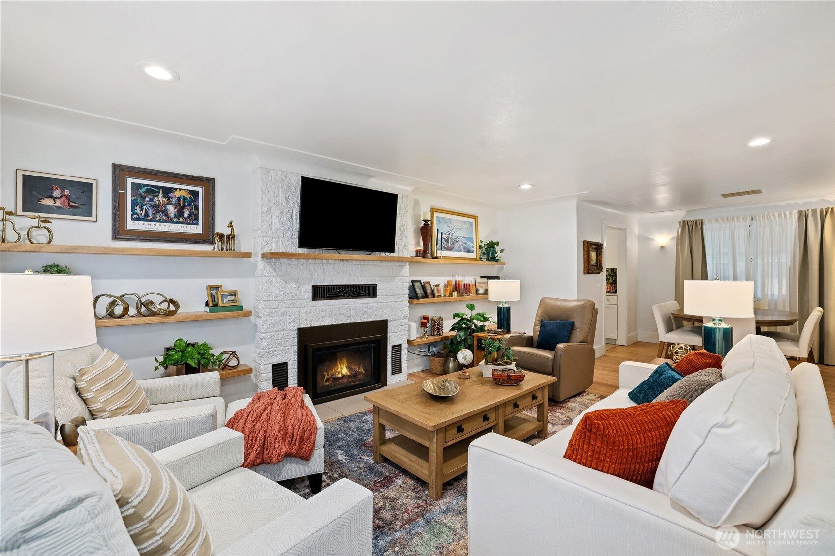 Don't miss this charming turnkey rambler with well over 100k in recent updates, sitting on almost a quarter acre fenced lot. Step into the welcoming living room featuring beautifully refinished hardwood floors, coved ceilings, and a new gas fireplace flanked by custom floating shelves. The dining room leads to a completely remodeled kitchen with breakfast nook. An updated laundry room provides access to the garage and the large fenced yard. Down the hall, you’ll find a remodeled full bath, 2 bedrooms, and a primary suite with remodeled 3/4 bath. Outside, the covered patio gives room to entertain or relax all year round, and a large fenced lot provides ample room to garden. New furnace 2025! Convenient location less than 5 minutes from shopping, restaurants, & the freeway, easy commute to JBLM. Don't forget to ask your agent about our BUYER INCENTIVE!