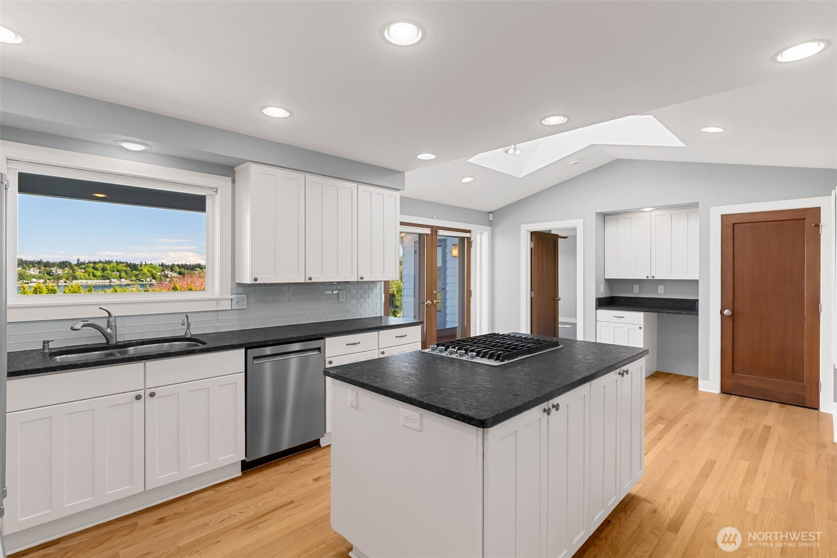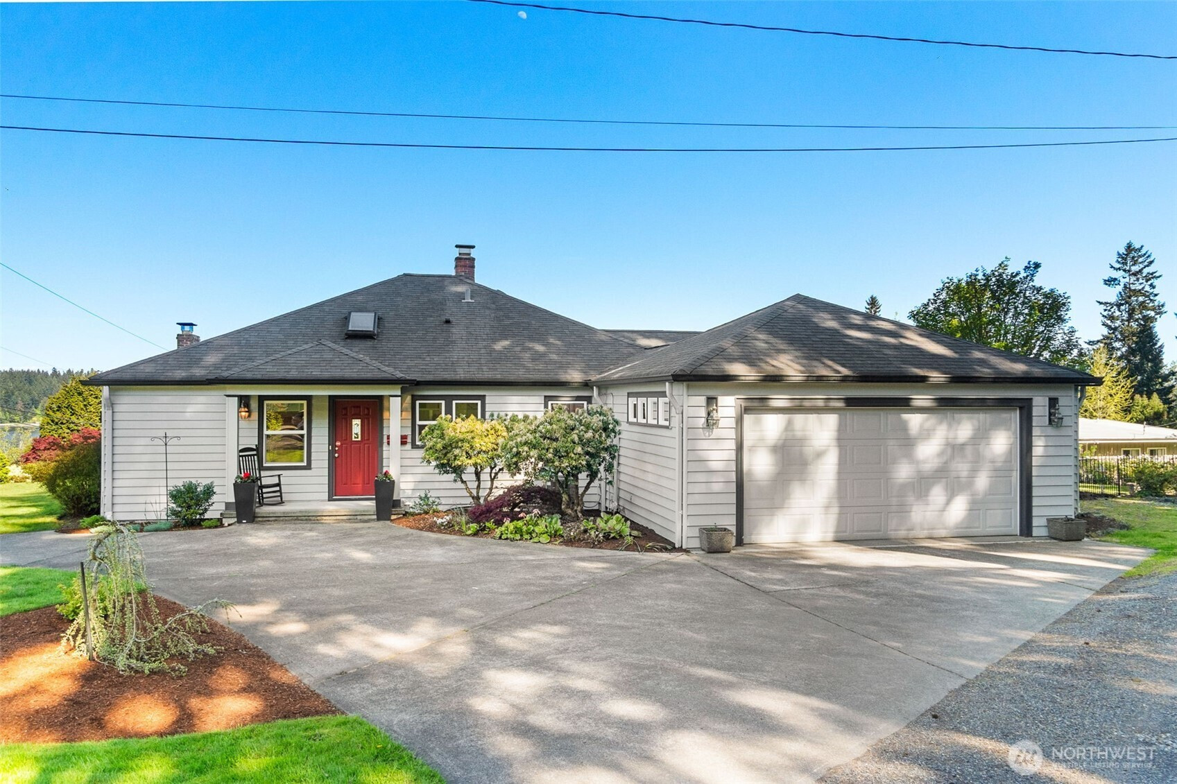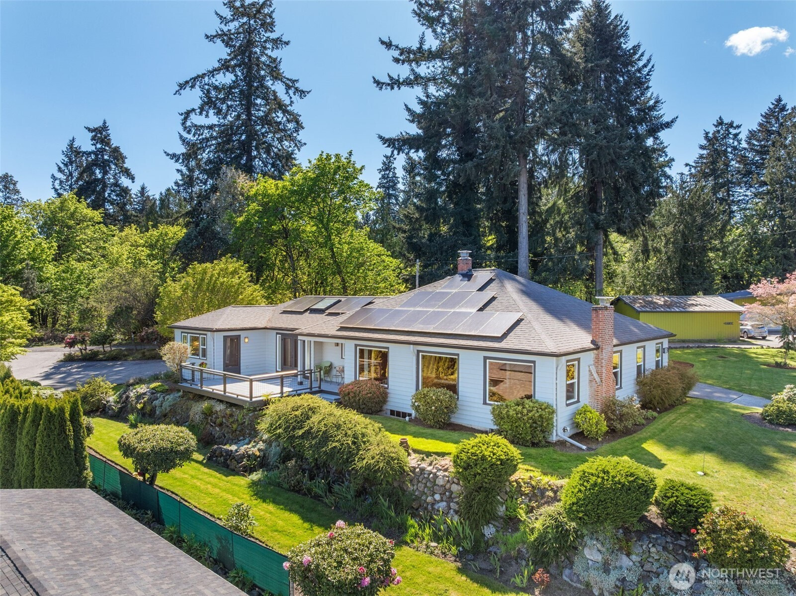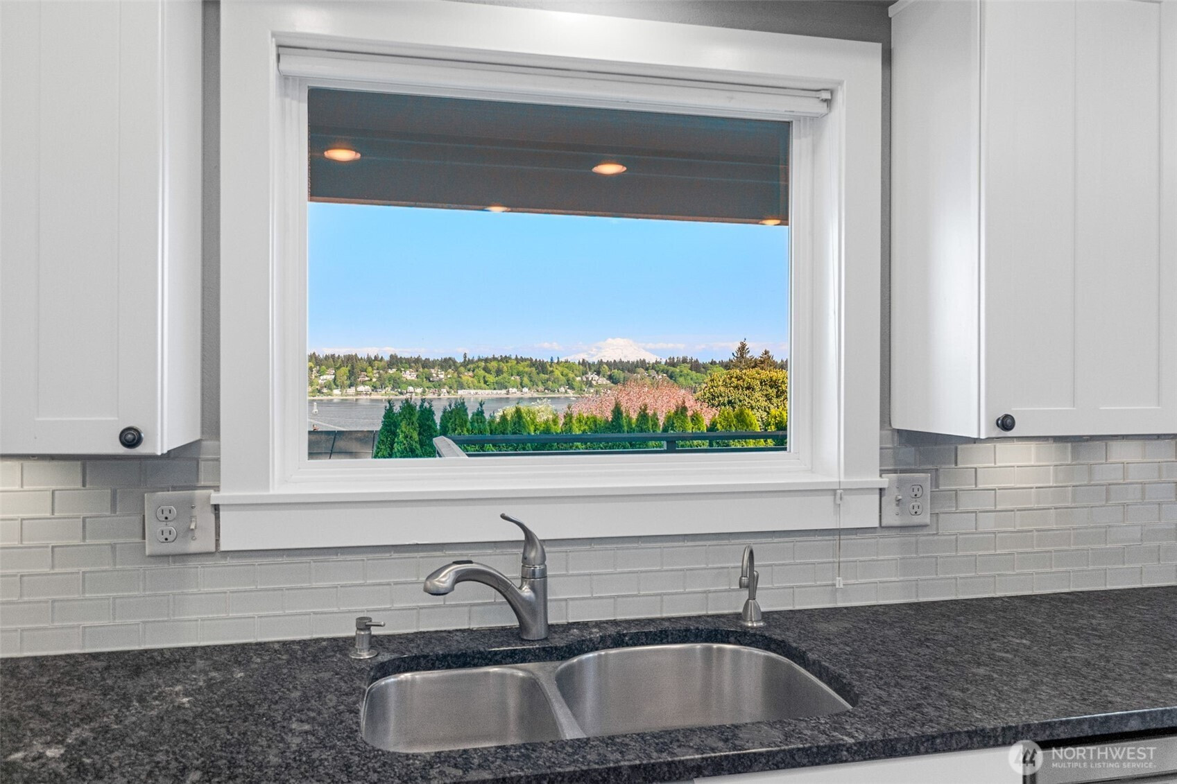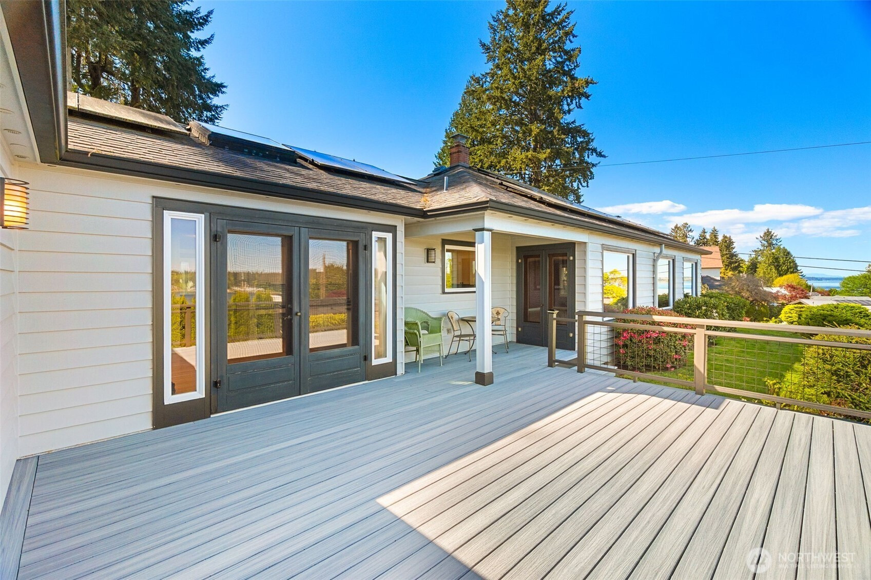 Experience the ultimate West Olympia lifestyle on nearly one-third of an acre with a full view of Mt. Rainier and Budd Inlet. This impeccably maintained home is designed for effortless one-level living. The living room and dining room feature large picture windows that perfectly frame the mountain and water. The primary suite and timelessly remodeled kitchen are also strategically positioned to capture these stunning vistas. For seamless indoor and outdoor living, the kitchen includes French doors that lead to a large deck that is great for entertaining. The main level features original hardwood floors in excellent condition, providing a warm and sophisticated atmosphere throughout.Beyond the views, this property is engineered for modern efficiency. High-value upgrades include an installed solar panel system for sustainable energy and a garage already wired for a generator. The exterior is designed for convenience, featuring a circular driveway and a beautifully terraced yard kept lush by a full sprinkler system. For those seeking extra space, the partially finished basement provides significant potential for equity growth. This versatile area is suited for a home gym, media room, or guest quarters. Located just minutes from downtown marinas, restaurants, and shopping, this residence combines Pacific Northwest beauty with robust infrastructure. Experience a rare opportunity for main-floor living with a view that must be seen in person.