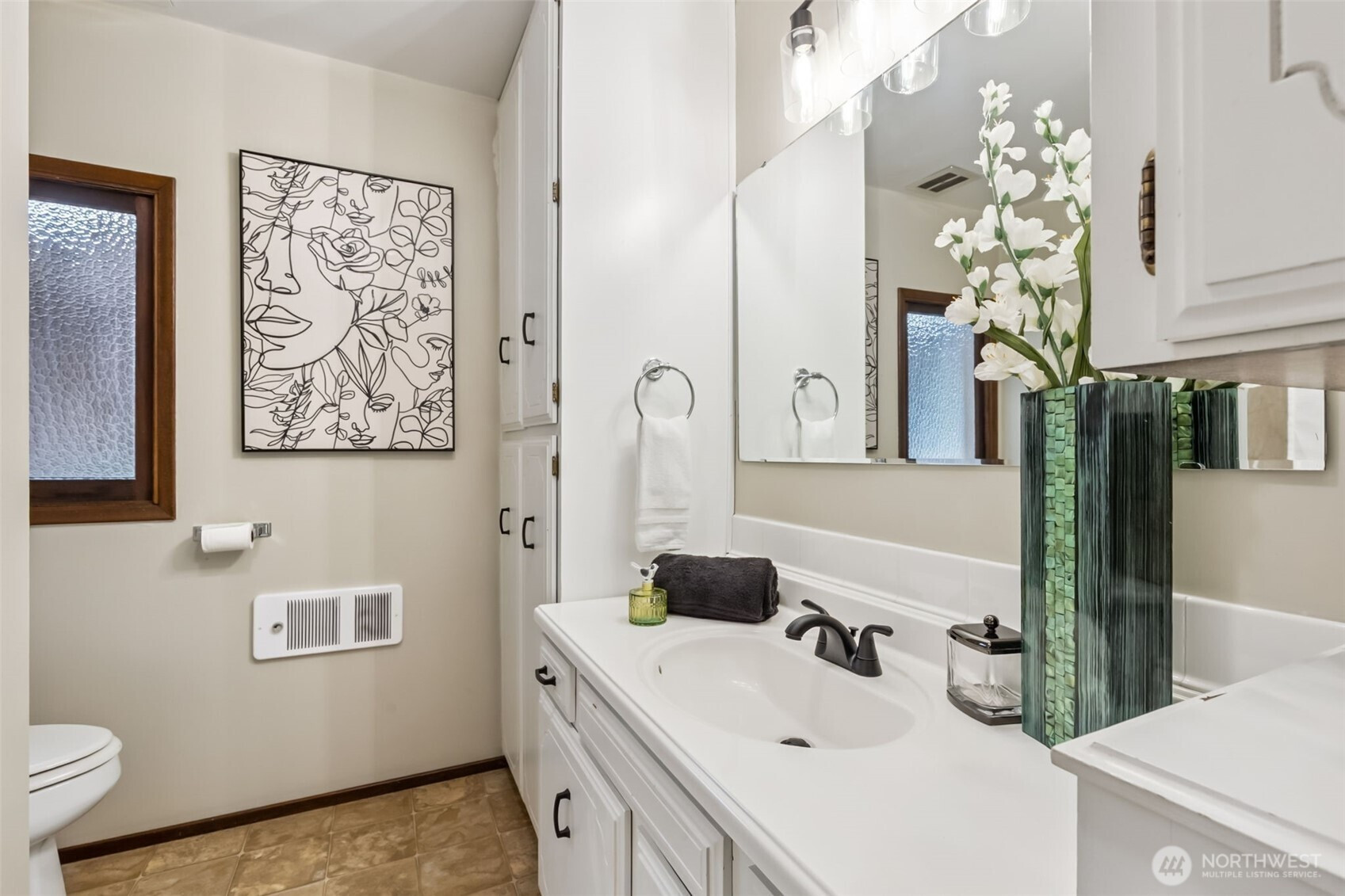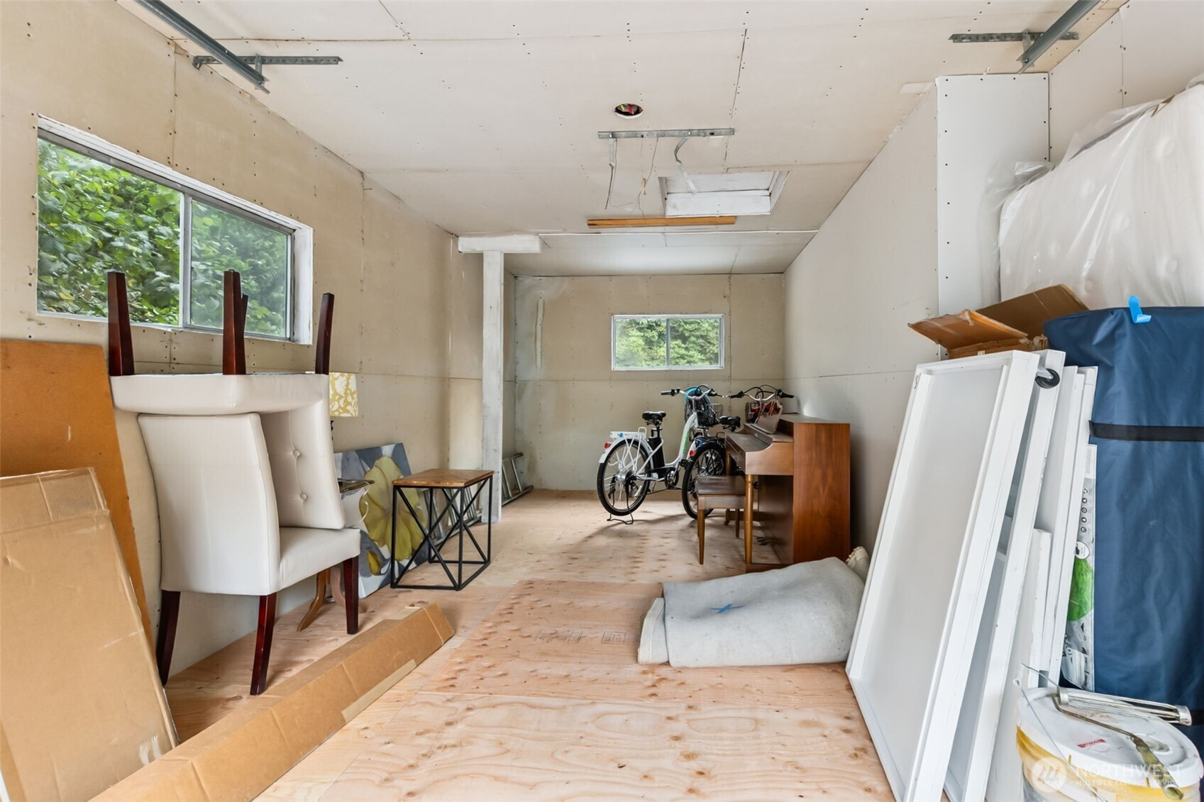 Peek-a-Boo View of Budd Inlet in this fun, funky Eastside "duplex" on a big corner lot, that is a must see! Main level is a 2 bed/1 bath, large kitchen, tons of storage, W/D, 2 garages, new, clear covered deck. Lower level is a large studio w/huge 660 SF garage. Main level enters at Pear St.; Lower Level unit enters at San Francisco St. New exterior paint. Both kitchens have new "facelifts" with painted cupboards, new hardware and counters. New stainless appliances on main floor, new light fixtures, updated LVP flooring, some radiant heat, some updated windows. Total of appx 1100 SF of garage/storage space. This has been a travel nurse rental for several years, renting for a total of $3700 a month. Seller is licensed broker in WA St.