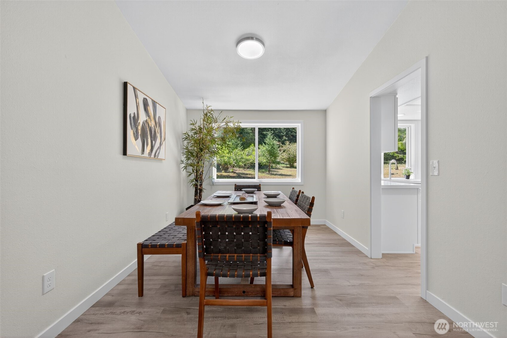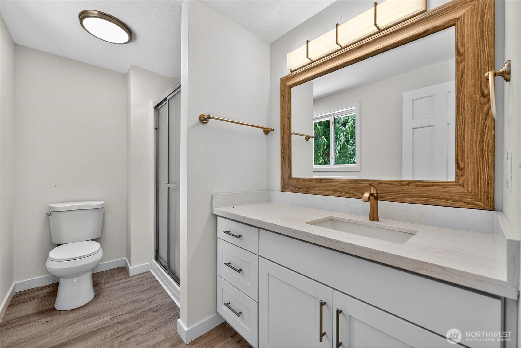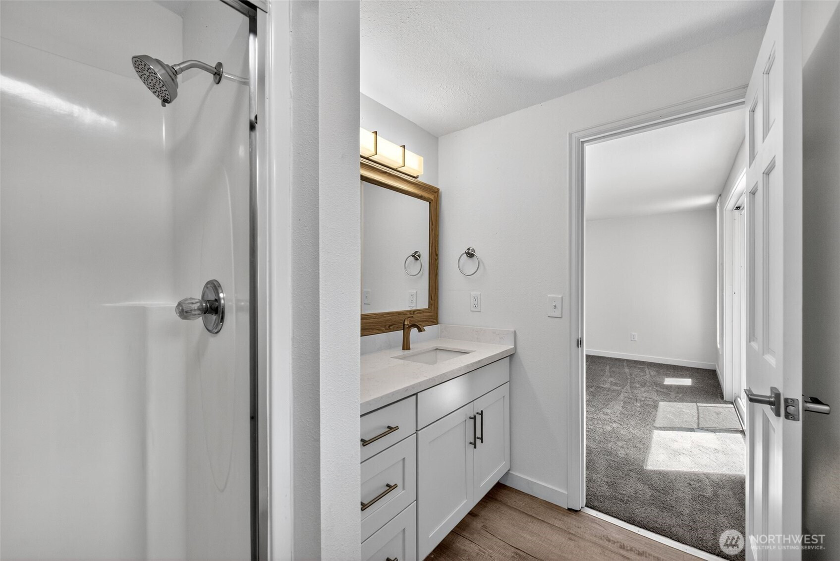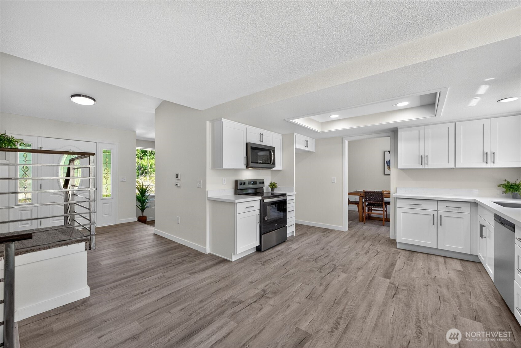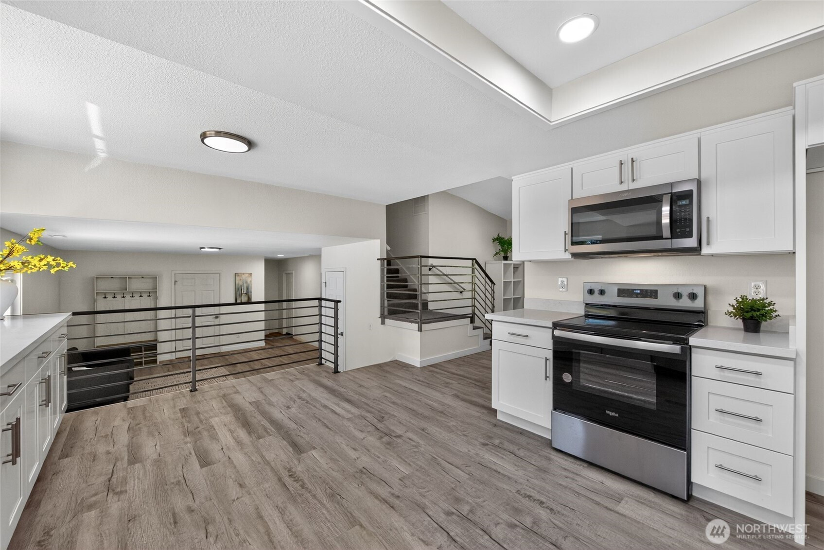 Yelm – 5.78 Acres – Discover this freshly, updated home, offering both privacy and modern comfort. Inside, you’ll find freshly painted interior, new vinyl plank flooring & plush carpet throughout. The living room features a cozy wood burning fireplace as its centerpiece, perfect for gathering. The kitchen and bathrooms have been upgraded with stunning quartz countertops, new hardware on cabinets & stainless steel appliances in the kitchen. Light fixtures and railings have been tastefully updated, adding a modern touch to the space. Enjoy outdoor living on the newer deck, overlooking the expansive property. Move-in ready and perfectly situated, this property blends rural charm with fresh, stylish upgrades.
