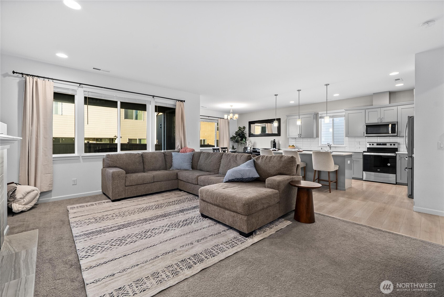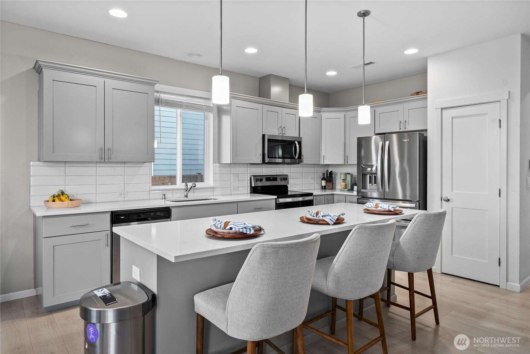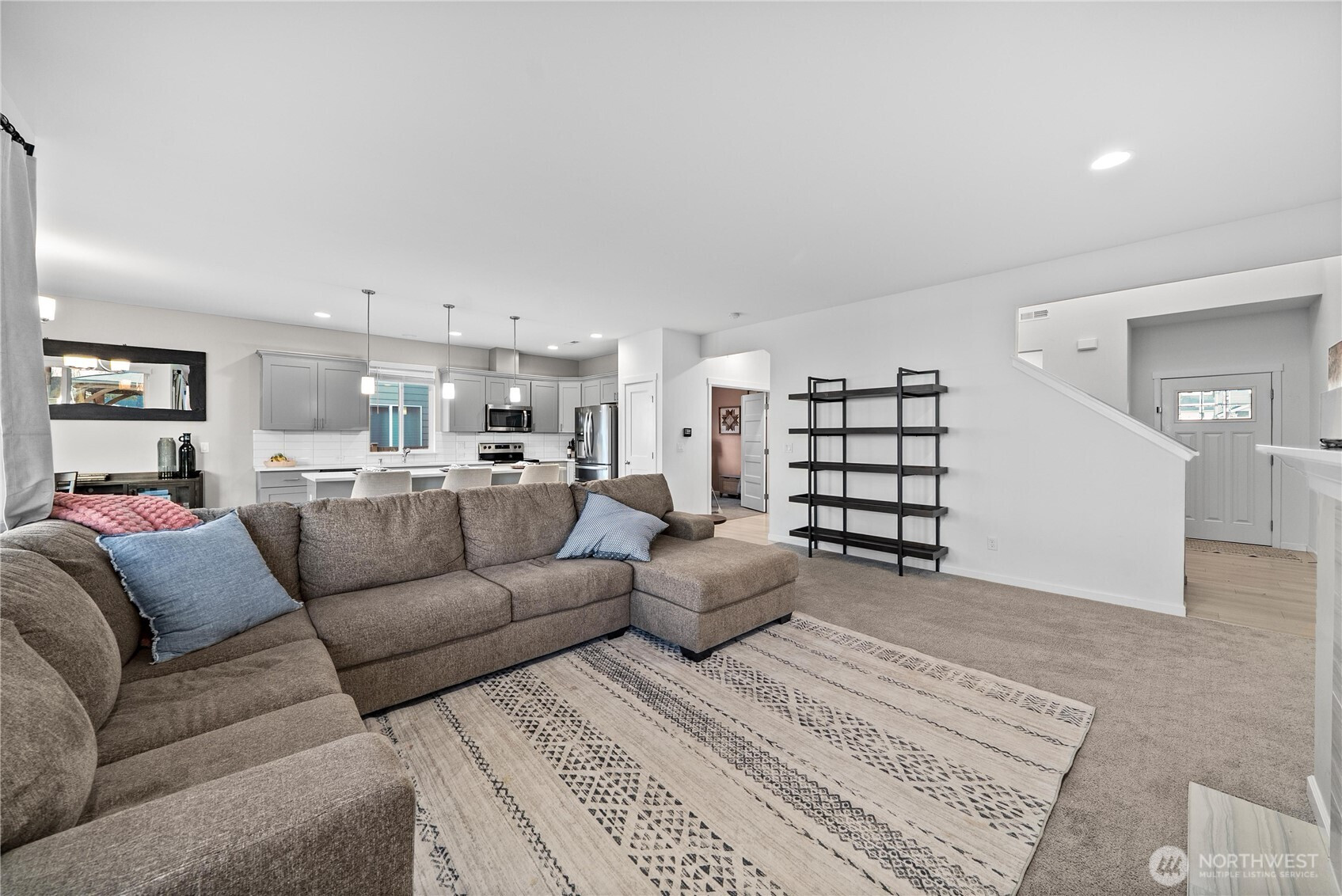 Don't miss this sprawling, like-new 3-story home offering 2,737 sq ft of living space, featuring a rare 3-car garage in Yelm’s newest premium neighborhood and it happens to be Soundbuilt's BEST floor plan they are no longer building! This massive 4-bedroom home offers an open-concept main level with a seamless living and dining area, highlighted by quartz countertops, LVP flooring, and stainless steel appliances. Upstairs, you’ll find generously sized bedrooms and living space, while the third floor boasts an expansive bonus room with a full bathroom—perfect as a second primary suite, guest retreat, or media space. Enjoy year-round outdoor living with a covered back patio-plus a fully fenced backyard. Stay comfortable all year with an efficient heat pump and central A/C. Modern finishes, flexible living spaces, and thoughtful design throughout make this home stand out from the rest. Short sale subject to lender approval. List price not yet approved by lender and may not reflect payoff amount. Allow time for third-party approval. Property sold as-is.