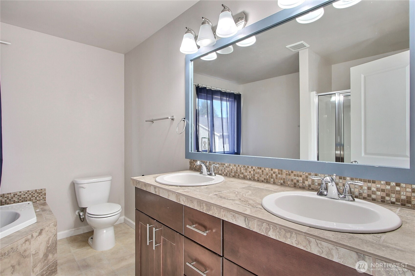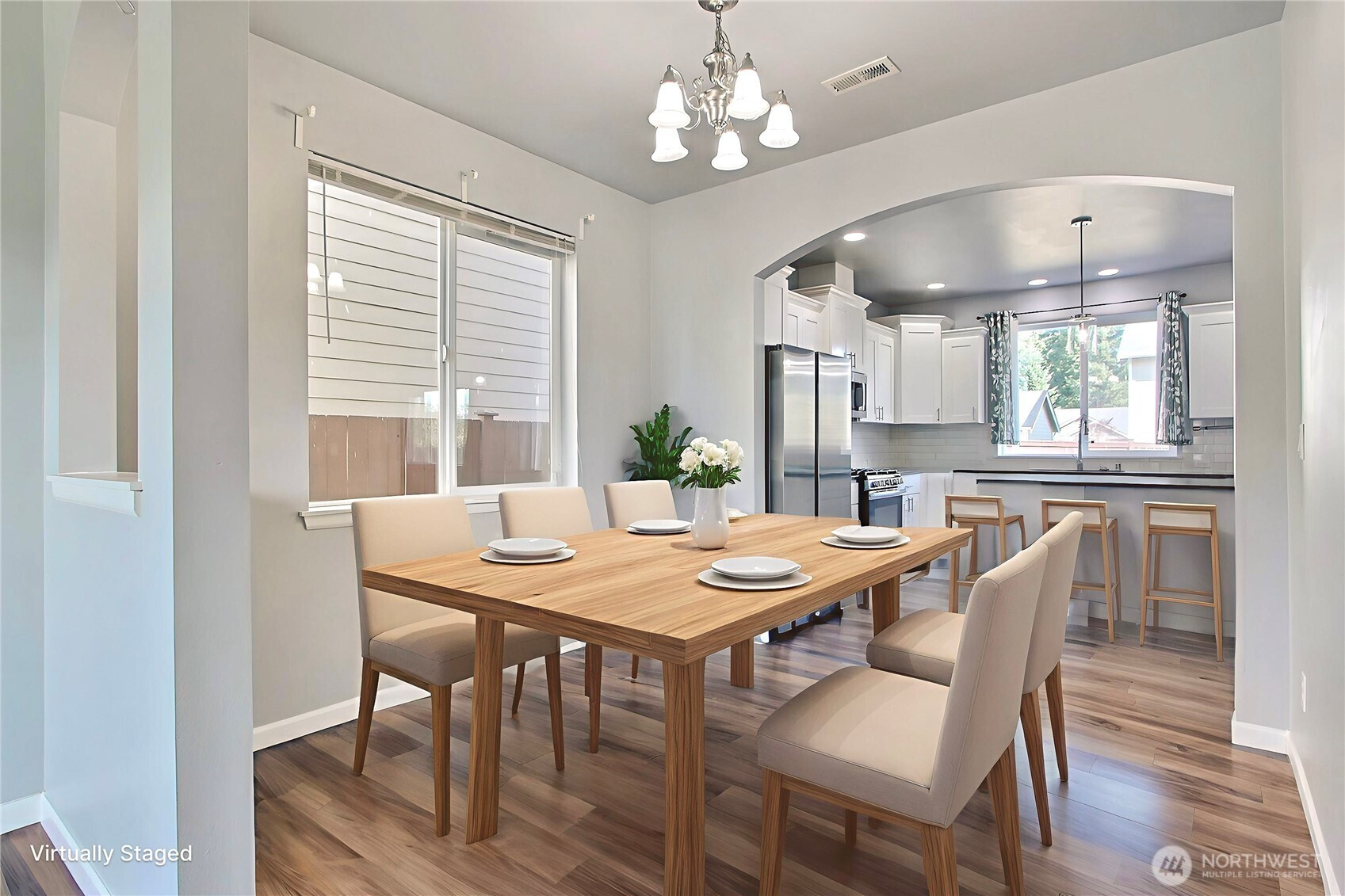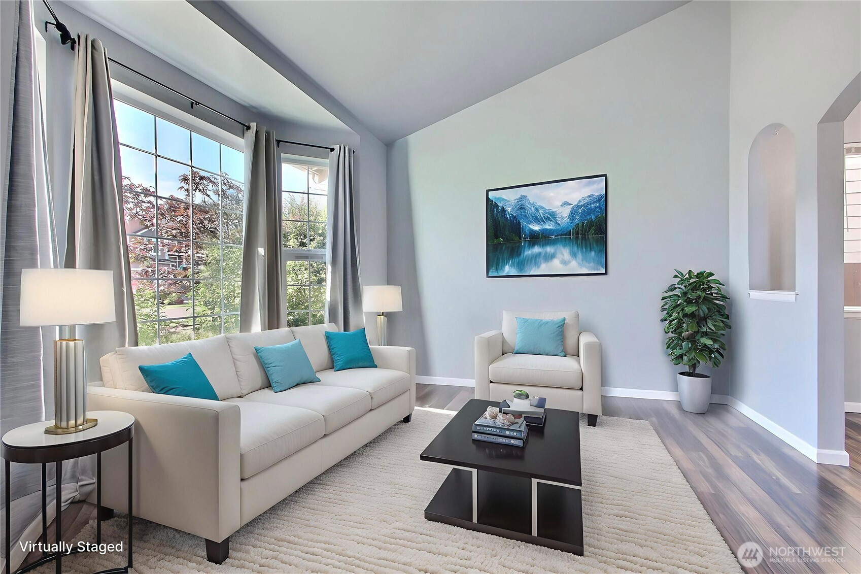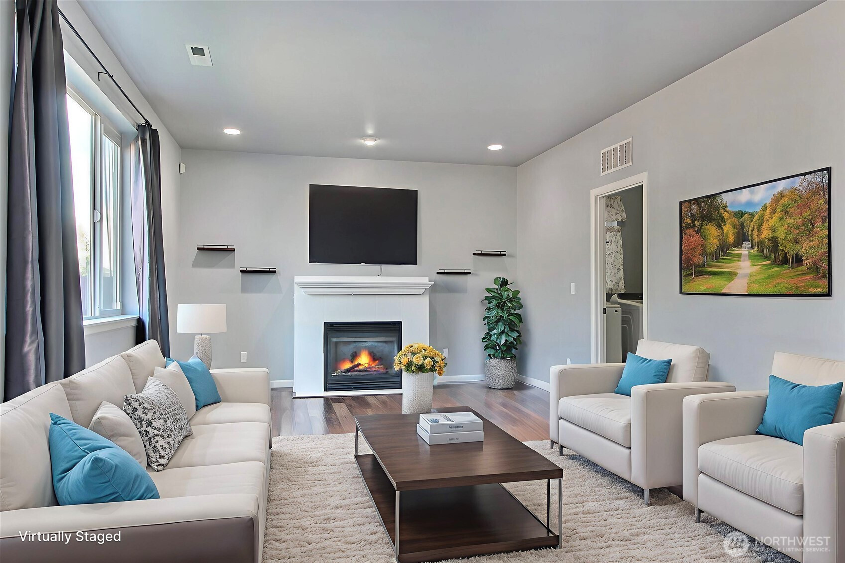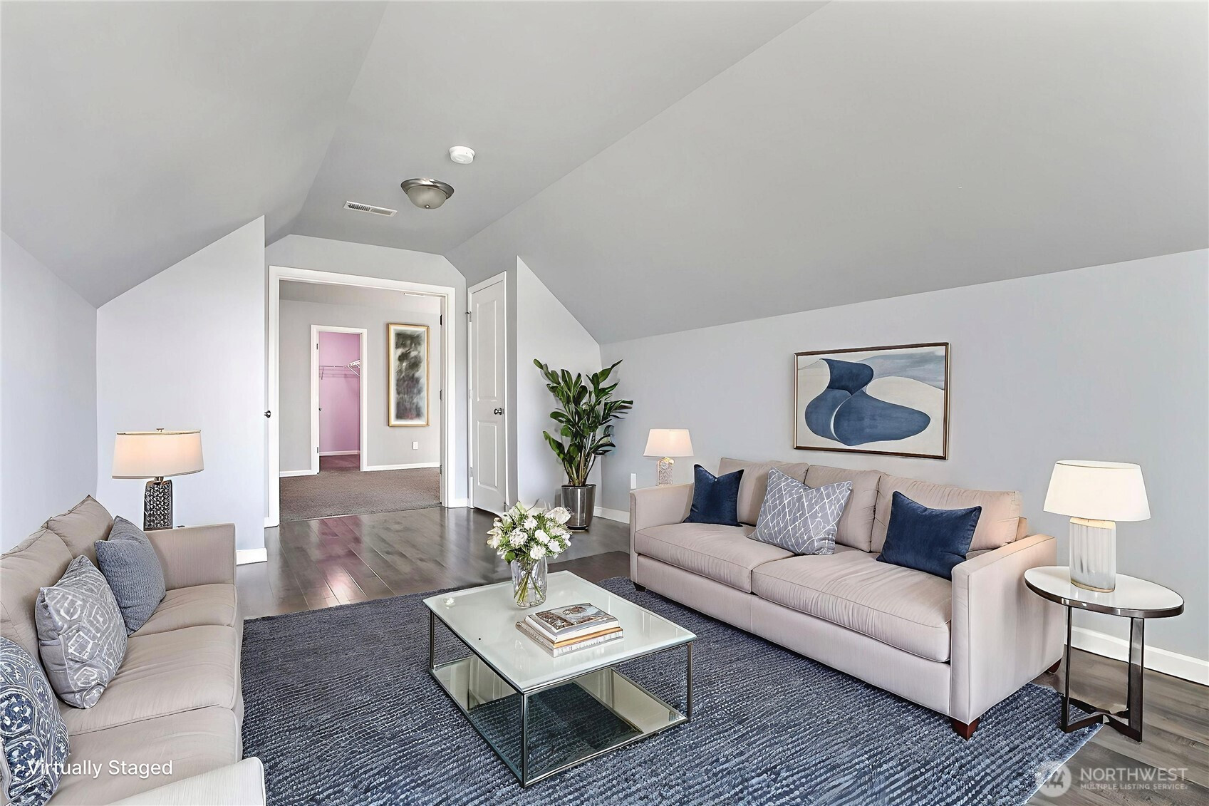 Welcome to this beautiful 4-bed, 2.5 bath home in the desirable Tahoma Terra community! Open-concept layout with main great room plus additional living room, formal dining, vaulted ceilings and gas fireplace. The chef's kitchen features a large island, granite counters, gas range, white cabinetry, subway tile backsplash and walk in pantry. Upstairs, the spacious primary suite offers a 5-piece bath plus a private bonus room - perfect for a home office, gym, nursery, etc. Fully fenced yard, A/C for hot summer days and conveniently located near parks, schools, shopping and a quick drive to JBLM! VA Assumable option!
