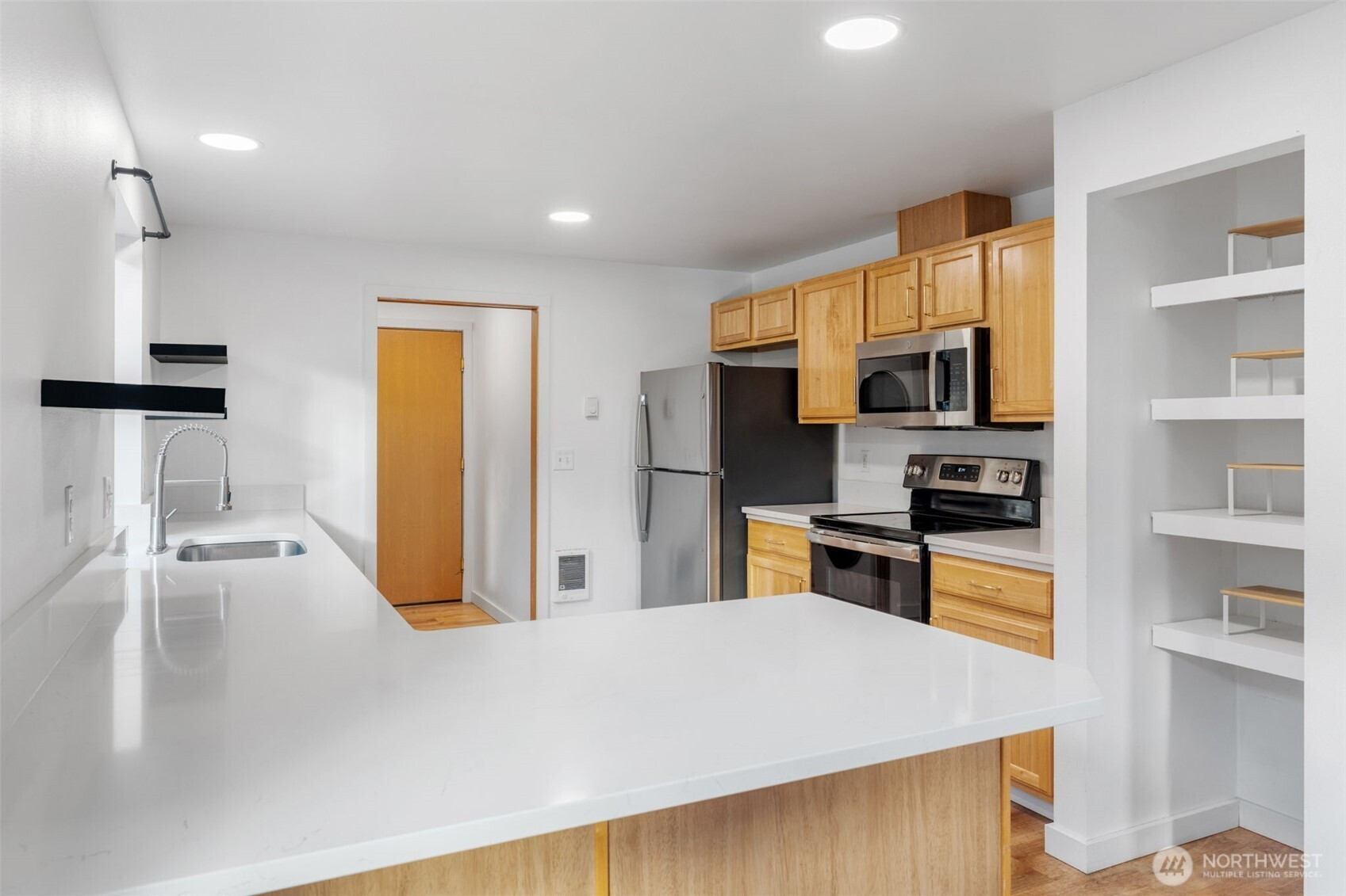 Charming move-in ready 2-bed, 2-bath rambler, in the sought after Tahoma Terra neighborhood of Yelm. Featuring newly installed quartz countertops and durable LifeLock flooring throughout, offering modern style and easy maintenance. The primary suite features a walk-in closet and private ensuite bath. Enjoy a cozy family room off the kitchen, ample storage, and an oversized one-car garage with additional storage space. Community park with open green space and recreational amenities just steps from the front door. All appliances included- a true turn-key opportunity.