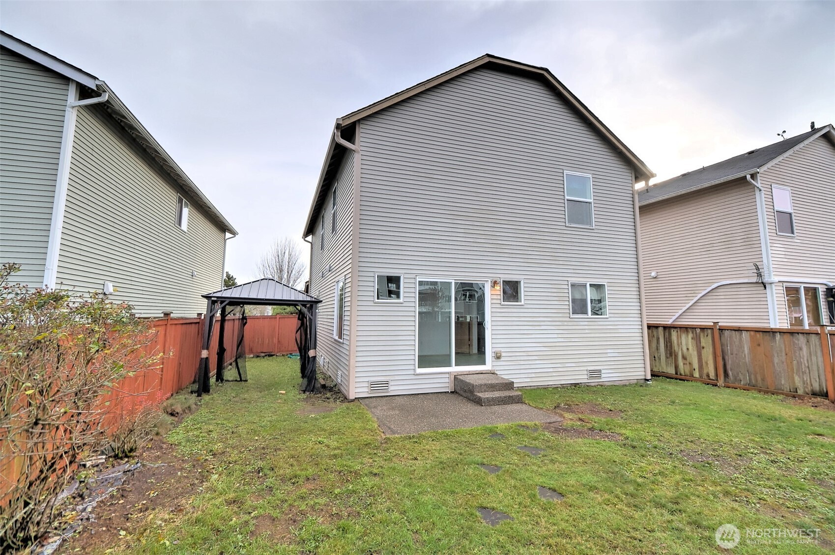 Turn the key & love it. Located in Yelm's Tahoma Terra neighborhood, this comfortable 3-bedroom, 1.5-bath home has over 1700 sqft of living space & is totally move-in ready. Freshened up with brand-new interior paint & flooring, so you can settle in without adding anything to your to-do list. The kitchen is roomy & all appliances stay, plus there’s a handy utility room for more convenience & storage. All of the bedrooms are upstairs with tons of storage & walk-in closets. Fully fenced yard with patio. Easy to maintain landscaping with space for a garden, even a community park across the street. 1 car garage too! The location is hard to beat, just half a mile from the high school, medical care, & restaurants. Easy commute to JBLM & Olympia!