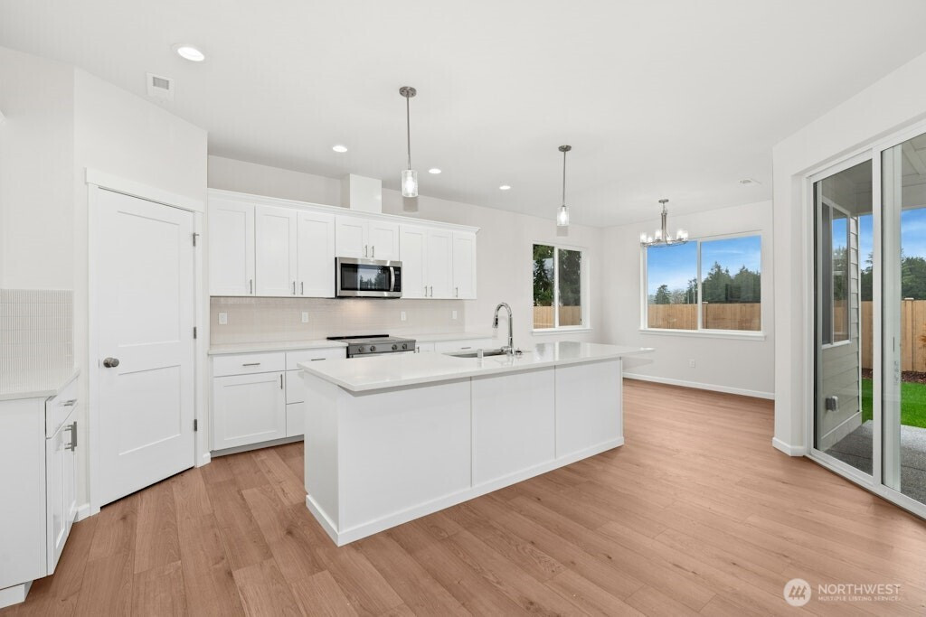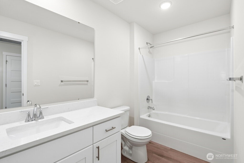 $18K Buyer Bonus! Use toward a rate buy-down or closing costs! The Blossom at Mountain Meadows is newly completed, move-in ready and built for today’s living. The great room features a cozy gas fireplace with built-in cabinets, opening to a bright kitchen with white shaker cabinets, quartz counters, subway tile, and stainless appliances. Main-level guest suite with ¾ bath. Upstairs: spacious primary with soaking tub, walk-in shower, dual sinks, and walk-in closet, plus 3 more bedrooms, full bath, and utility. Enjoy a landscaped backyard with covered patio, heat pump for year-round comfort, and a 3-car garage. Mountain Meadows Community offers park with playground, open space and easy access for commuters, just minutes to Hwy 512 & JBLM!