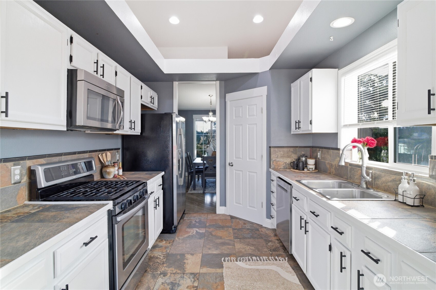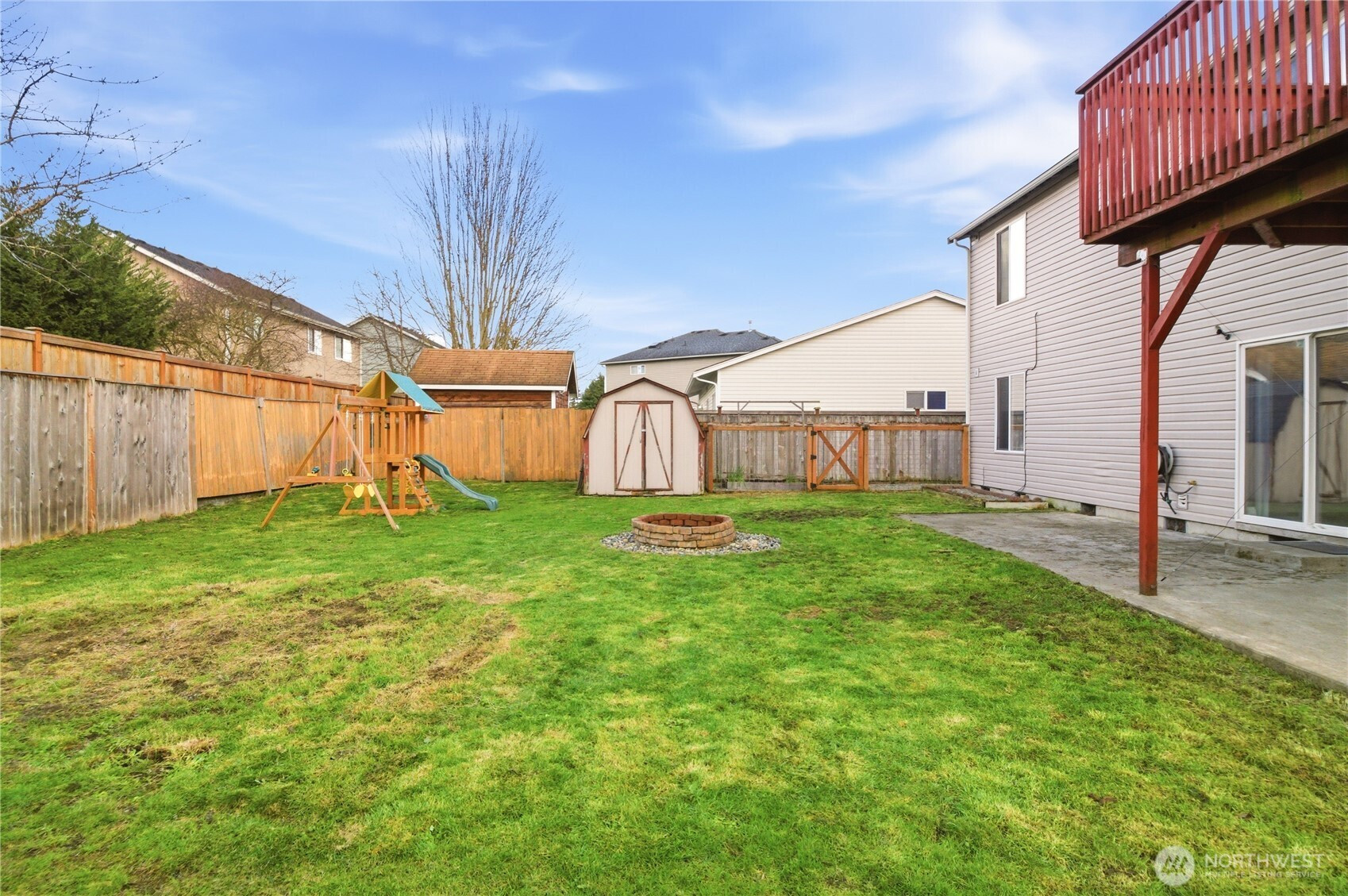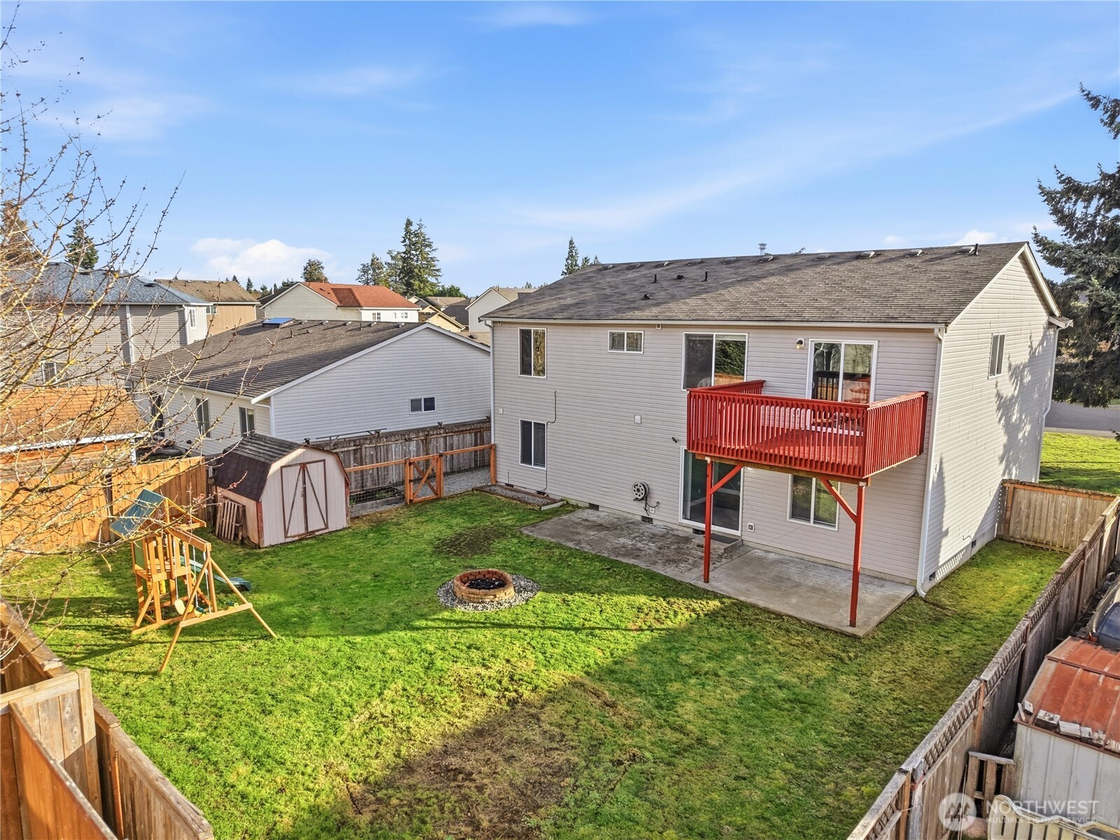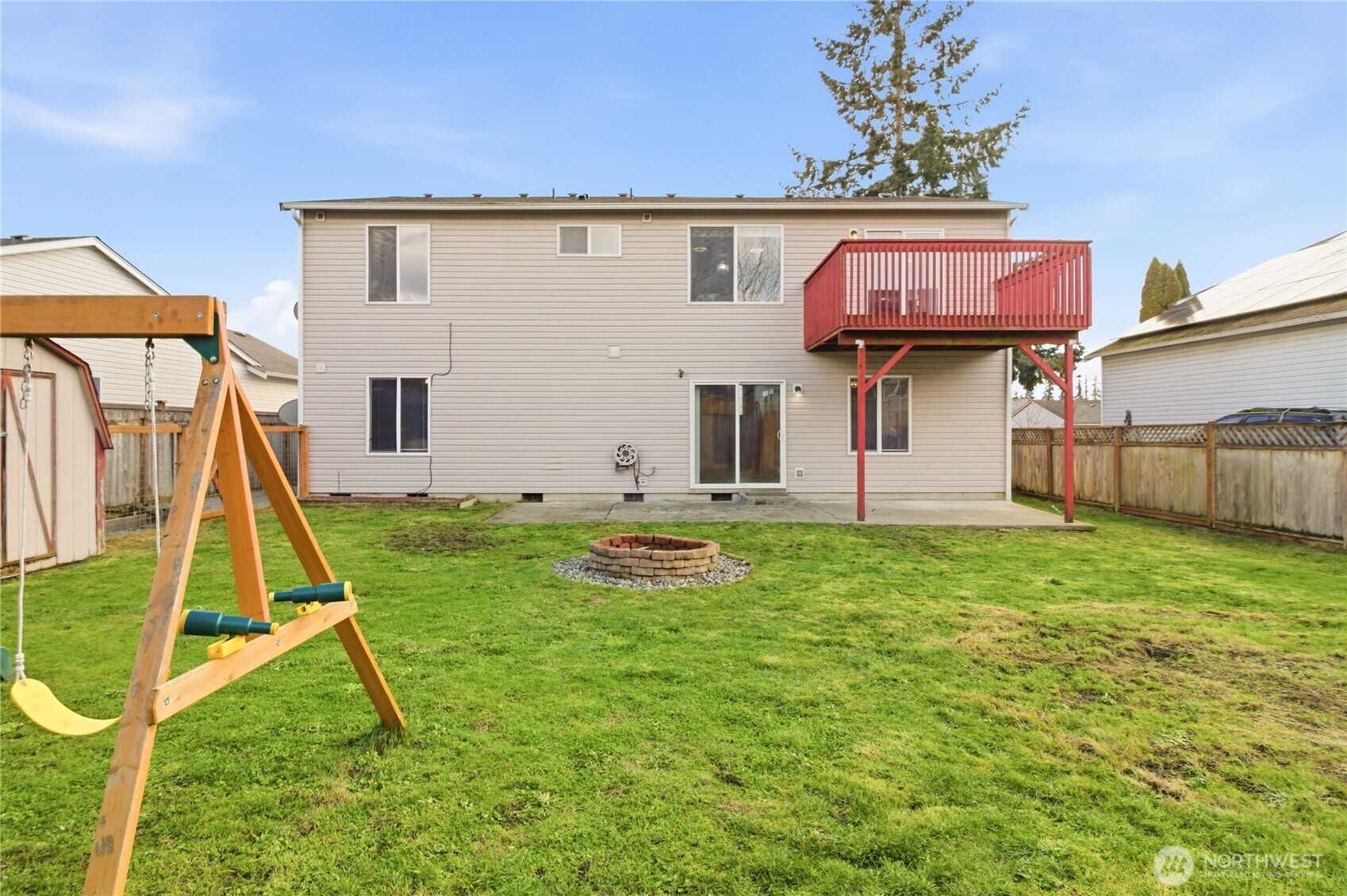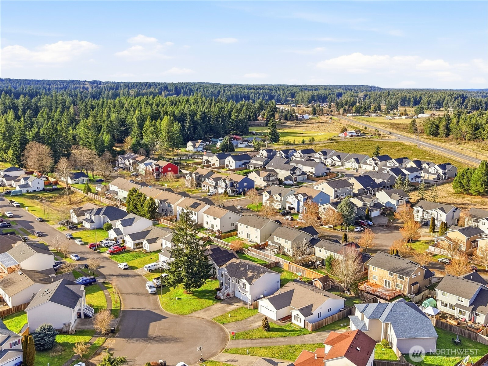 Five bedrooms, no HOA, and best of all- no I-5 commute to JBLM! Welcome to your spacious 2,600 sqft home, situated on a large cul-de-sac lot in prime location Yelm, offering a rare combination of size, flexibility, and freedom. A wide entry and open staircase lead into a bright living room with charming accent pillars, vaulted ceilings and elegant light fixtures, creating a welcoming first impression. The functional layout features two separate dining areas, an updated kitchen with stainless appliances, gas range, refreshed cabinetry, and a walk-in pantry. Ideal for everyday living and entertaining. Upstairs bathrooms have been updated with crisp white vanities and updated fixtures, including a fully-refreshed primary bath with modern dual-sink vanity. Fresh interior paint and modern lvp flooring throughout add a move-in-ready feel. The lower level offers a large open family room, two additional bedrooms, and another updated full bath- providing excellent separation for guests, home offices, or multi-generational living. Downstairs laundry room, with included newer washer and dryer, and garage has extensive storage shelving. Outside, enjoy a large fully fenced backyard with patio, play structure, dog run, fire pit and storage shed- plenty of room to relax, play, or garden. Located minutes from all Yelm amenities and schools, this home offers a lifestyle with more freedom and space, at an undeniable value. Don't miss it!