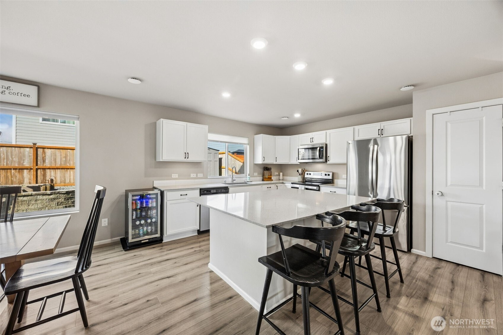 Welcome to this gorgeous, move-in ready home in Mountain View Meadow neighborhood built in 2022. Conveniently located near one of two community parks, this single-owner home boasts the largest floor plan available in the community at a spacious 2,498 sq/ft, with 4 bedrooms, 2.25 baths, main floor den, mudroom and powder room off the two-car garage entry. Expansive laminate floors on main, quartz slab kitchen counter tops and oversized island with plenty of room for extra seating; lots of room for cooking and entertaining with the additional dining space off the kitchen. Just outside the dining area is a covered patio that overlooks a meticulously cared for, fenced-in backyard. Full and professionally completed landscaping upgrades to the front and back yards with an extended patio, a retaining wall, raised garden beds, and firepit with low maintenance landscaping so you can spend more time enjoying your outside spaces rather than working in them. The upstairs includes the primary suite with large 10x10 WIC, linen closet, & dual vanity. The laundry room includes a utility sink and cabinets. Full guest bath, beds 2, 3, 4, additional linen closet, and a generous bonus room/loft with views of Mt. Rainer complete the upstairs. Central AC + ceiling fans throughout the upstairs add comfort and extra air circulation throughout all seasons. Custom blinds throughout the home, including blackout in the loft and bedrooms provide additional privacy. Convenient to downtown Yelm & JBLM.