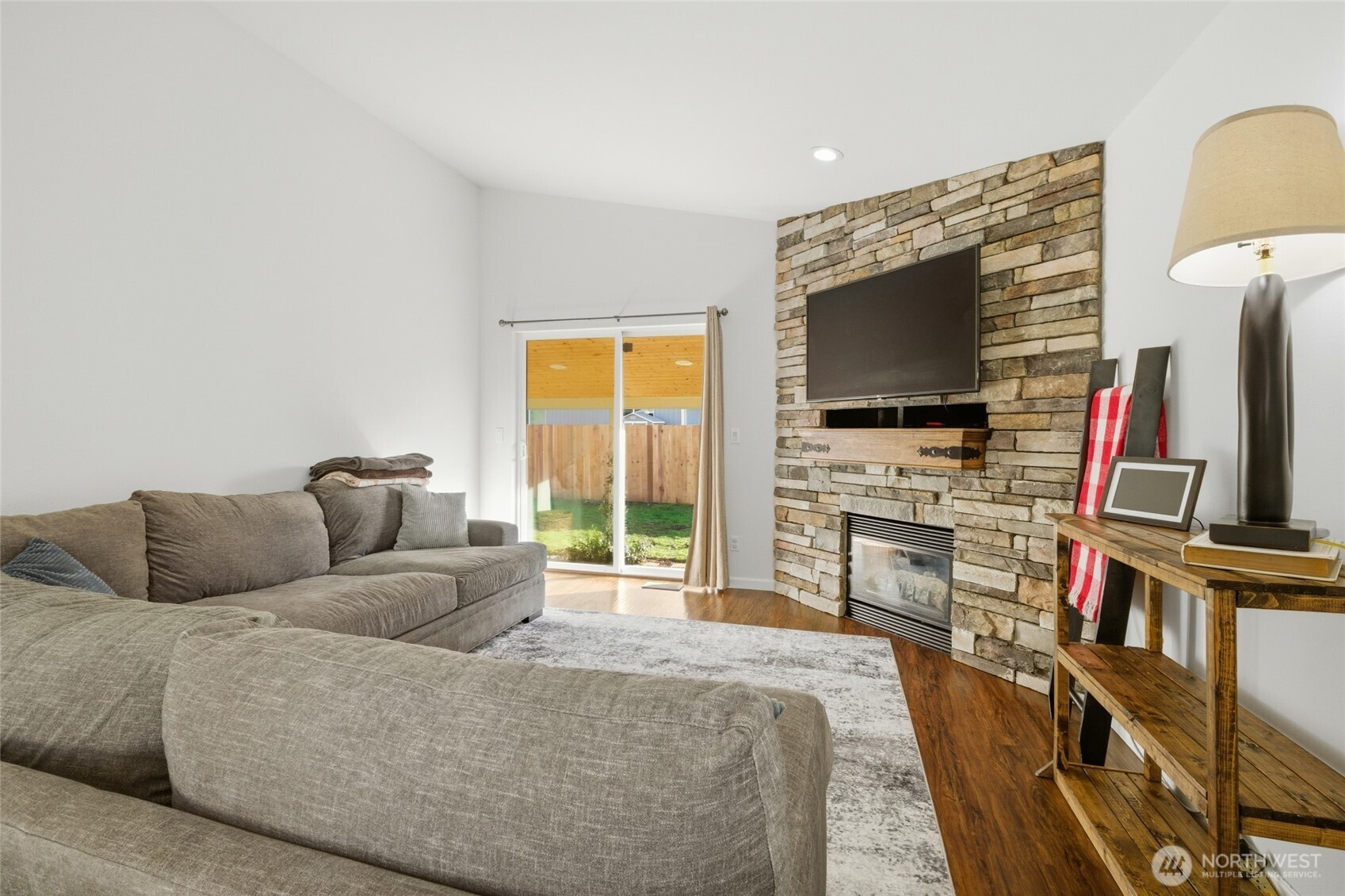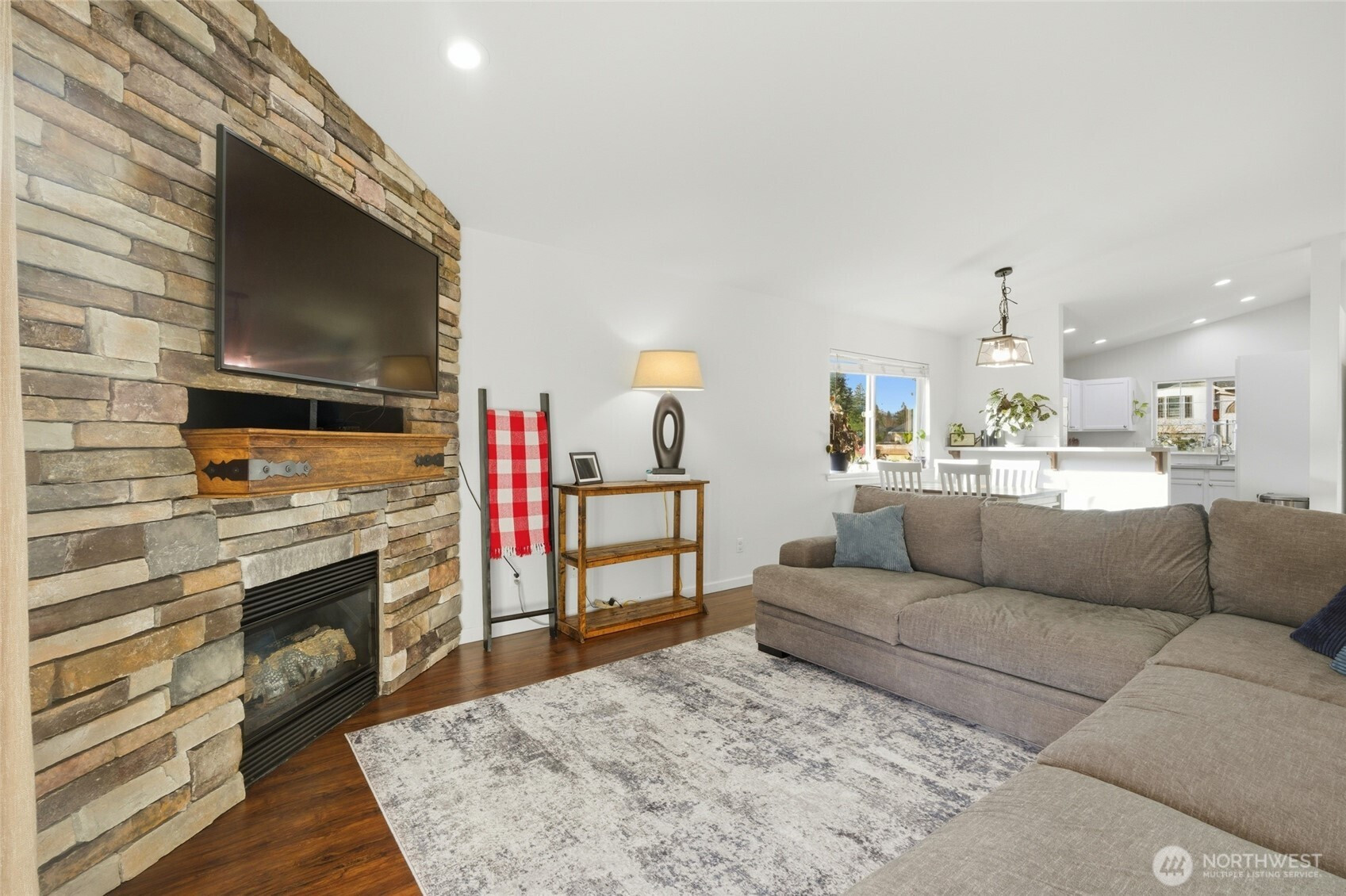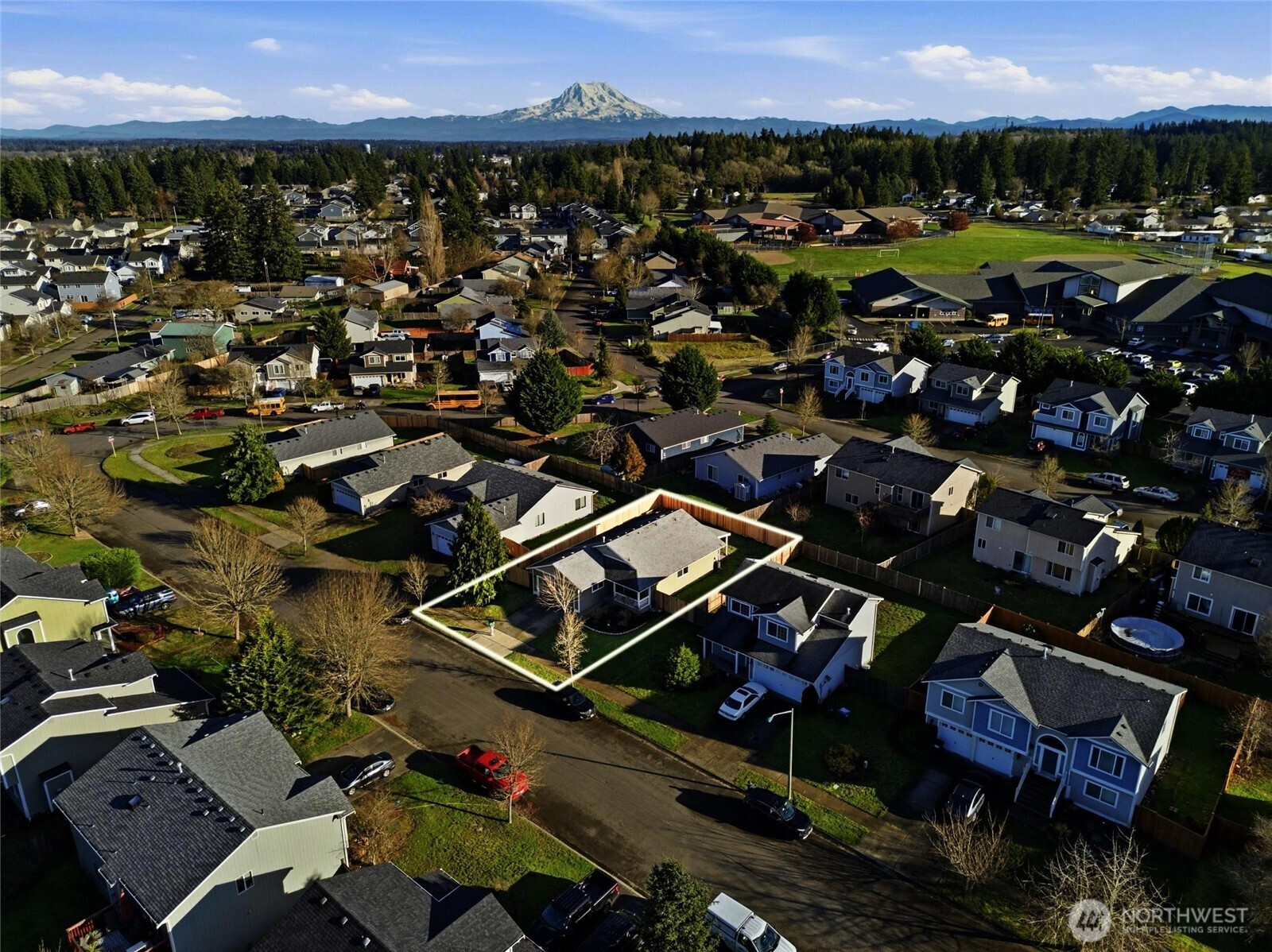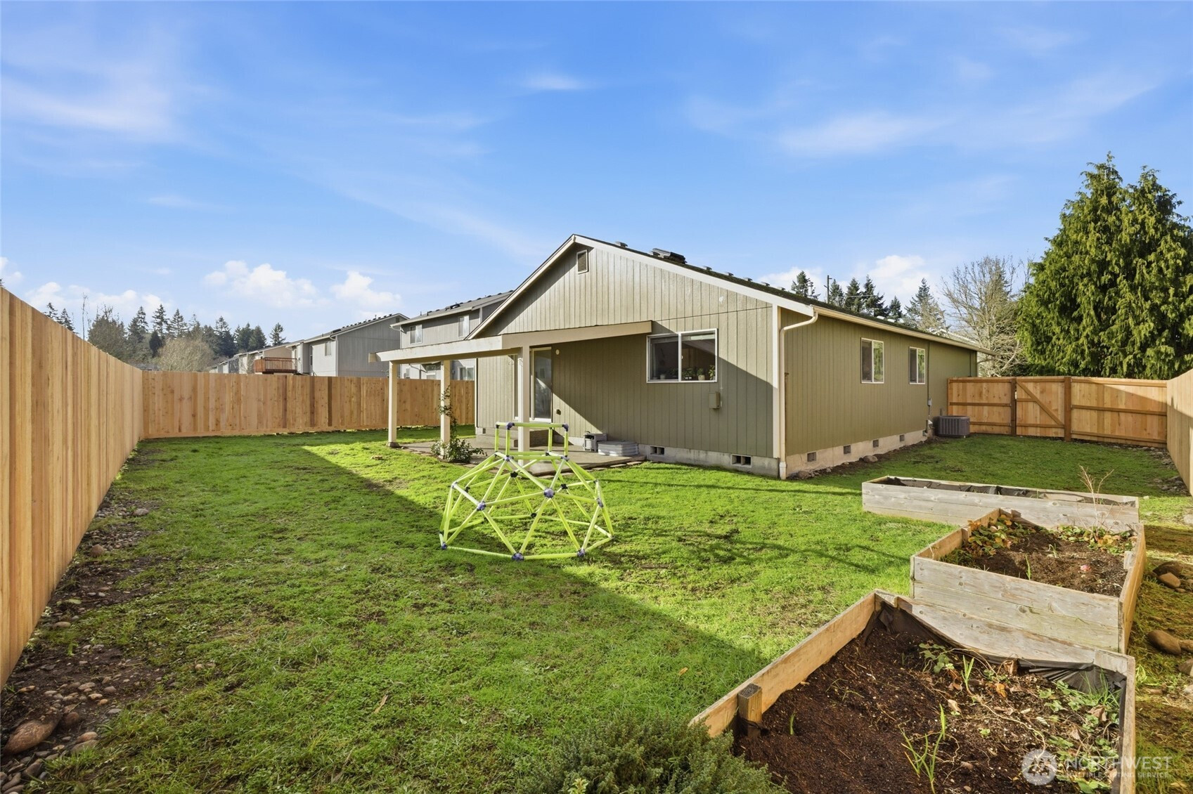 Must see open-floor-plan rambler offering endless possibilities! The interior boasts soaring ceilings, a spacious kitchen with breakfast bar, brand-new dishwasher and stove, and a large living room anchored by a cozy corner gas fireplace. Enjoy year-round comfort with air conditioning and laminate flooring in the dining area. The generous primary suite features a walk-in closet, plus so much more throughout the home. Outside, you’ll find a newly fenced yard, a welcoming covered front porch, and a covered rear patio perfect for relaxing evenings. Complete with a 2-car garage, this home is conveniently located just minutes from shopping, dining, entertainment, and offers easy access to JBLM.