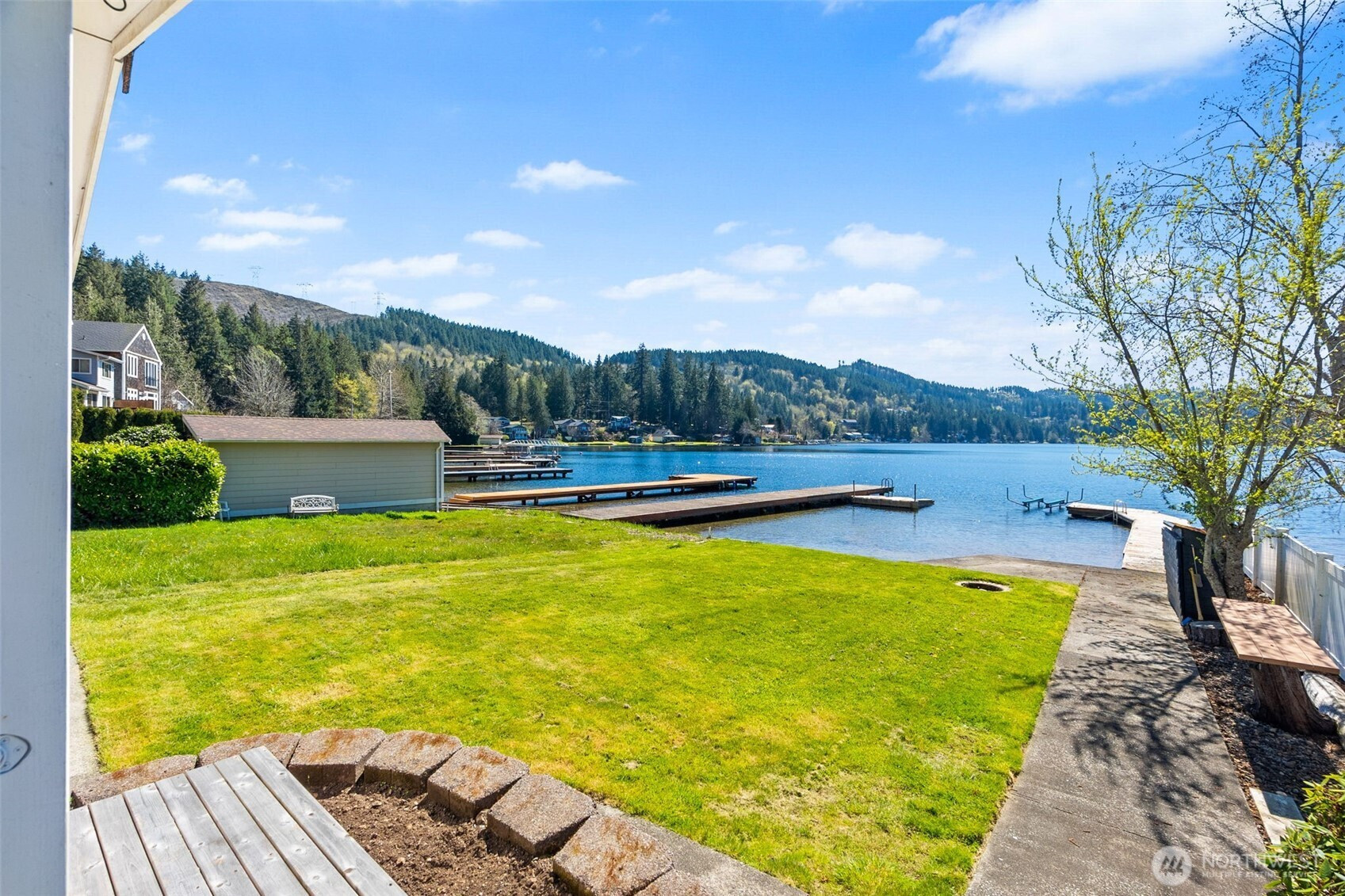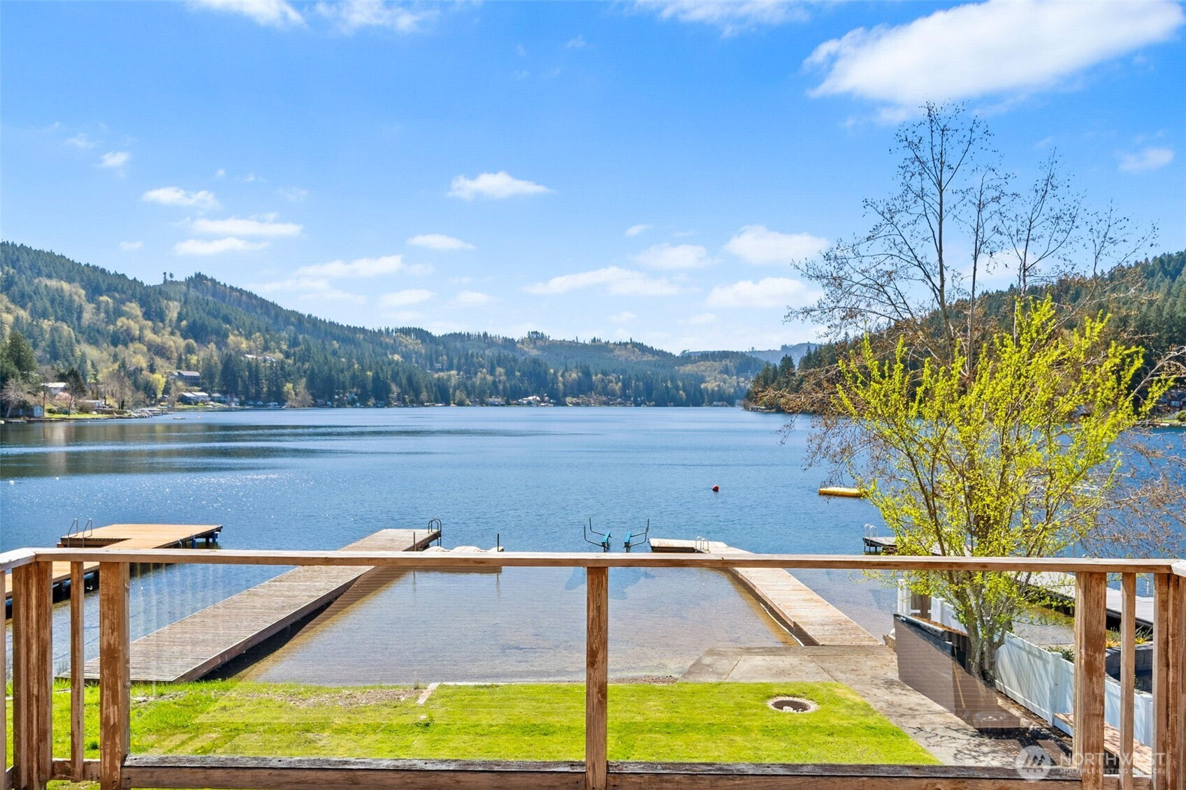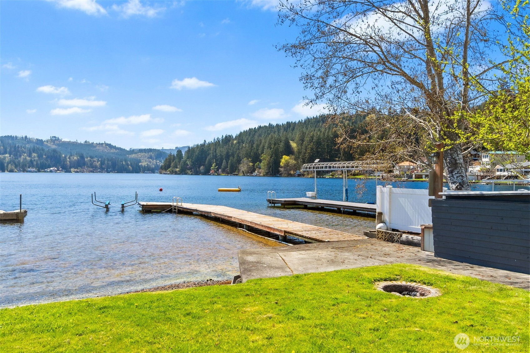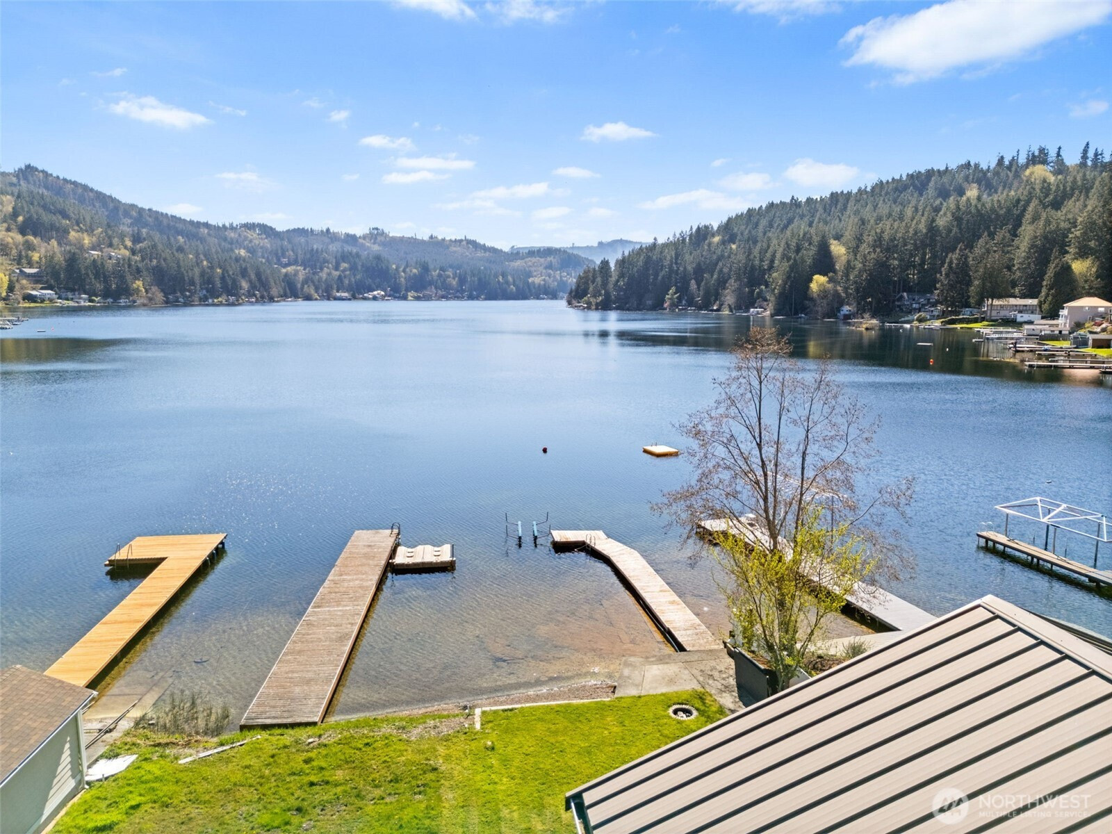 Get your lake place now and be ready for summer at beautiful Summit Lake! This rare low-bank waterfront home captures expansive southwesterly views and sits at the ideal end of the lake for sun, space, and a true getaway feel. Bright and inviting, the main level features an open kitchen and living area flowing seamlessly to a huge deck, perfect for entertaining or soaking in long summer evenings. Thoughtfully updated with a new roof (2022), heating & cooling system, fresh interior paint, and modern fixtures, this home is move-in ready, and may even be sold furnished (with the right offer) for a turnkey experience, or instant Airbnb investment property. The upper-level suite offers a private retreat with its own covered deck and stunning lake views. While the septic (new in 2021) is permitted for one bedroom, the home lives larger with a finished second room down, and flexible upper space that could be divided for additional sleeping areas. Enjoy easy access to the water with minimal steps, a private dock, and usable shoreline, plus outdoor sauna. Ample parking, detached storage garage, and lower-level storage with boat access add functionality. A rare combination of comfort, updates, and premier waterfront living-just in time for the Summer season!