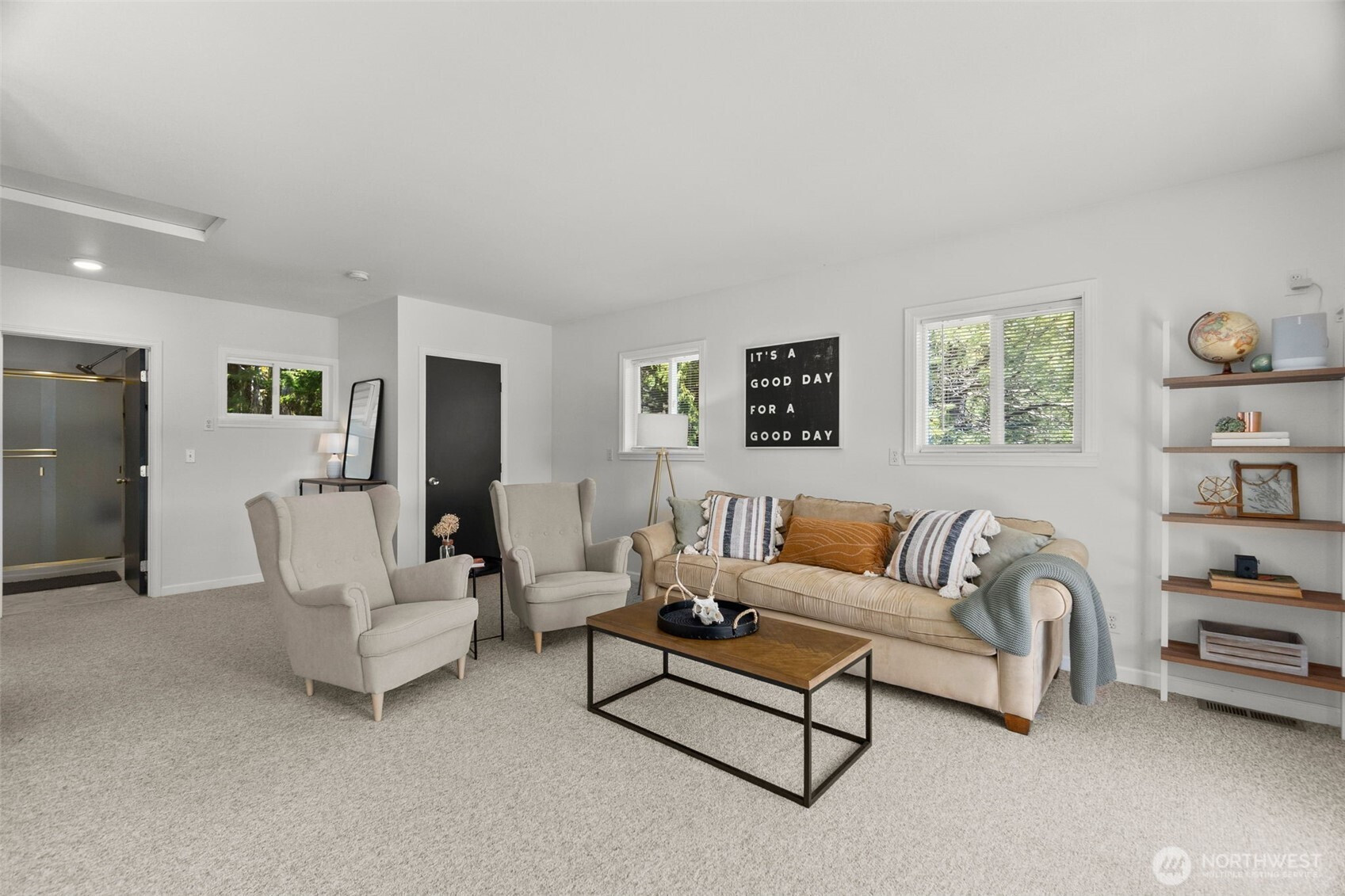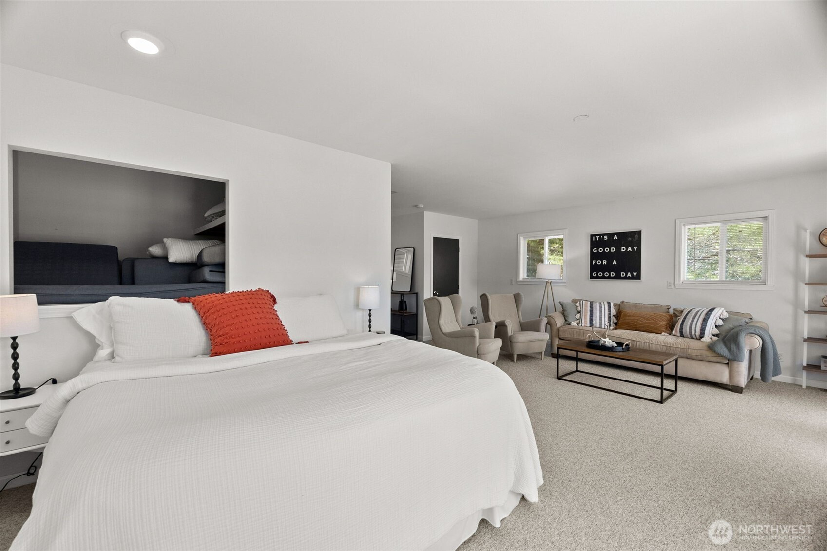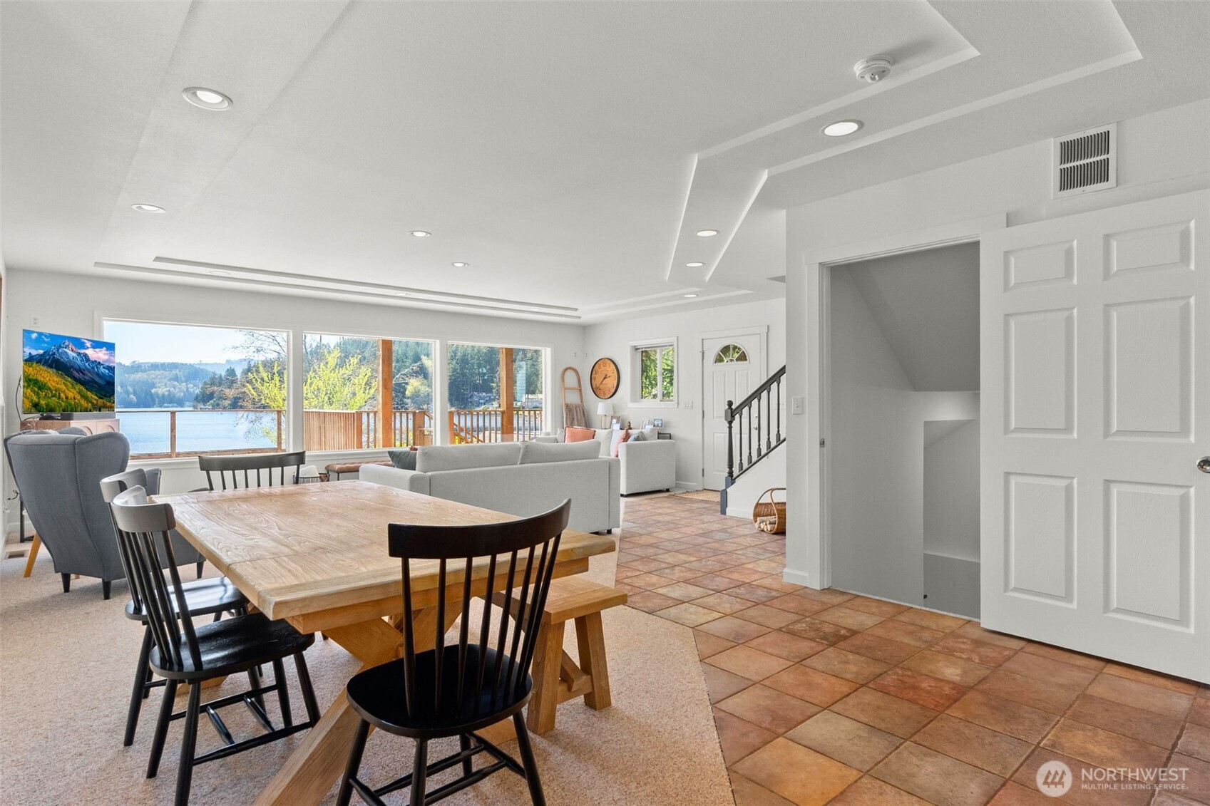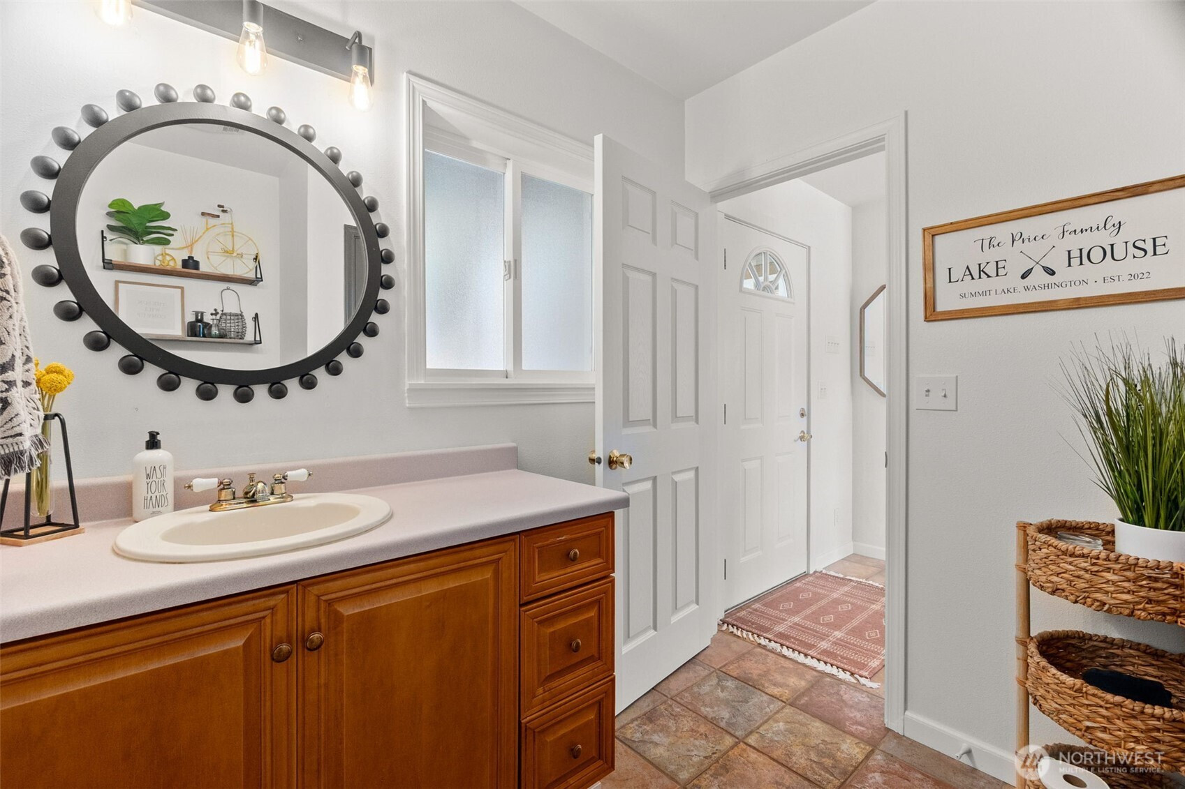 Get your lake place now and be ready for summer at beautiful Summit Lake! This rare low-bank waterfront home captures expansive southwesterly views and sits at the ideal end of the lake for sun, space, and a true getaway feel. Bright and inviting, the main level features an open kitchen and living area flowing seamlessly to a huge deck, perfect for entertaining or soaking in long summer evenings. Thoughtfully updated with a new roof (2022), heating & cooling system, fresh interior paint, and modern fixtures, this home is move-in ready, and may even be sold furnished (with the right offer) for a turnkey experience, or instant Airbnb investment property. The upper-level suite offers a private retreat with its own covered deck and stunning lake views. While the septic (new in 2021) is permitted for one bedroom, the home lives larger with a finished second room down, and flexible upper space that could be divided for additional sleeping areas. Enjoy easy access to the water with minimal steps, a private dock, and usable shoreline, plus outdoor sauna. Ample parking, detached storage garage, and lower-level storage with boat access add functionality. A rare combination of comfort, updates, and premier waterfront living-just in time for the Summer season!